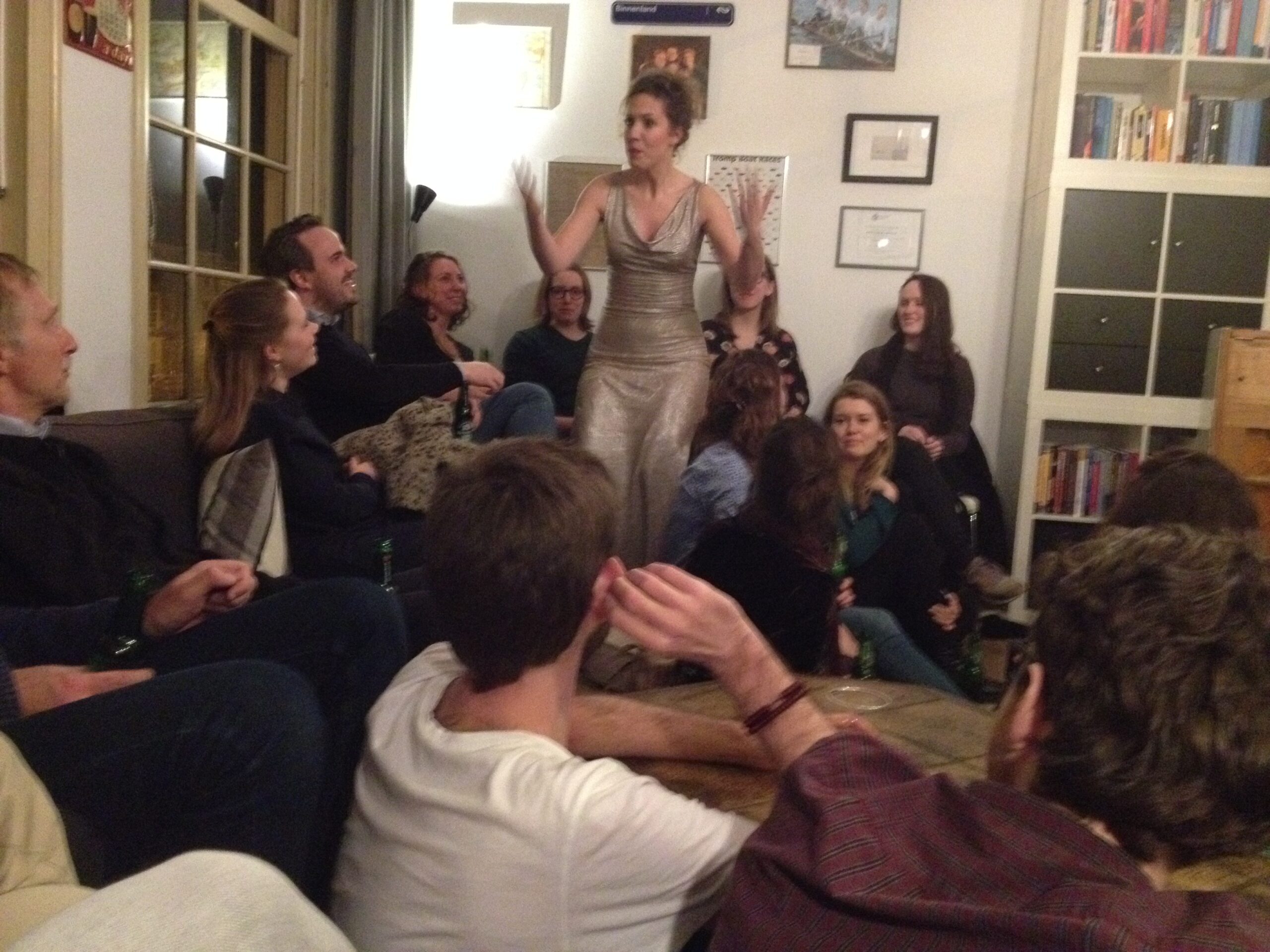 Bij Jaap op de Herengracht kon de bezoeker een hele avond doorbrengen, als-i dat wilde. Dat waren drie voorstellingen – halvefinalisten – te zien van het Amsterdams Kleinkunst Festival. Sanneke van der Meulen – op piano begeleid door Rolf – maakt goede kans met Angstzweet, een beeld van soms existentiële angst. Je bent snel geneigd te denken dat Van der Meulen bang is voor alles. Dat is niet zo. Eerder benoemt zij die twijfel die iedereen wel herkend: wast te doen met de vriend die ver weg woont, die andere voorkeuren heeft dan jij? Wat te doen met een kinderwens, denkend aan je eigen ervaringen als kind? Wat te doen met groepsdruk “Ik ben een nerd-artiest, die net heeft geleerd bier te drinken. Eentje”? Zingen kán ze. Een stukje Whitney Houston, maar dan wel dé uithaal, Janis Joplin, en dan wel het grofgruizige, en ook zichzelf “het suist oomdat de wind weer is gedraaid, en ik verzuip in al mijn angst”.