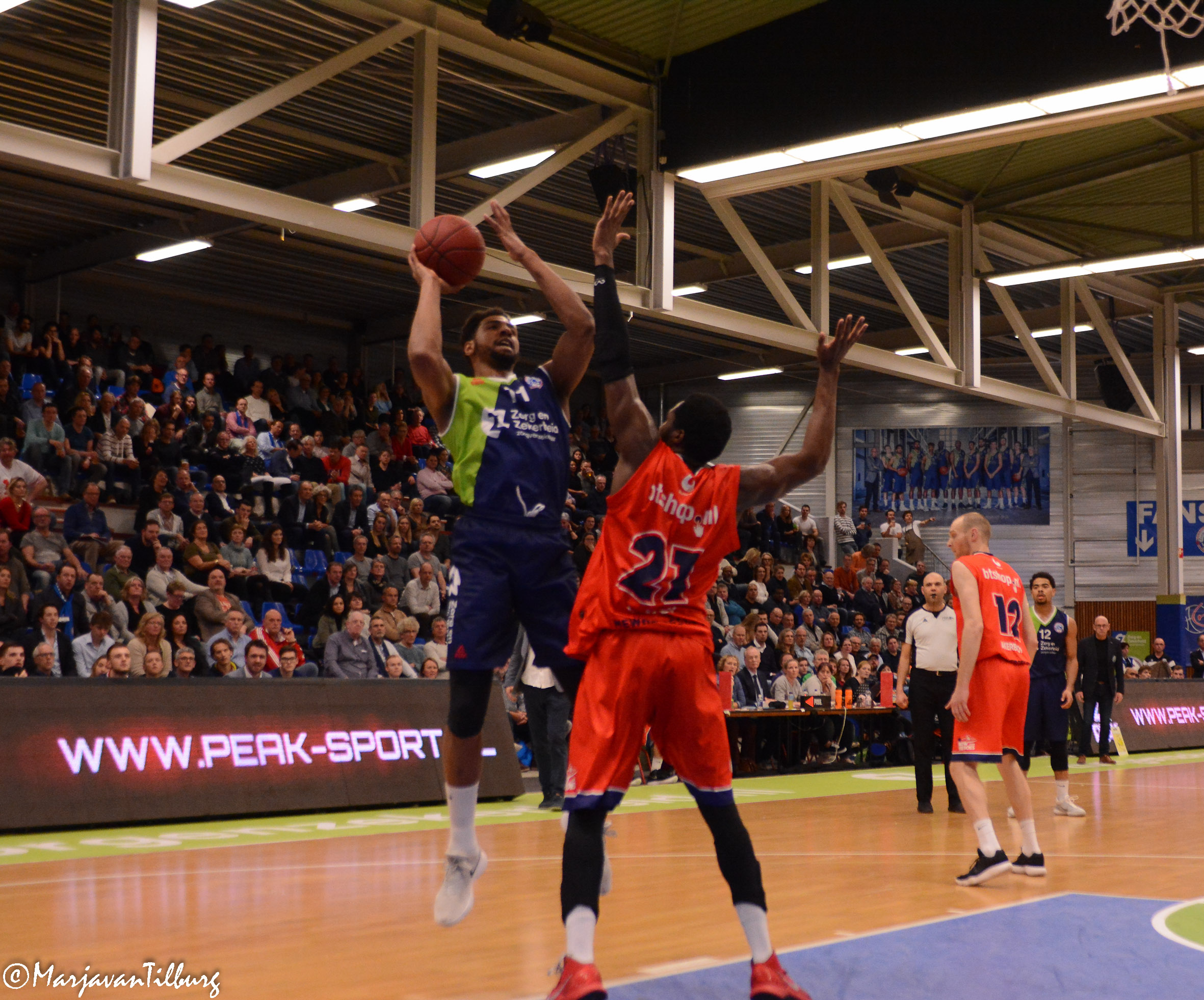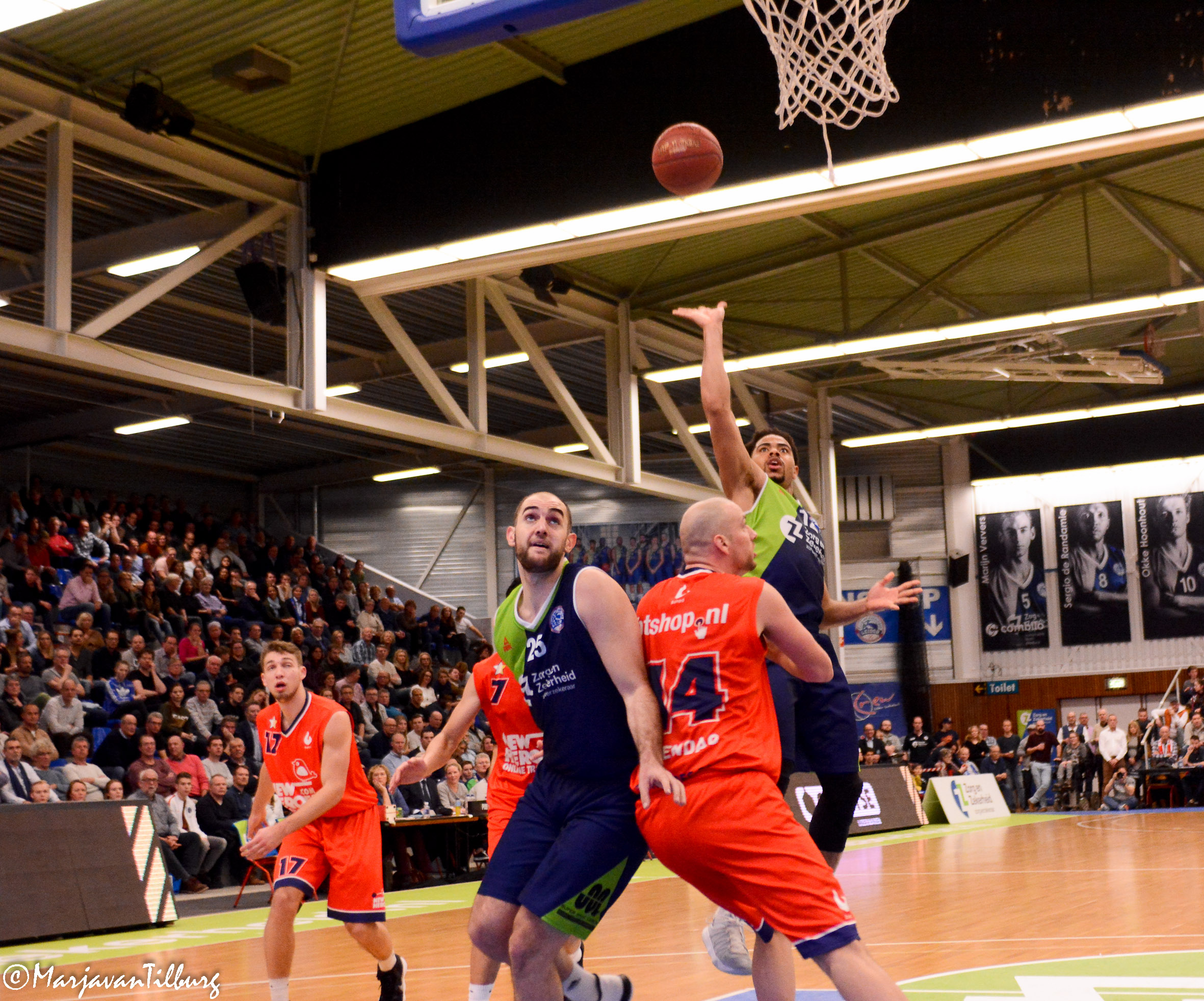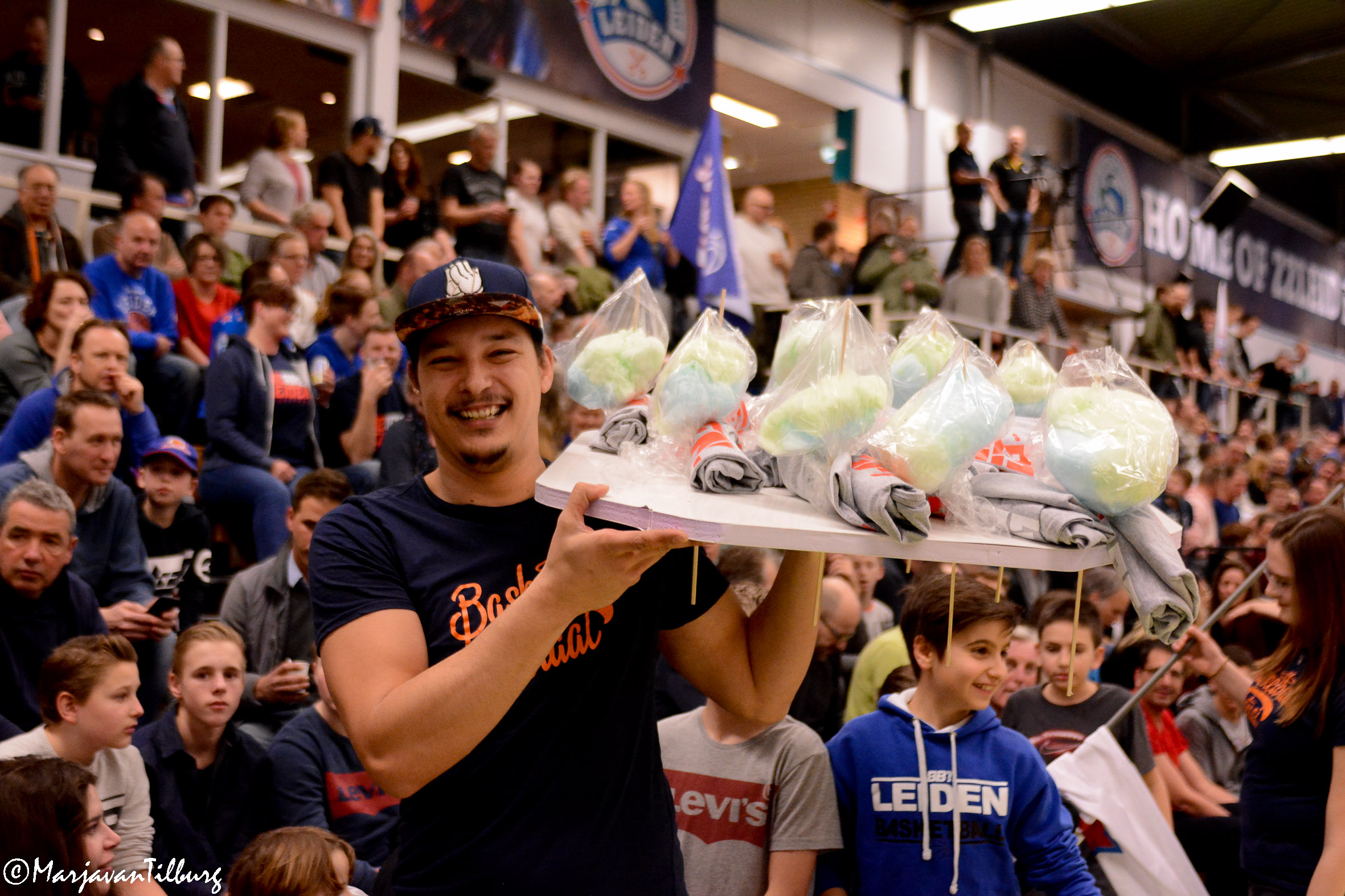Wedstrijden tussen Zorg en Zekerheid Leiden en New Heroes Den Bosch behoren tot de snoepjes van het basketbalseizoen. Ook deze editie trok weer vele belangstellenden naar de Vijf Meihal. Zodanig dat het platform ook door menig supporter werd gevuld. Het was al snel aangenaam warm in de hal en de muziek van het hoempaorkest zorgde voor de nodige sfeer. Een Bossche supporter sprak glimlachend over een takkeherrie. Als er raadsleden van de gemeente Leiden aanwezig waren geweest, dan zouden ze misschien anders denken over de nieuwe sporthal en het aantal zitplaatsen.
