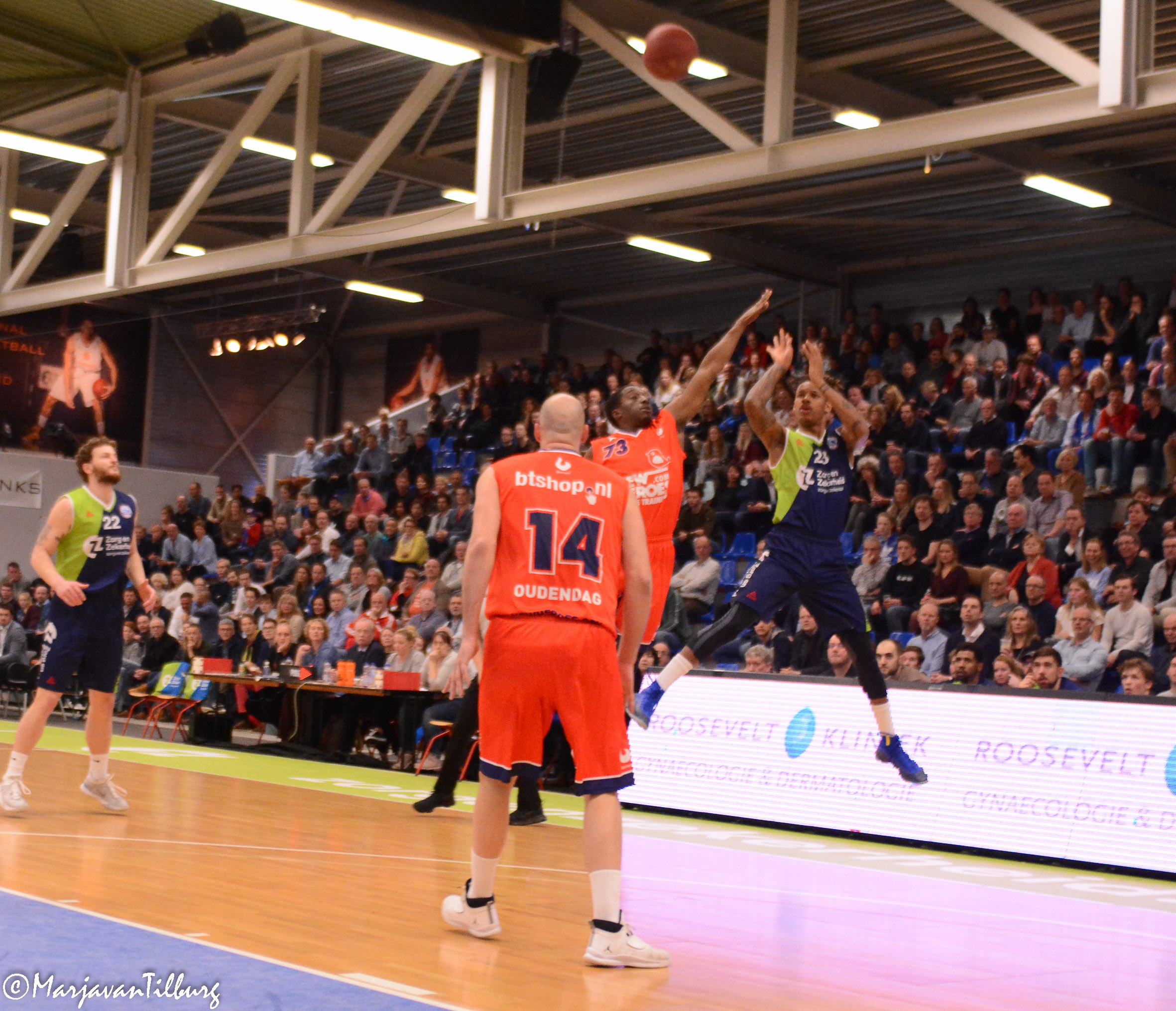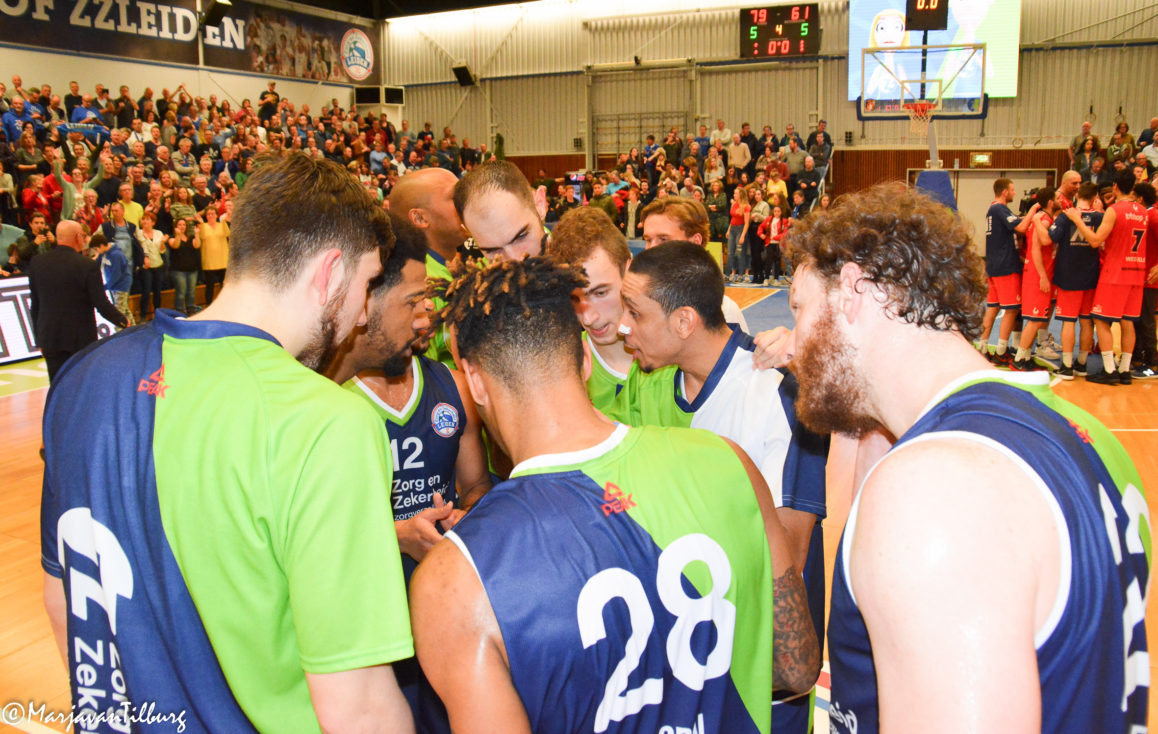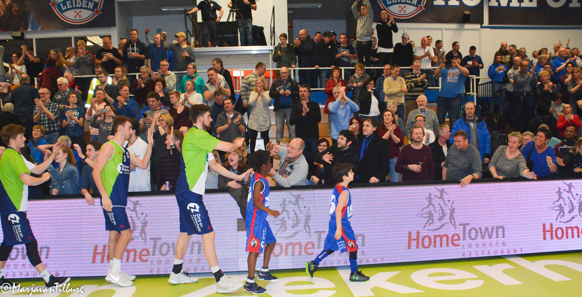 In de eerste vijf minuten van het vierde kwart schommelde de marge steeds rond de negen punten. Dat veranderde echter al snel. Zowel Voorn als De Jong waren goed voor een and-1 en opeens was het 72-57 met nog vier minuten te gaan. Het Leidse publiek genoot ervan en de liederen galmden vanaf de tribune. Love zorgde met een driepunter uiteindelijk voor de Leidse zege: 79-61. Het publiek hield 40 seconden voor tijd nog wel even de adem in toen De Jong tegen de vlakte ging en bleef liggen. Na afloop liep De Jong zonder problemen de Leidse fans tegemoet, want die wilden na hun liederen voor Olah ook nog wel voor de andere spelers uit hun dak gaan.