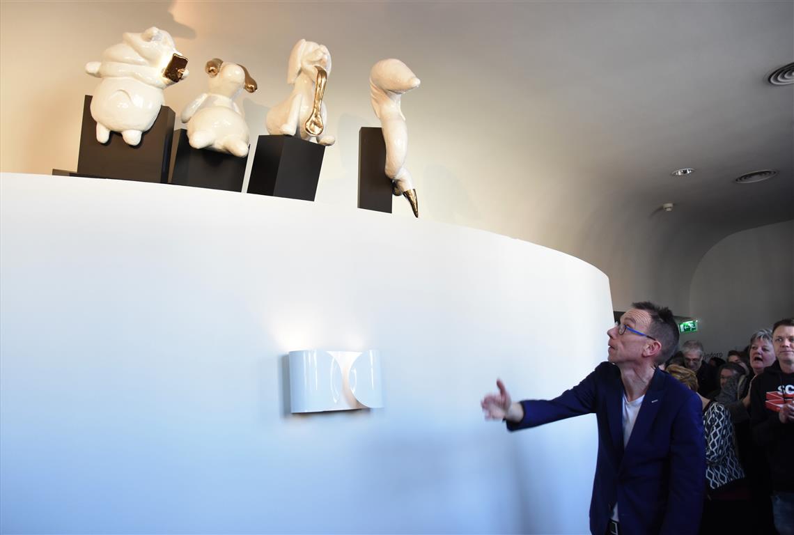 Na afloop van de radio-uitzending ‘Spijkers met koppen’ onthulde Dolf Janssen in de hal op de eerste etage het beeld Come as You Are . Het beeld is een cadeau van het jarige Leids Cabaret Festival aan de Leidse Schouwburg en beeldt het publiek in de zaal uit. Het beeld is gemaakt door Mariët Mocking en Rixt Kemker van Atelier KËX uit Utrecht.