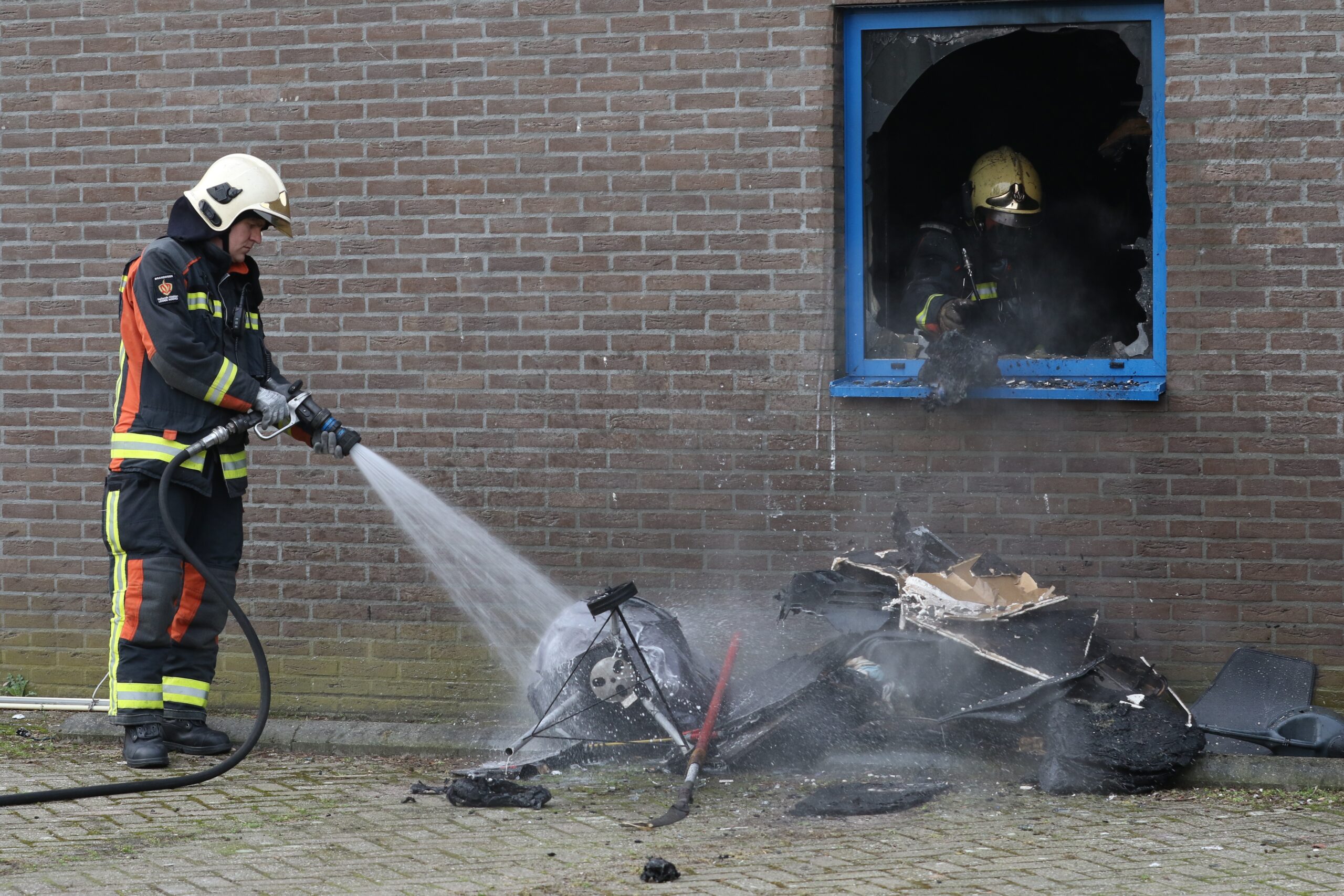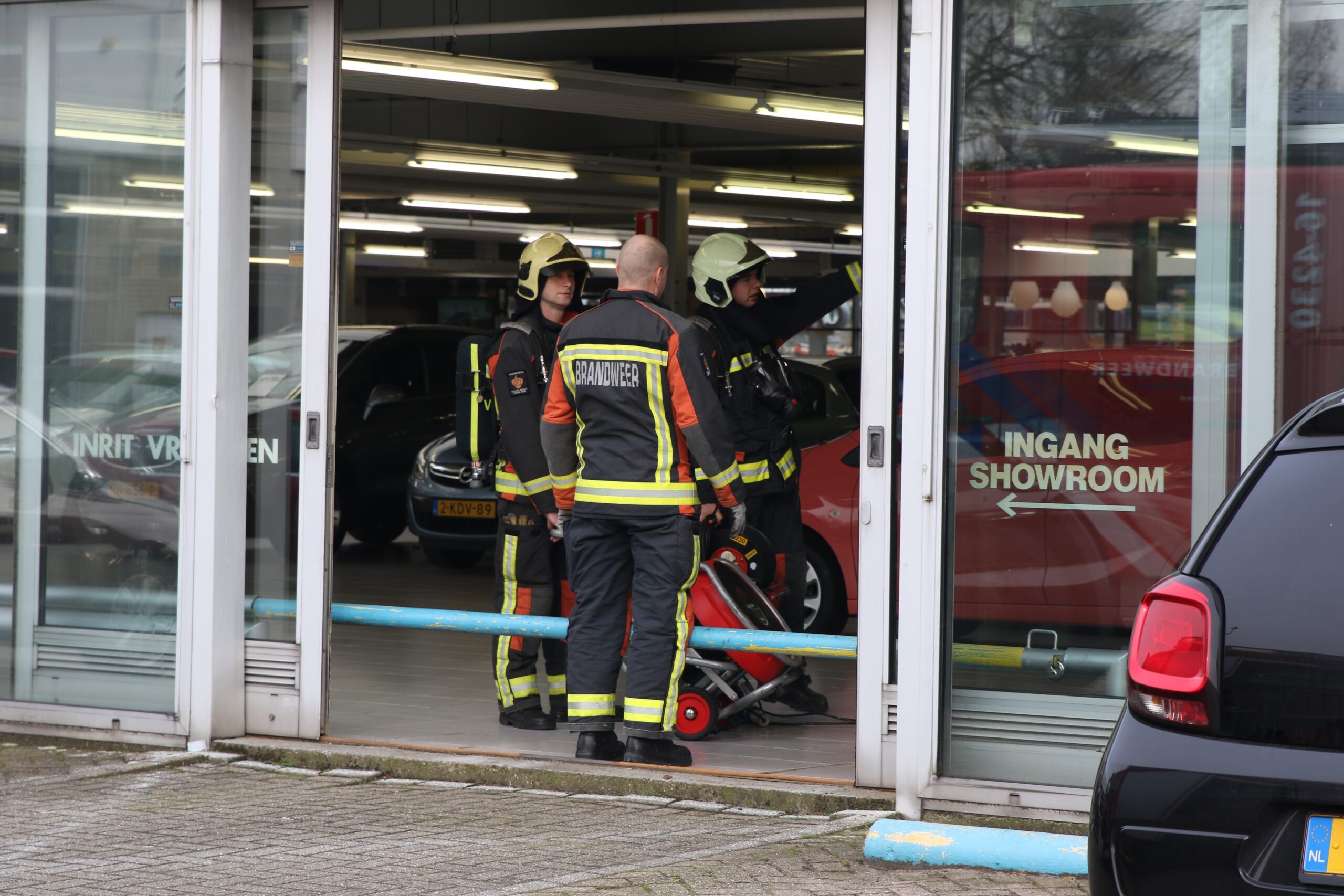 Na zo’n 45 minuten mocht het personeel weer naar binnen en kon ook de showroom weer open. De rooklucht zal nog wel enige tijd blijven hangen.