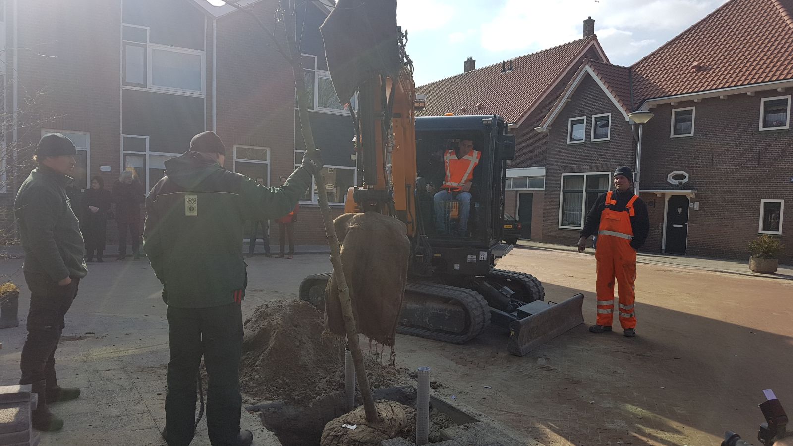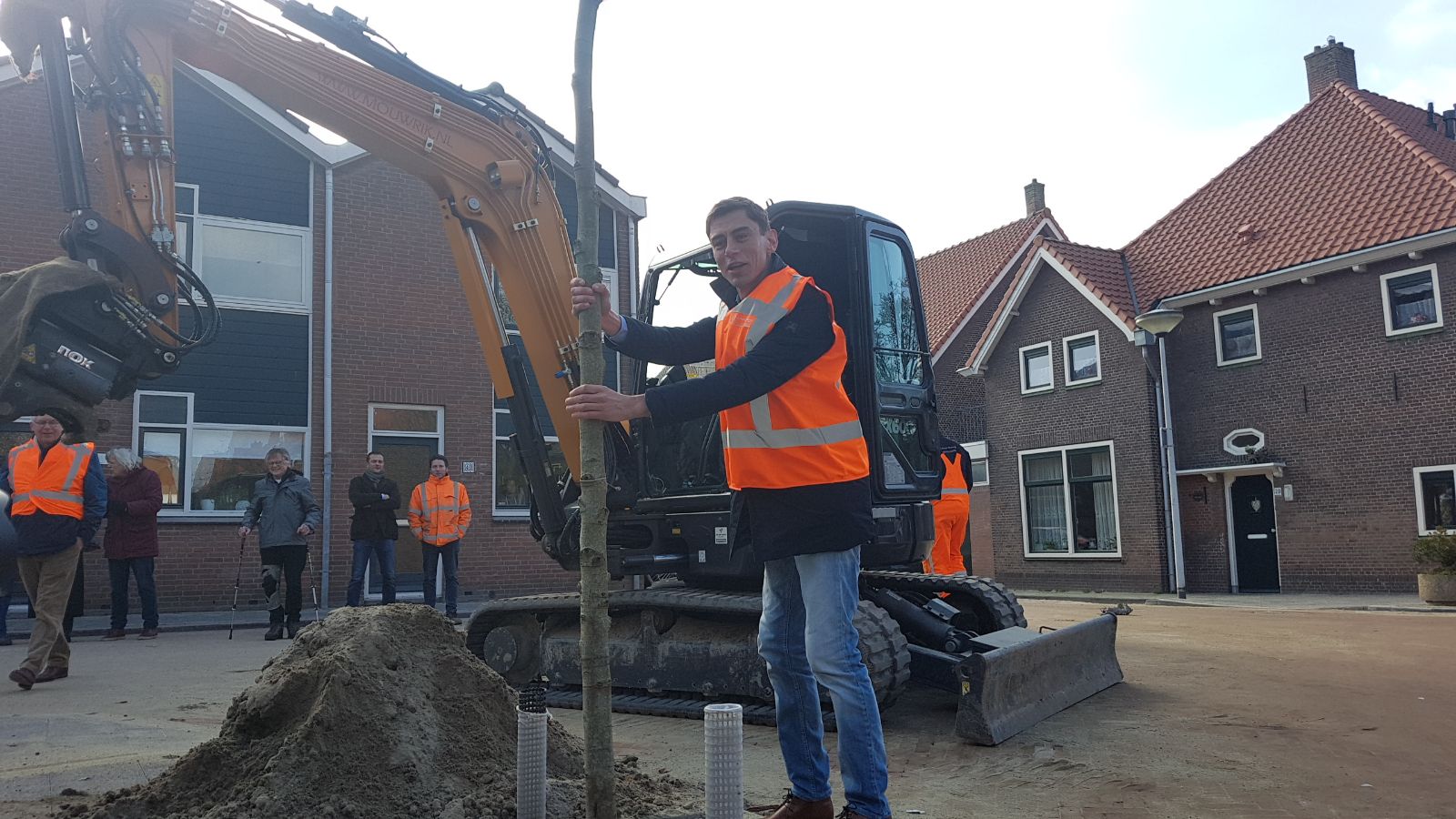 Rolf van Beek van de Bomenbond is blij met het plaatsen van de laatste boom in de Kooi.