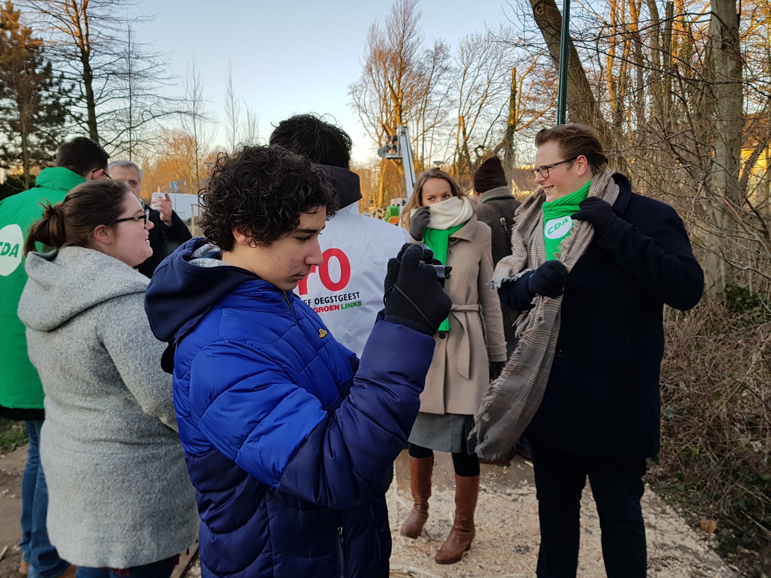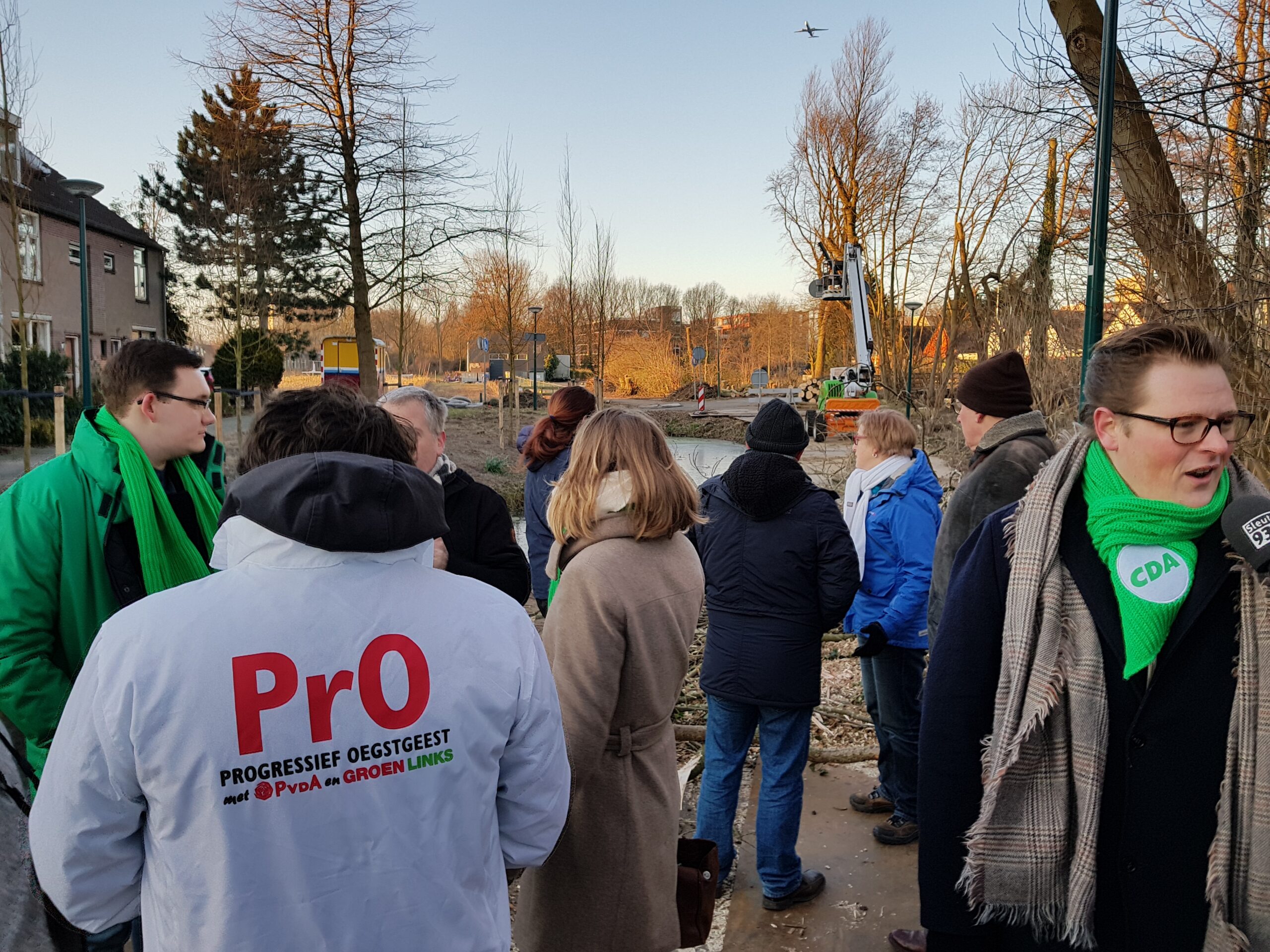 IJsbrand Terpstra sprak bij de actie met Ria Pasterkamp van Progressief Oegstgeest, omwonende Peter Drukker, Eibertjan van Blitterswijk van het CDA Oegstgeest, Elfred Bus van D66 Oegstgeest en Eelke van den Ouweelen van Lokaal Oegstgeest. De fracties van de VVD Oegstgeest en Hart voor Oegstgeest waren niet aanwezig.