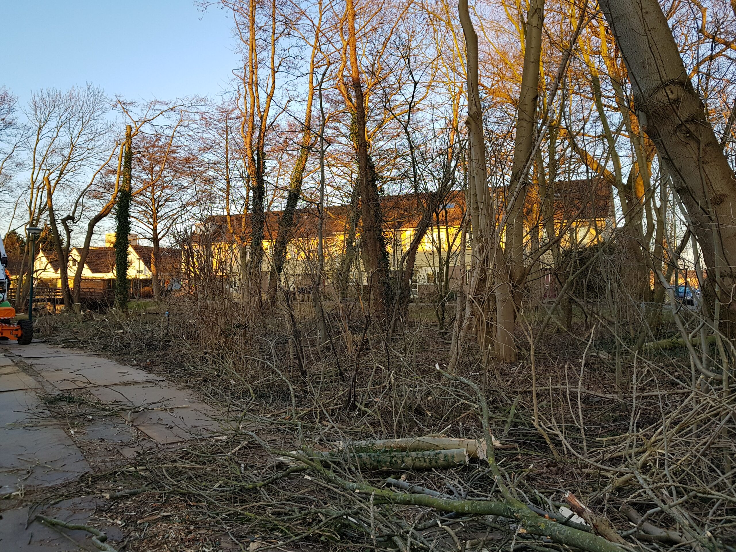 Een groep raadsleden, omwonenden en andere actieve Oegstgeestenaren heeft maandagochtend vroeg vanaf 07:30 uur geprotesteerd tegen de verdere kap van bomen in Haaswijk. Ongeveer vijftien mensen verzamelden zich op de Kleyn Proffijtlaan om te voorkomen dat er verder zou worden gegaan met de kap. En dat is gelukt: maandagochtend zijn de werkzaamheden niet hervat.