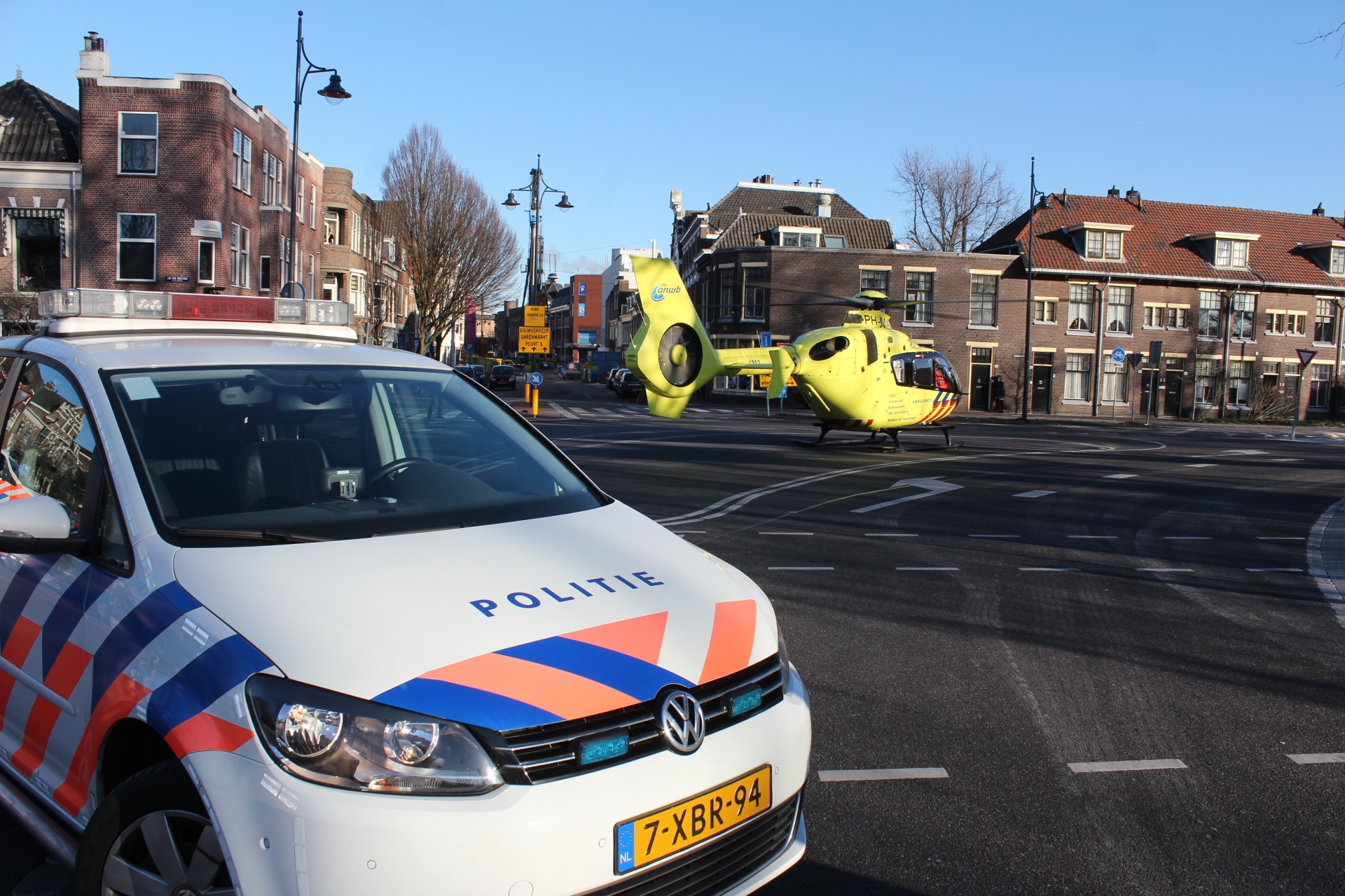 Zondagmorgen rond 9.00 uur werden de hulpdiensten gewaarschuwd vanwege een medische noodsituatie in een woning aan de Jan van Houtkade in Leiden. Daarbij werd ook een traumahelikopter ingezet. Het baarde nogal wat opzien toen de helikopter tussen de huizen afdaalde en op het kruispunt bij de Jan van Houtbrug landde.