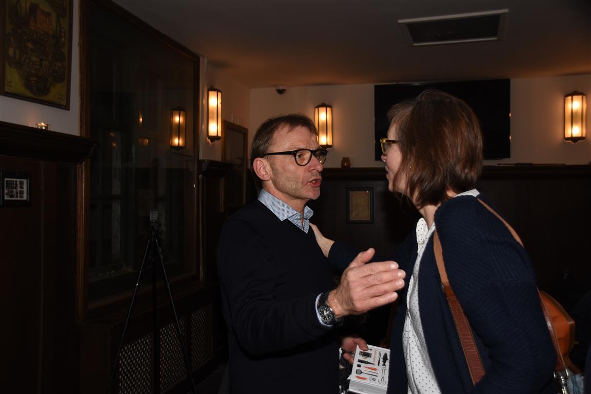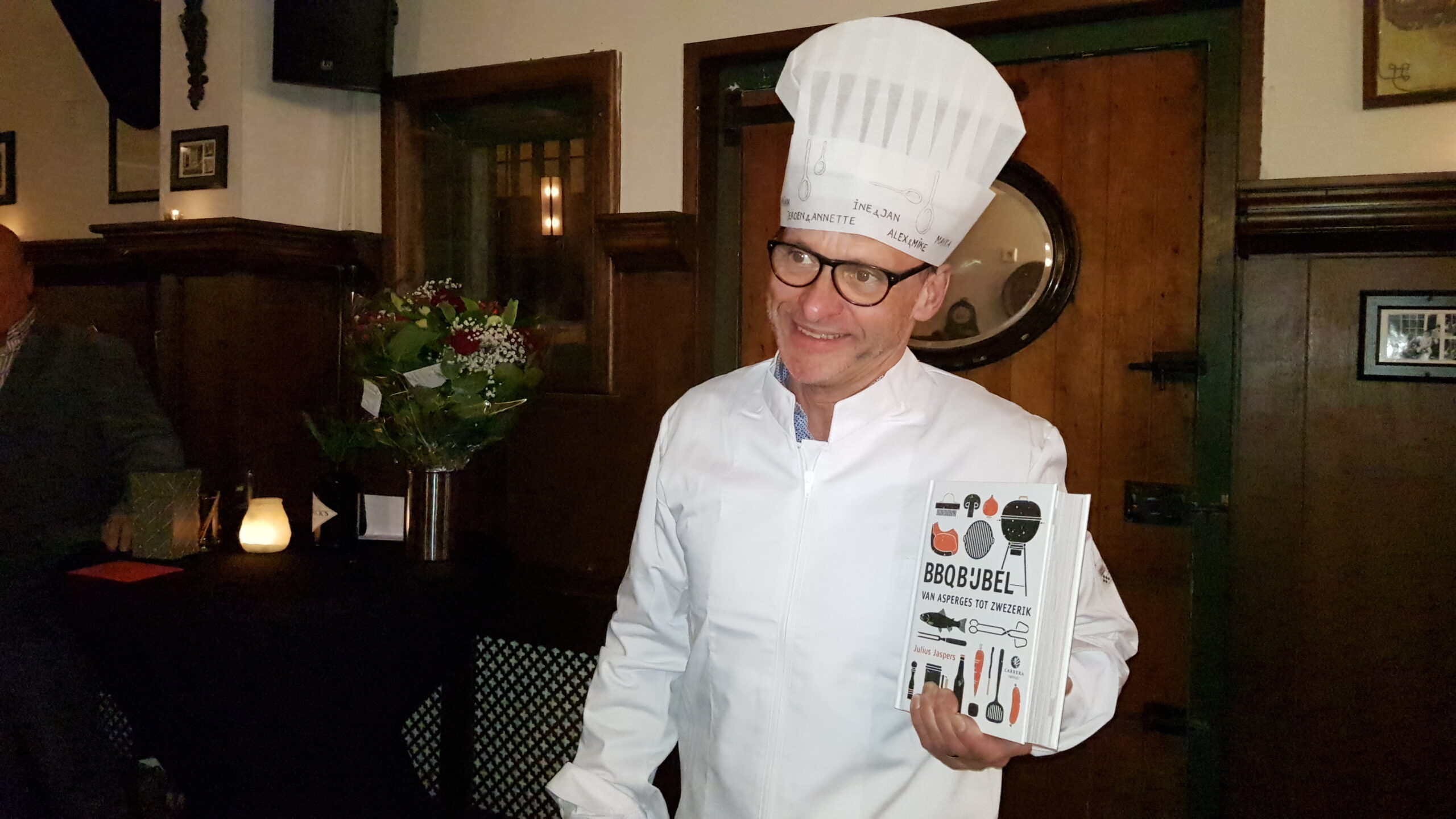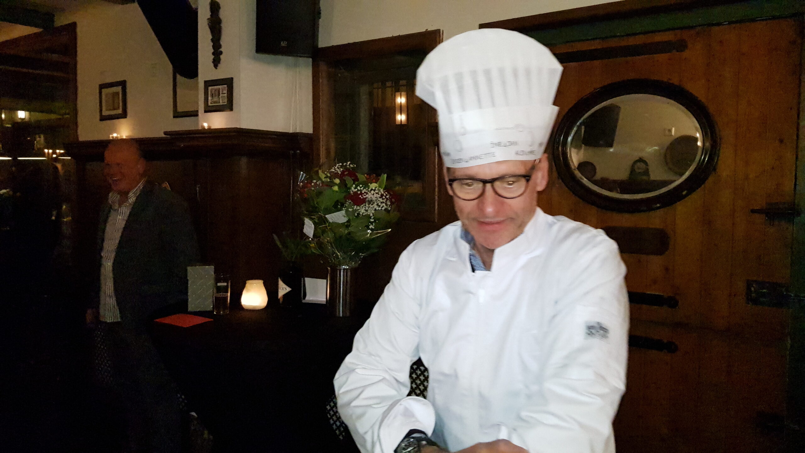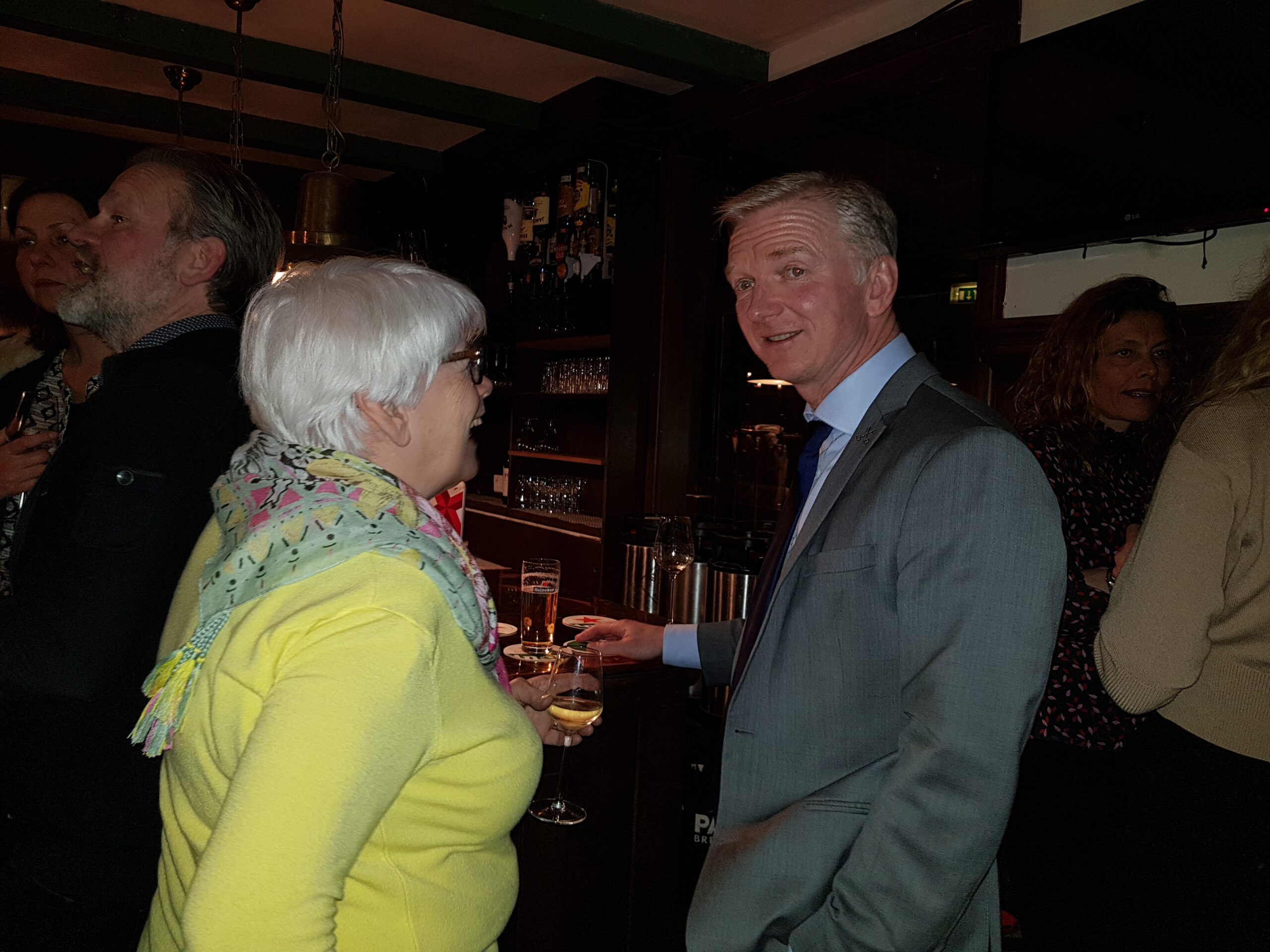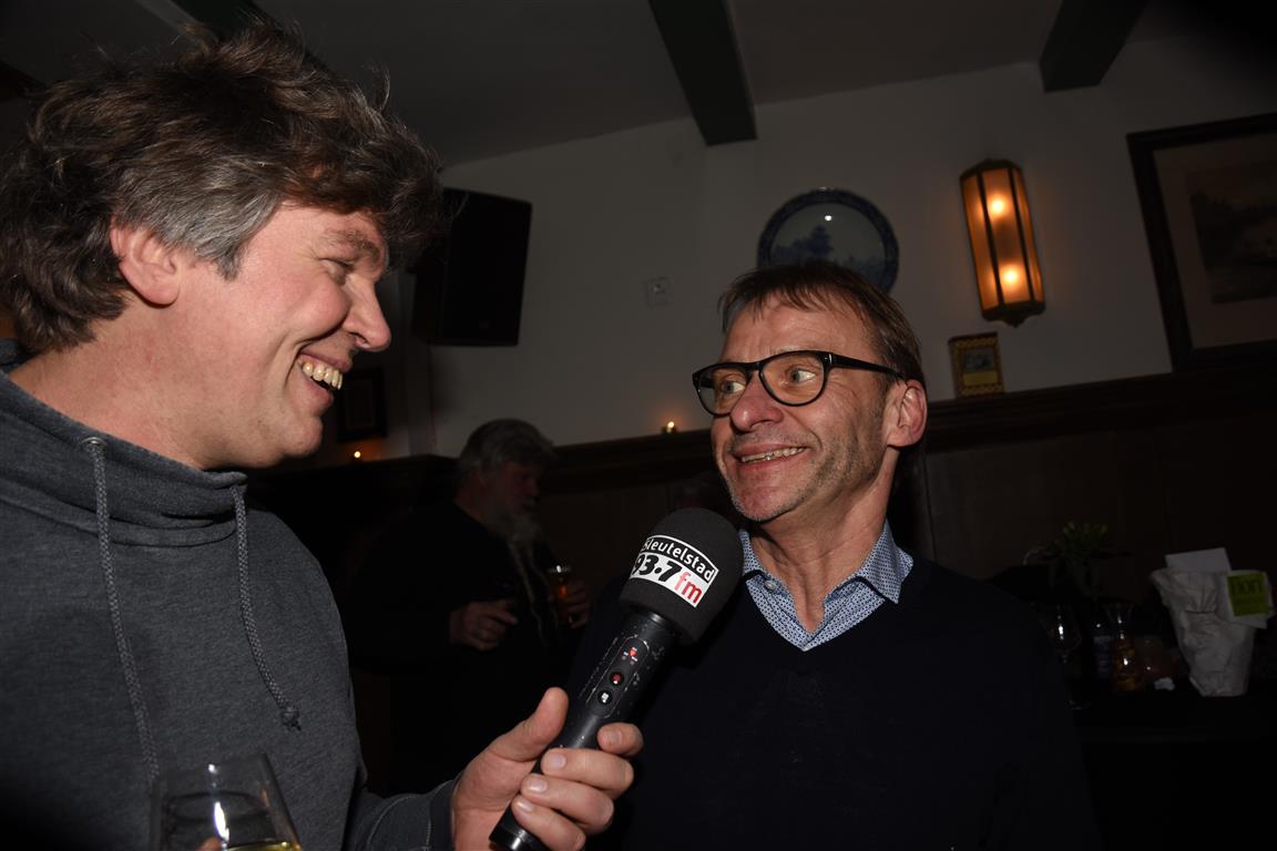 Tijdens een door collega-winkeliers georganiseerd afscheidsfeestje in Café de Vergulde Kruik in de Haarlemmerstraat heeft Jack Dambrink zaterdagavond het Cornelis Joppenszoon beeldje van de gemeente Leiden ontvangen uit handen van locoburgemeester en wethouder Bereikbaarheid, Economie, Binnenstad en Cultuur Robert Strijk.