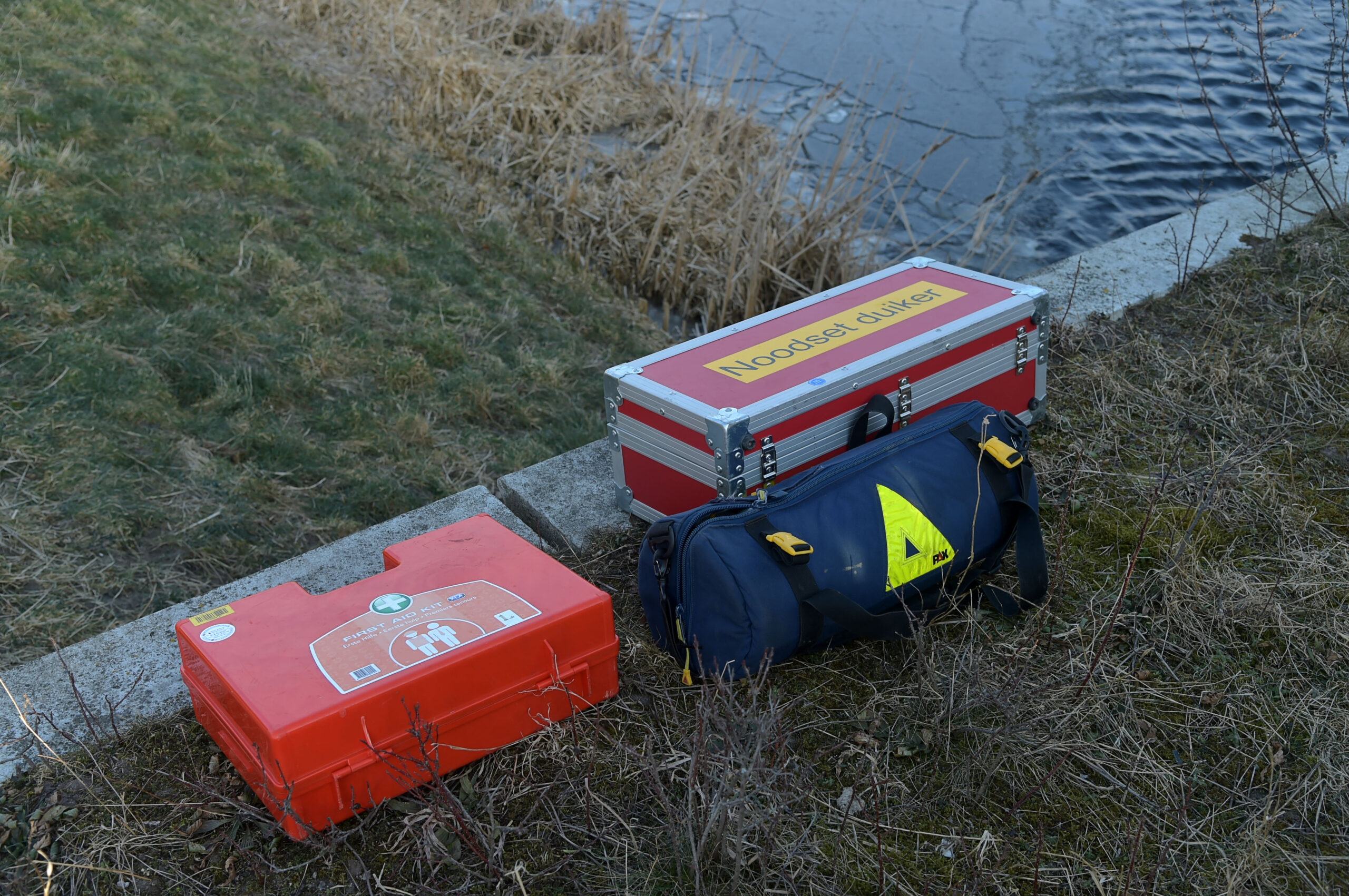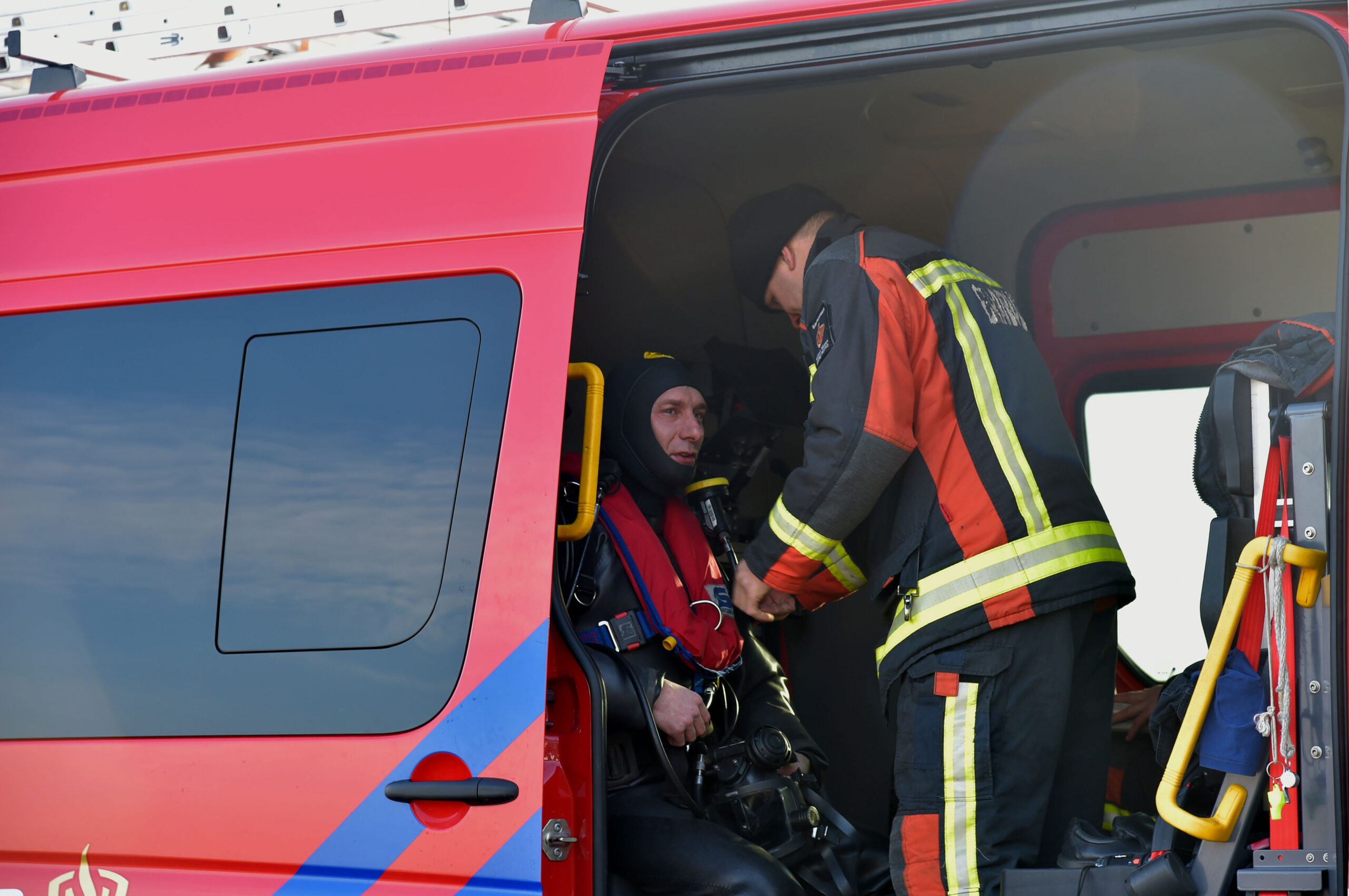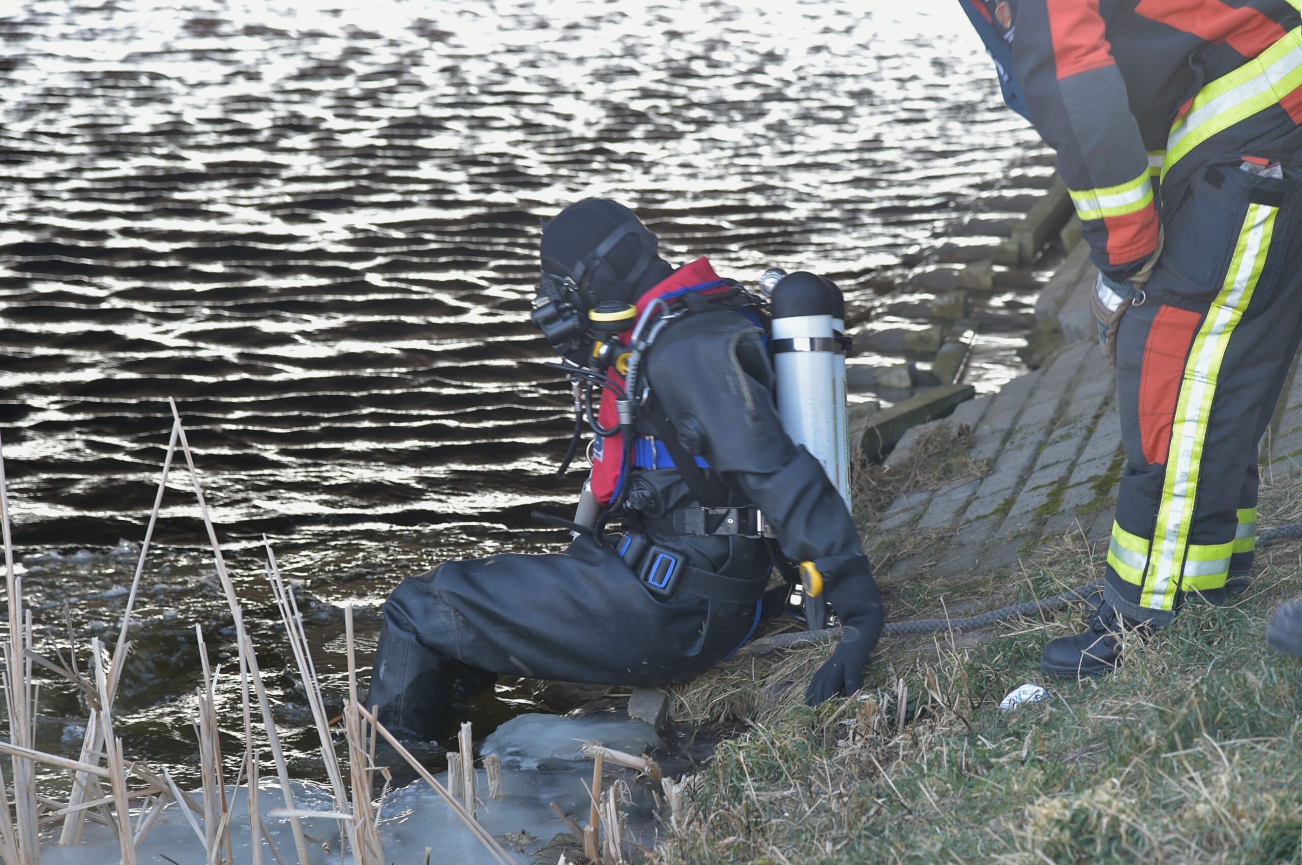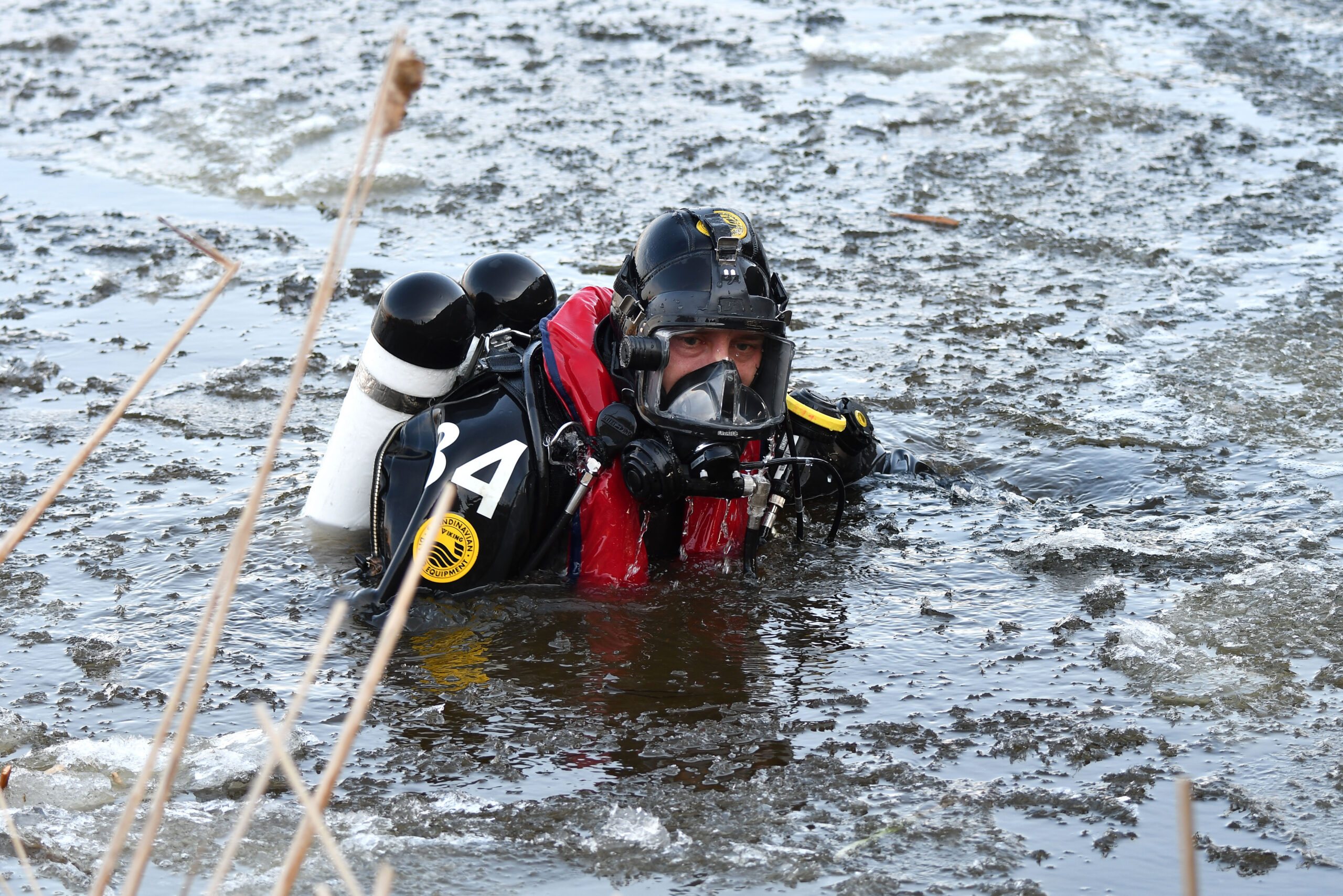 Duikers van de brandweer van post Noord aan de Gooimeerlaan in Leiden hebben vanmorgen een oefening gehouden aan de Buitenhoflaan in Leiderdorp. Rond 9.45 uur gingen ze het ijskoude water in.