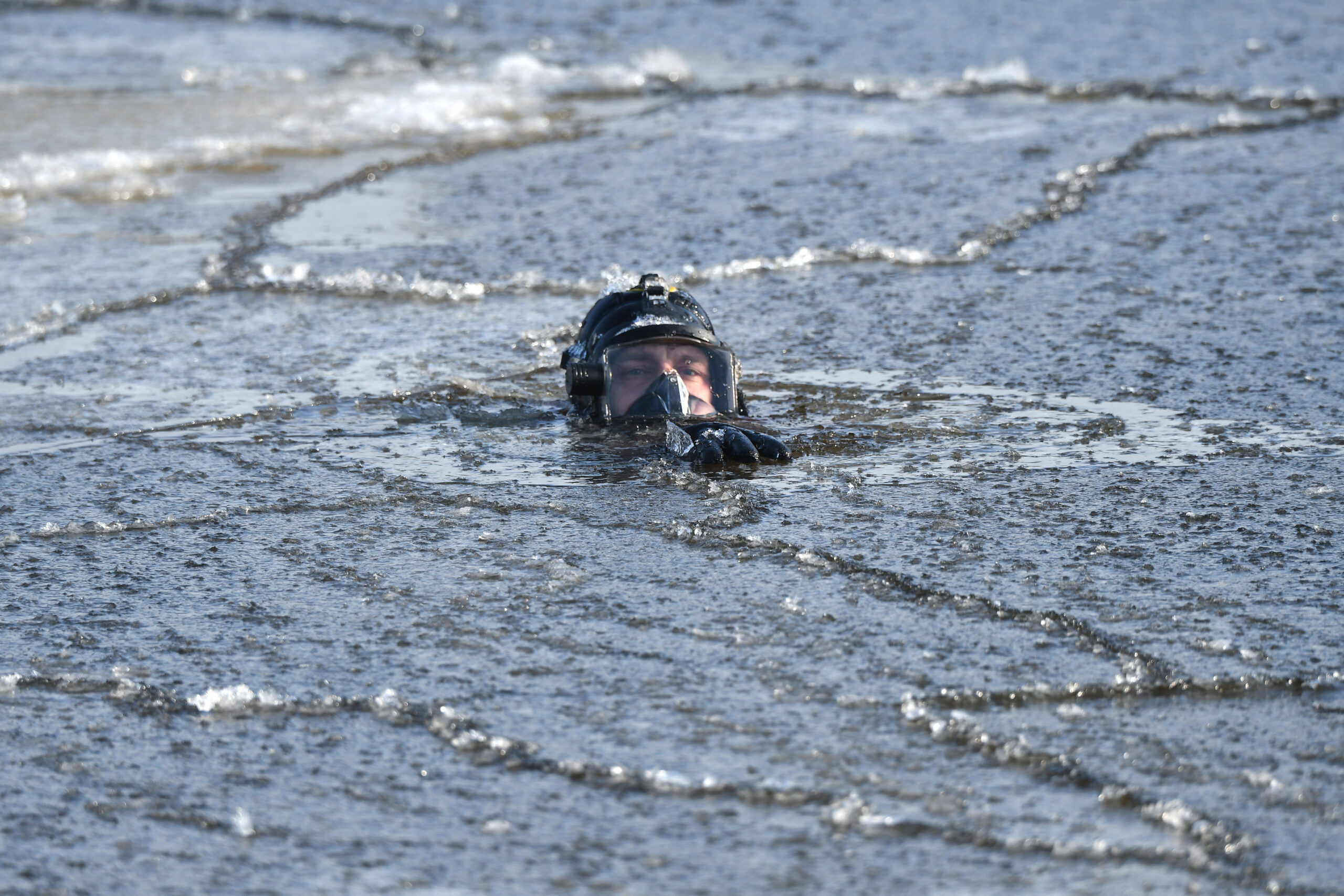 De duikers simuleerden dat ze door het ijs waren gezakt en moesten met behulp van onder andere een ijspik onder water een wak hakken en daar vervolgens uitklimmen. Bij de oefening gingen de duikers voor de veiligheid steeds met z’n tweeën het ijs op. Ook lagen er voor alle zekerheid de nodige reddingsmaterialen en andere levensreddende zaken klaar.