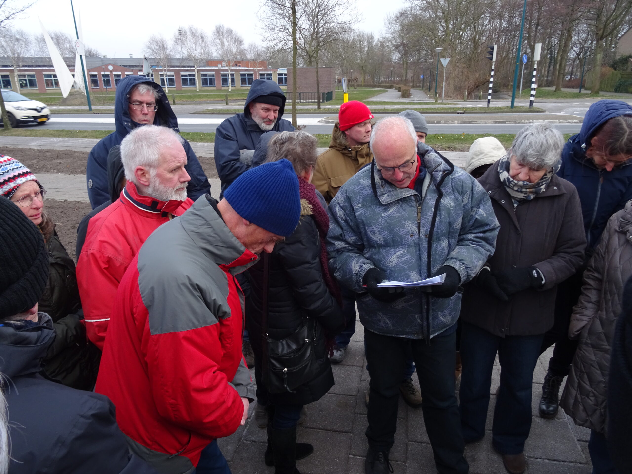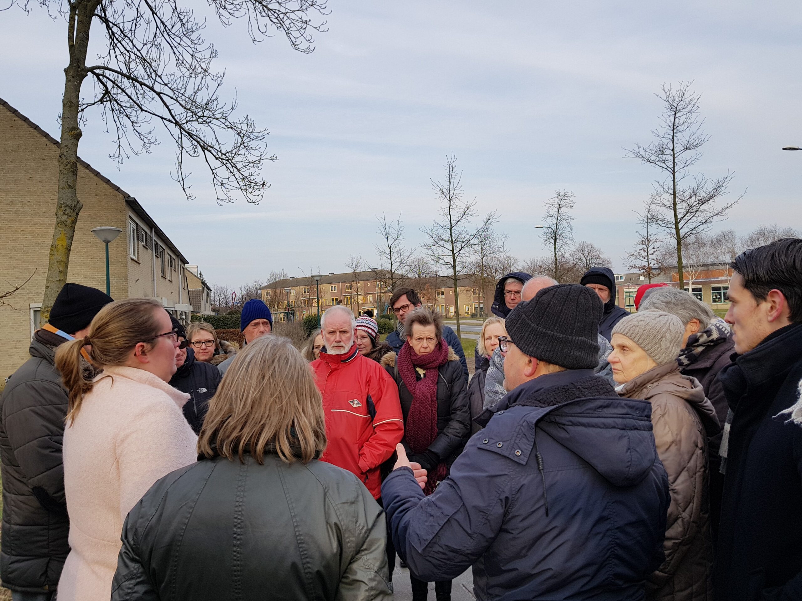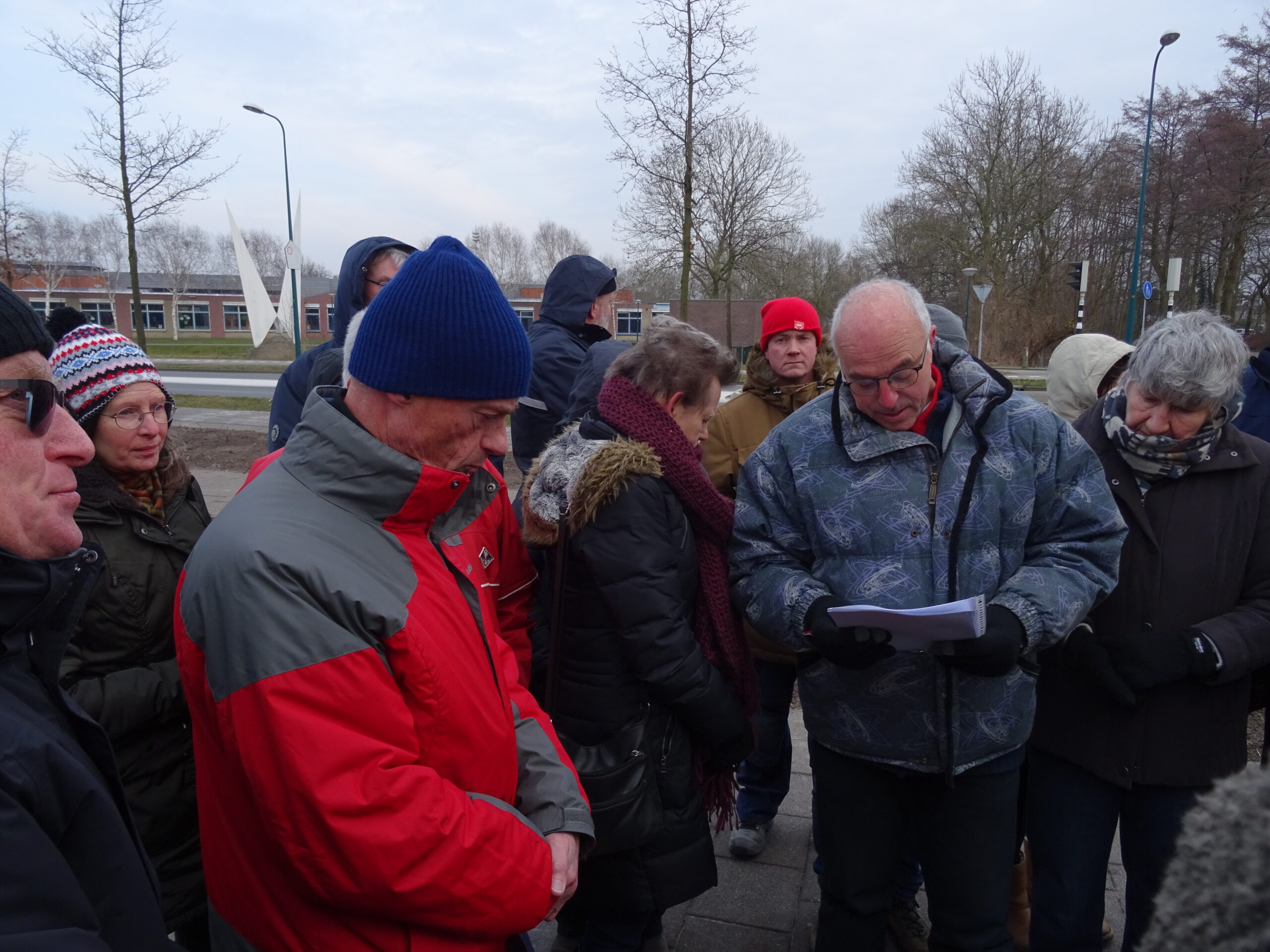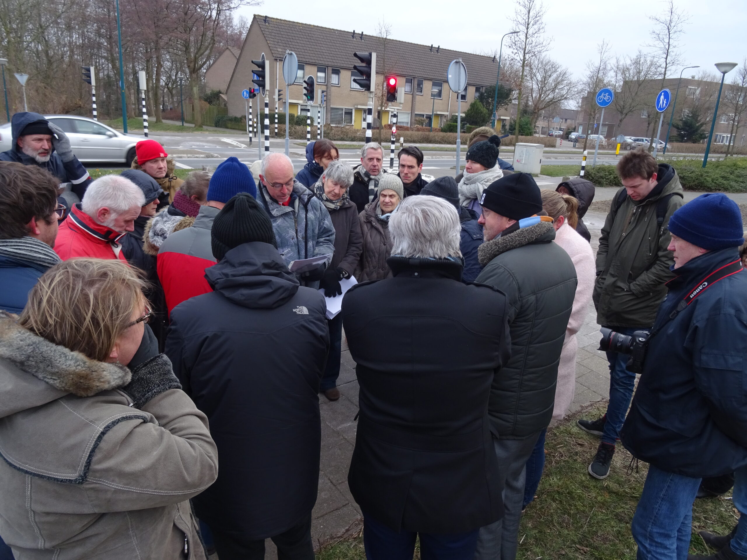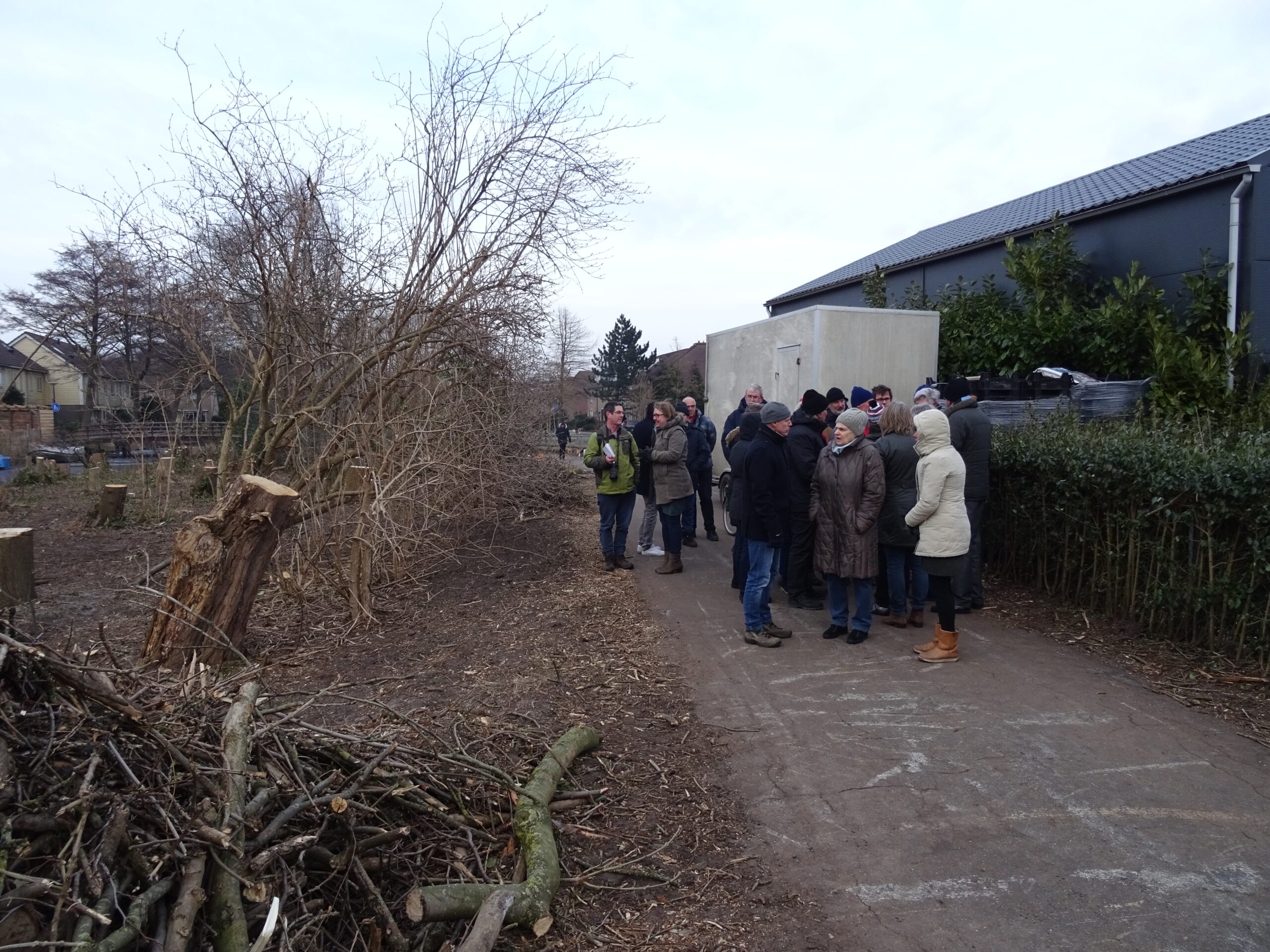 Chris de Waard trotseerde samen met voor- en tegenstanders van de bomenkap de vrieskou en liep met de wethouder en zijn ambtenaren mee langs de houtwal waar momenteel wordt gewerkt.