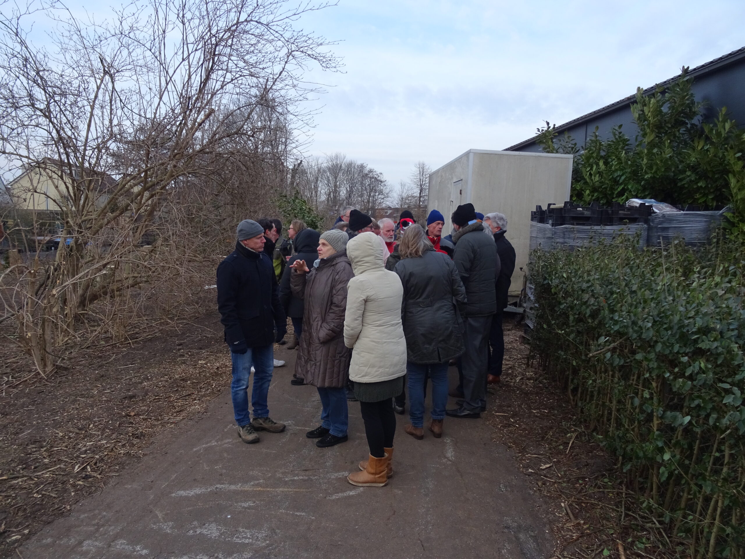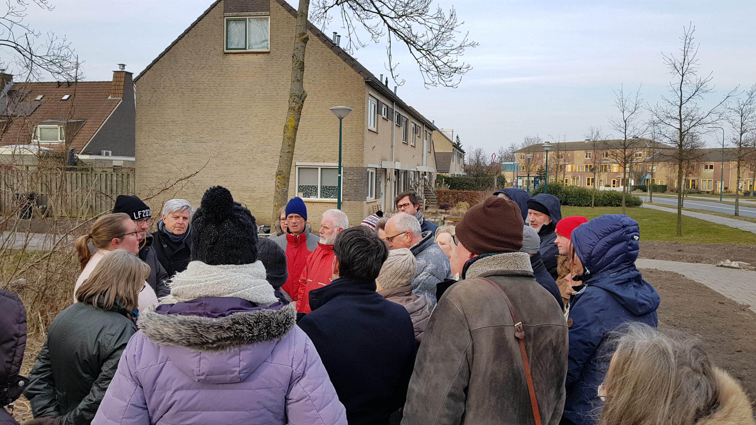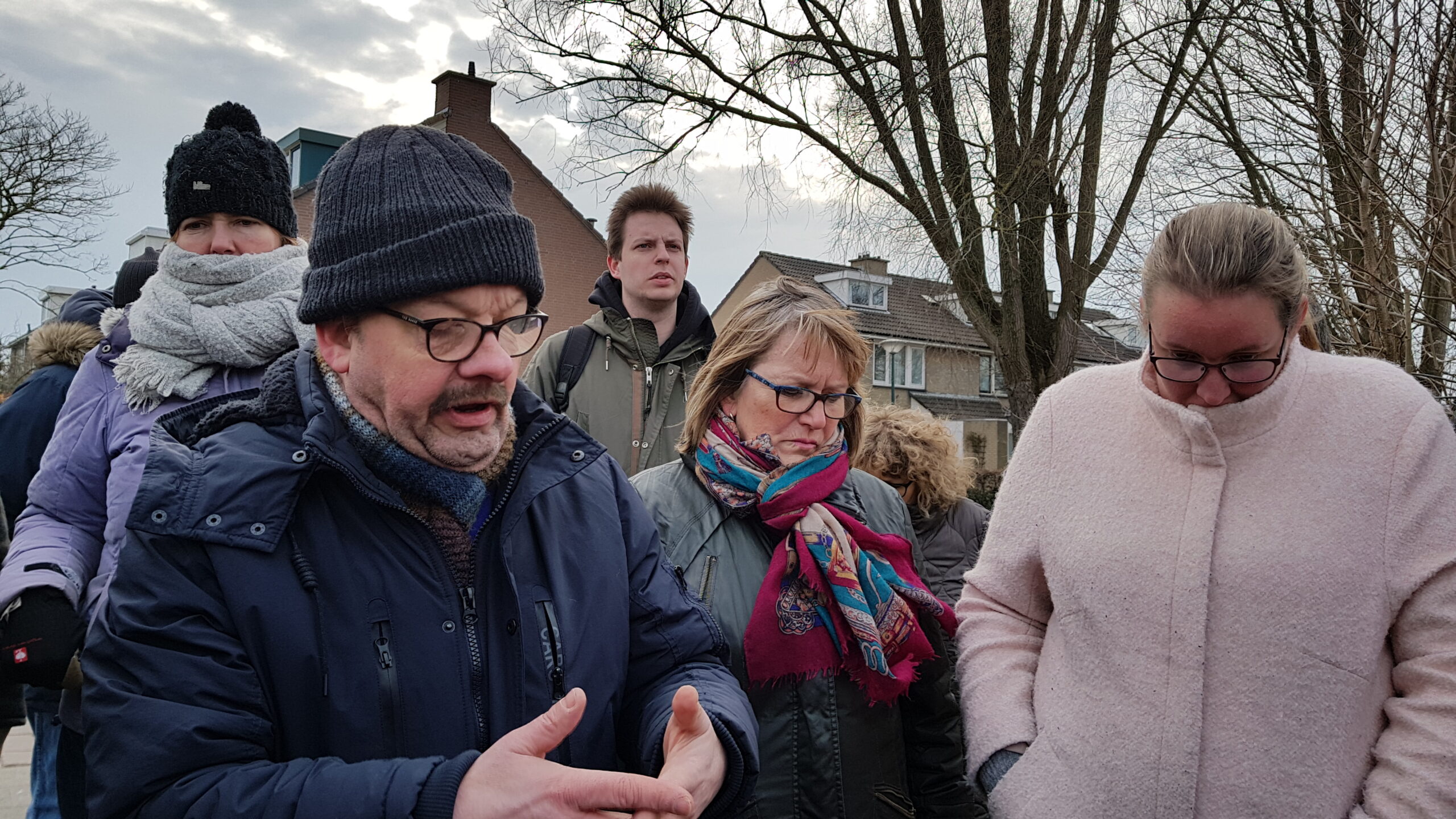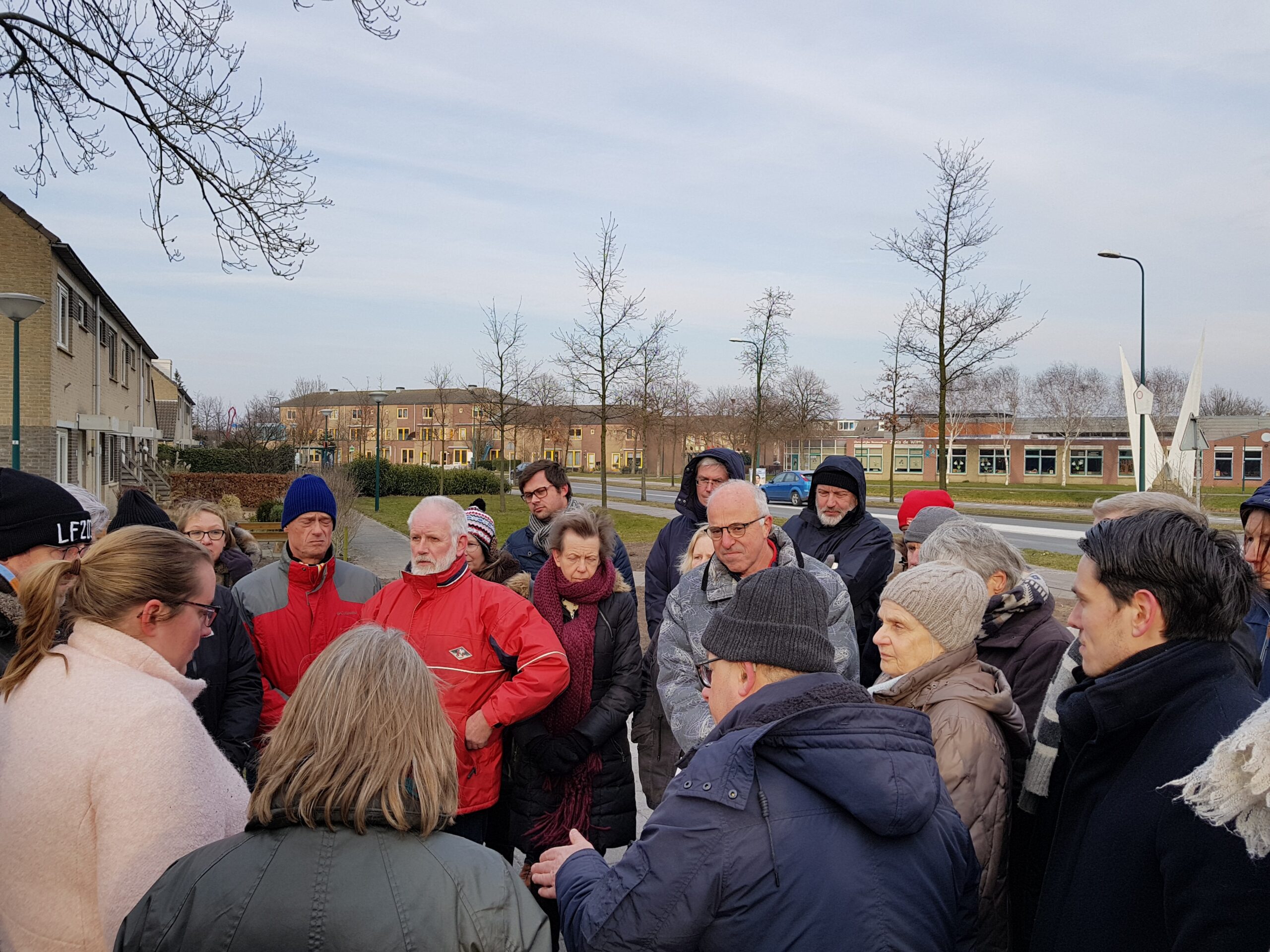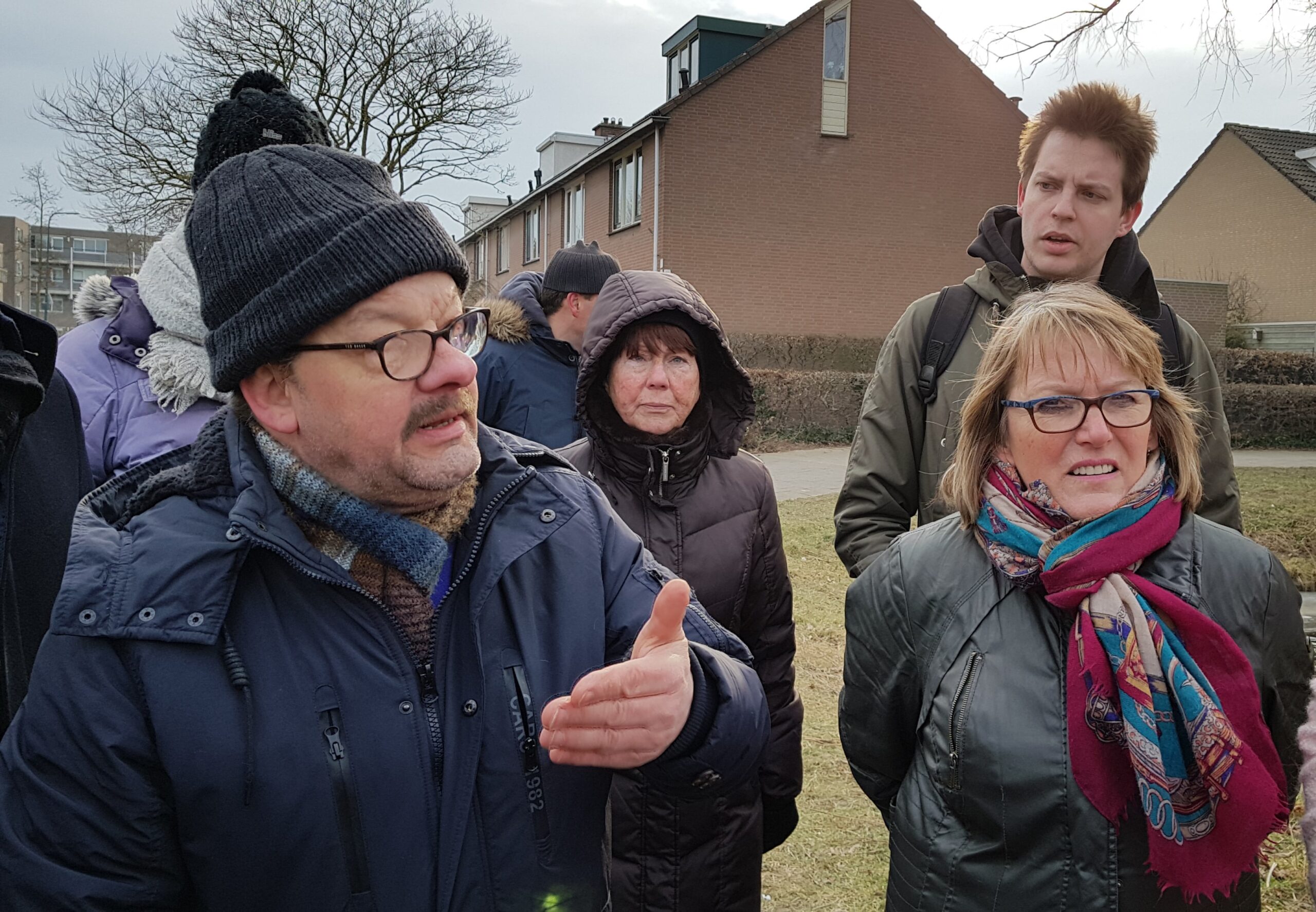 Chris de Waard trotseerde samen met voor- en tegenstanders van de bomenkap de vrieskou en liep met de wethouder en zijn ambtenaren mee langs de houtwal waar momenteel wordt gewerkt.