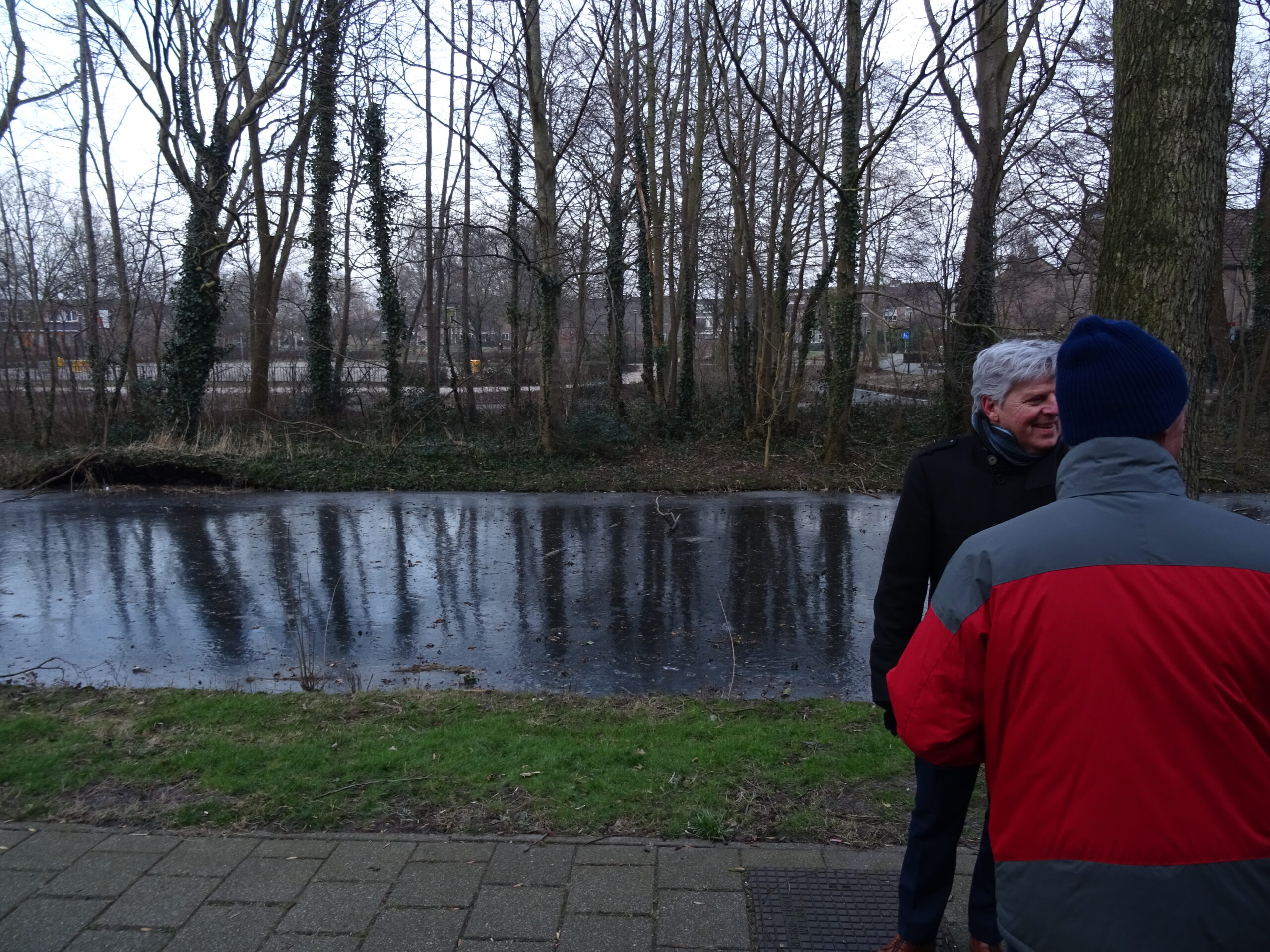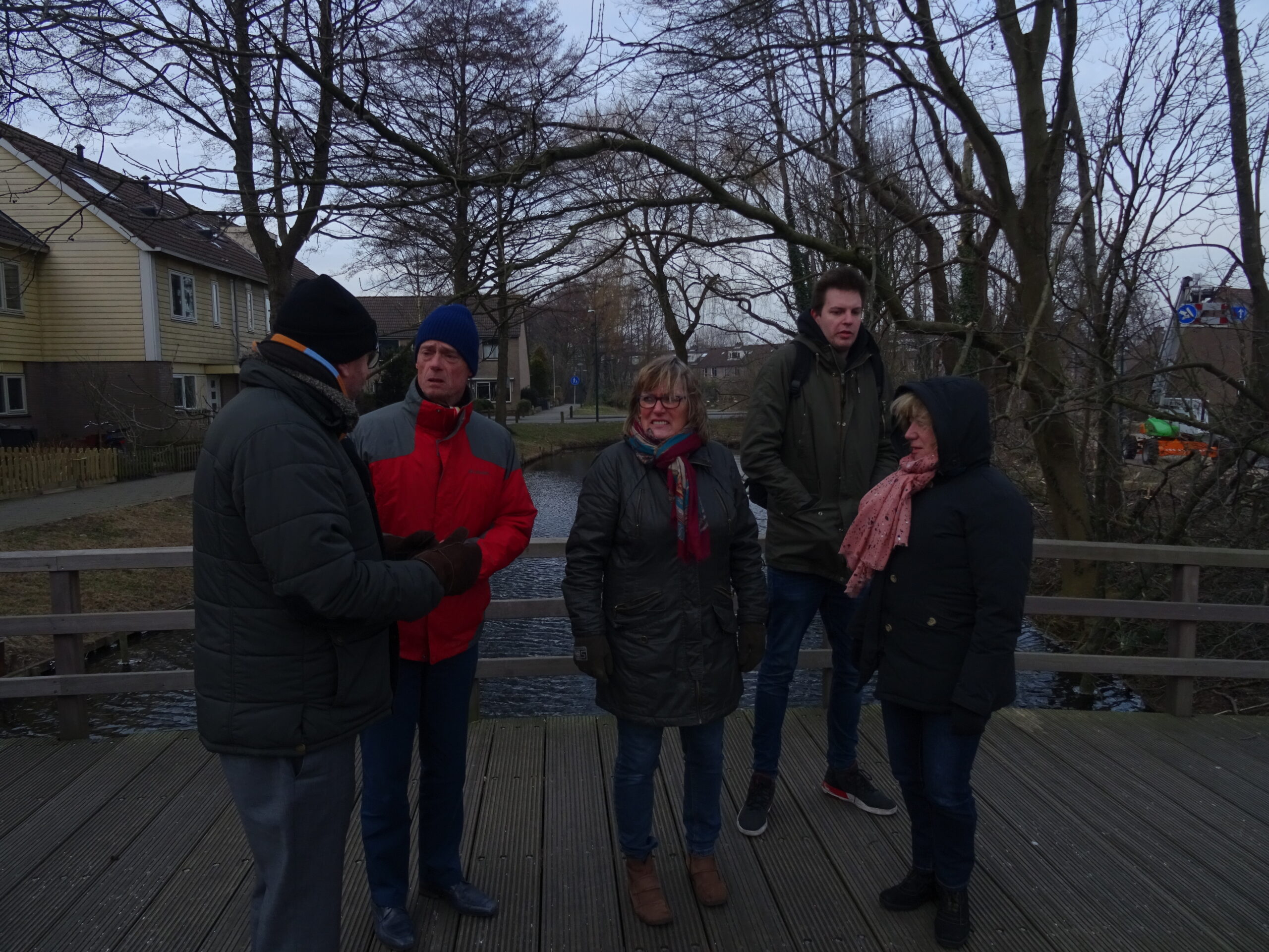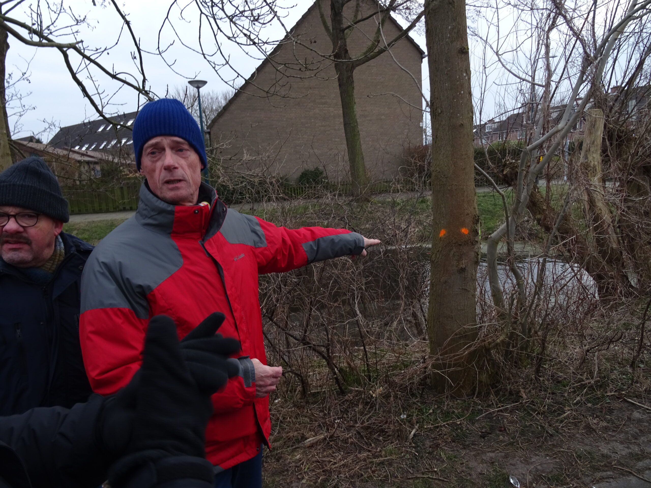 Vrijdagmiddag ging verantwoordelijk wethouder Roeffen met de bewoners in gesprek. Hij deed dat in de ijzige kou op de hoek van de Haaswijklaan en het Componistenpad. Op de kop van een houtwal liet hij voor- en tegenstanders zien wat de bedoeling is van de werkzaamheden die de gemeente op verzoek van het Hoogheemraadschap van Rijnland uitvoert.