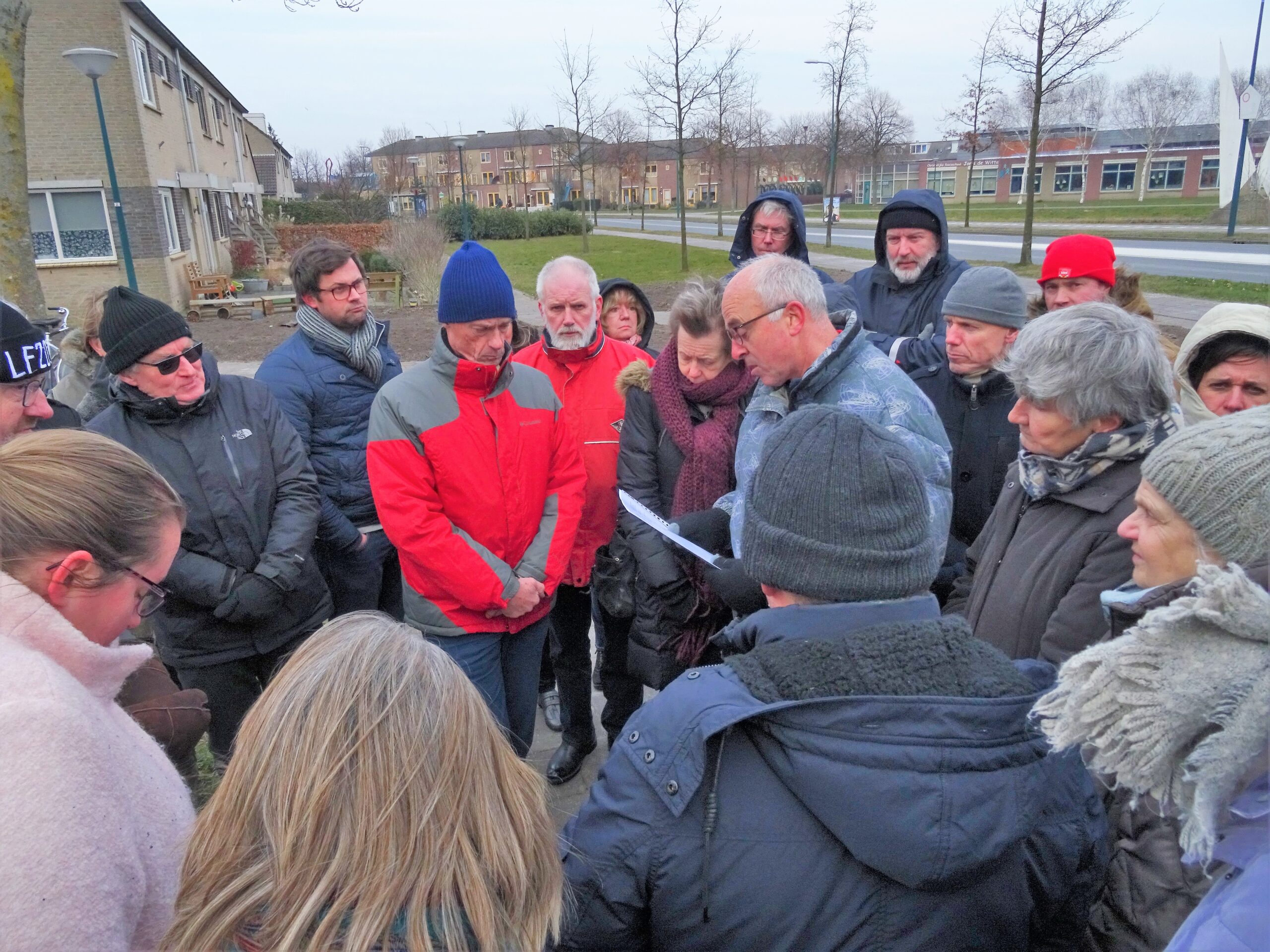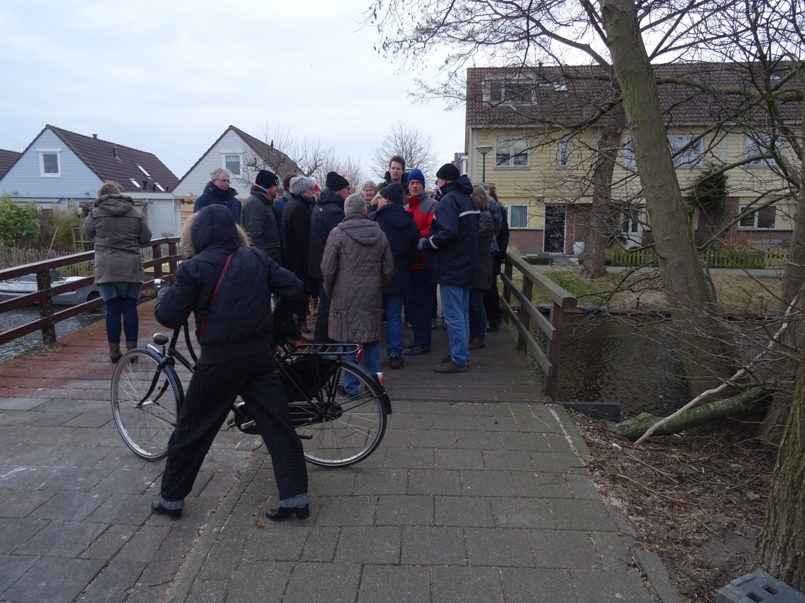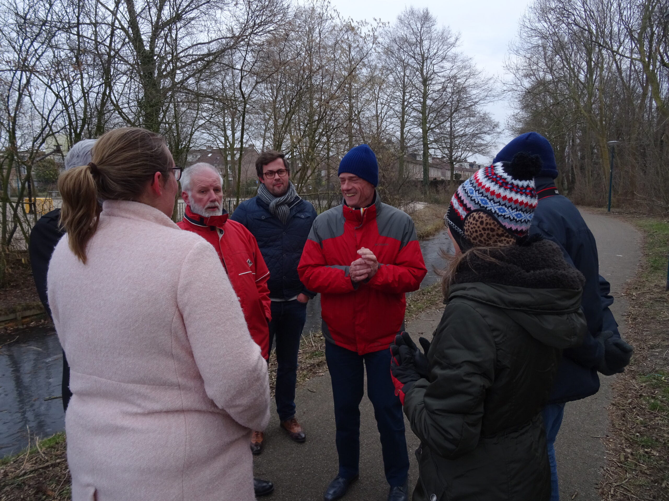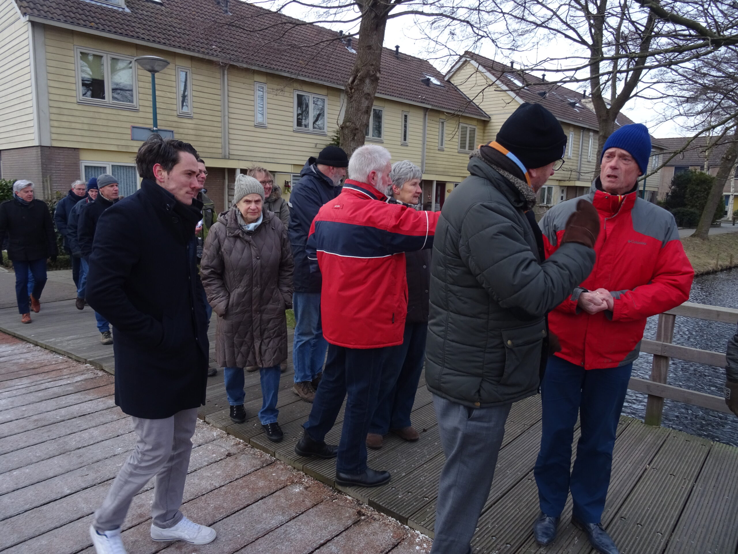 Vrijdagmiddag ging verantwoordelijk wethouder Roeffen met de bewoners in gesprek. Hij deed dat in de ijzige kou op de hoek van de Haaswijklaan en het Componistenpad. Op de kop van een houtwal liet hij voor- en tegenstanders zien wat de bedoeling is van de werkzaamheden die de gemeente op verzoek van het Hoogheemraadschap van Rijnland uitvoert.