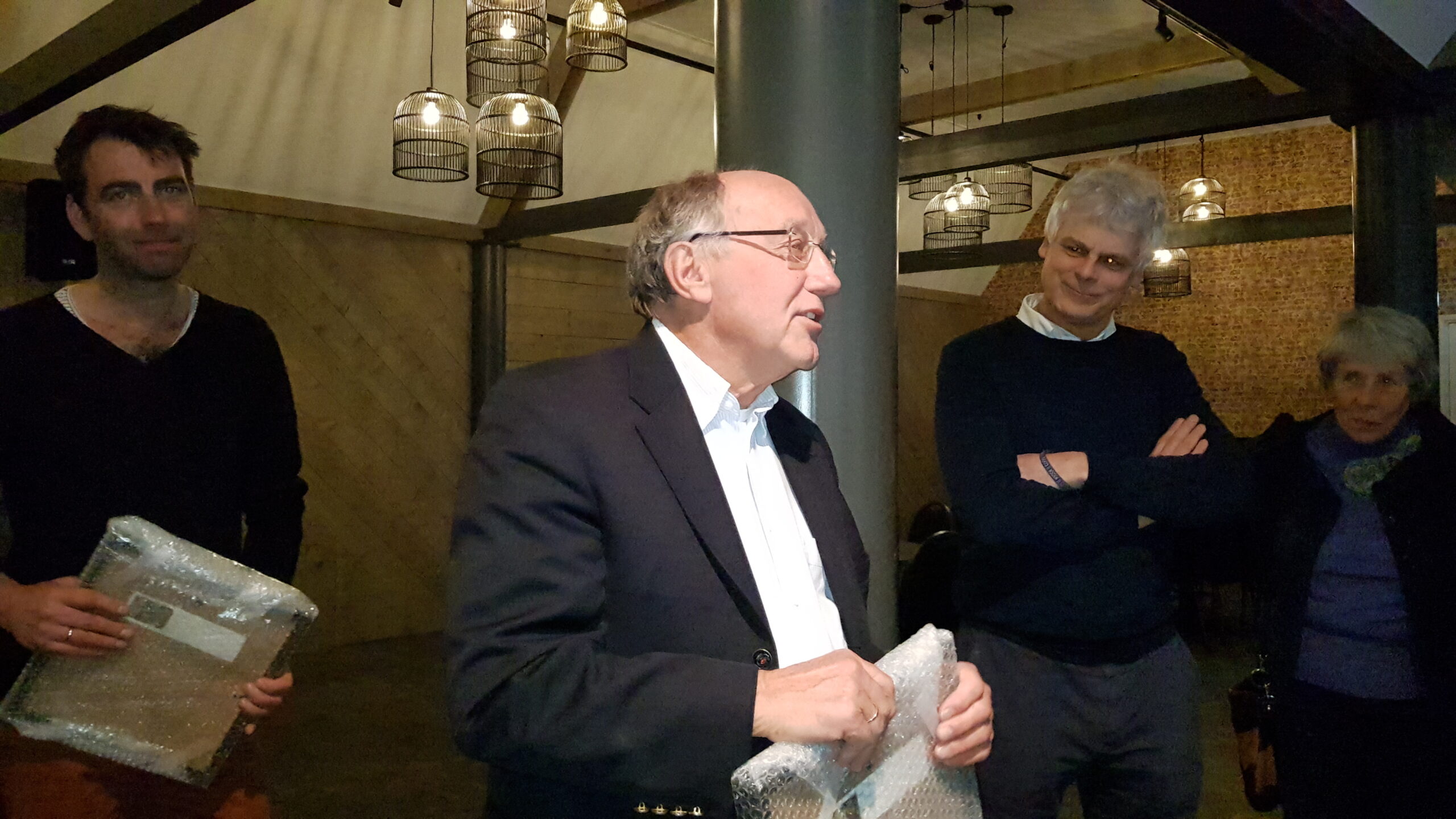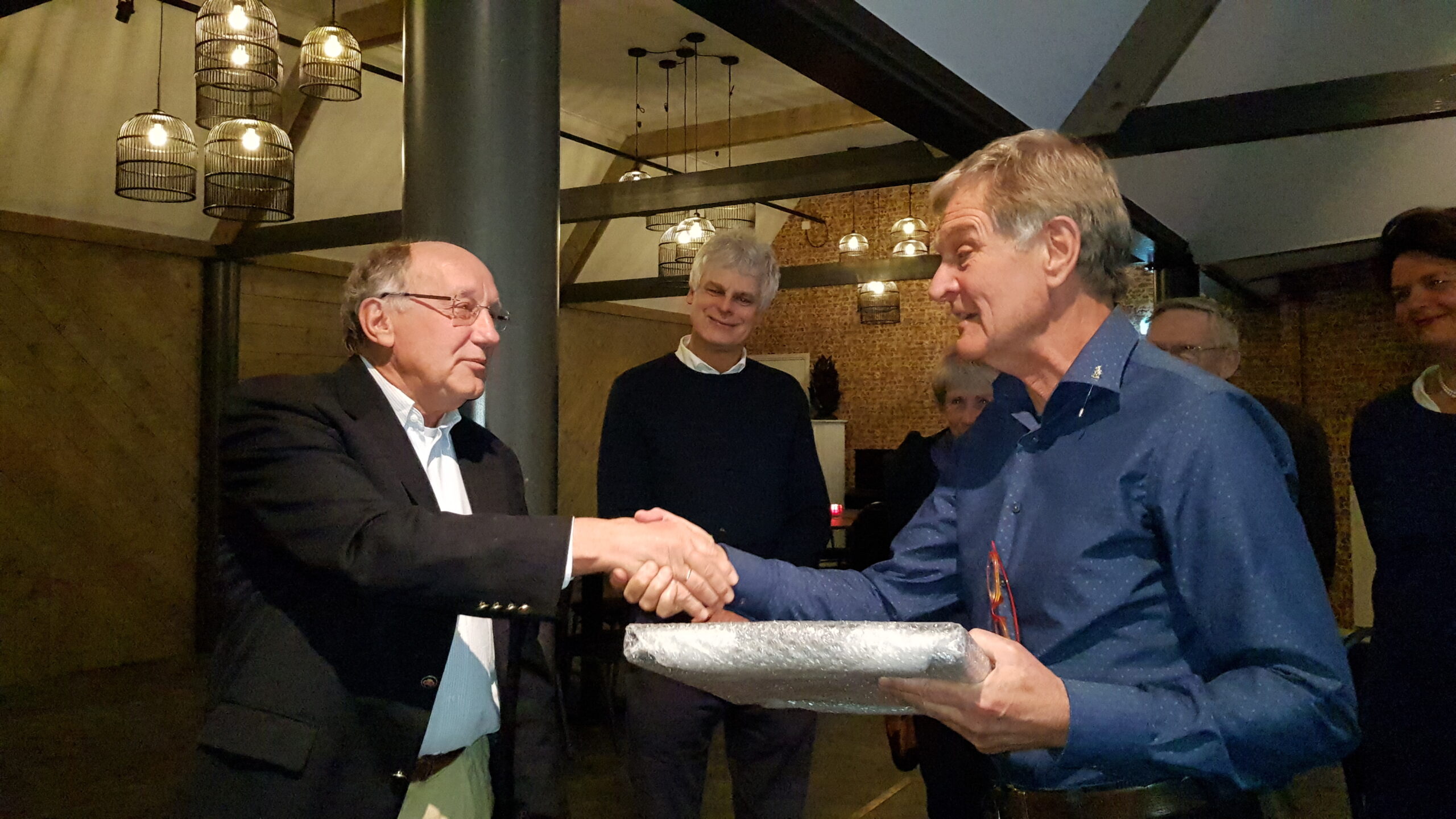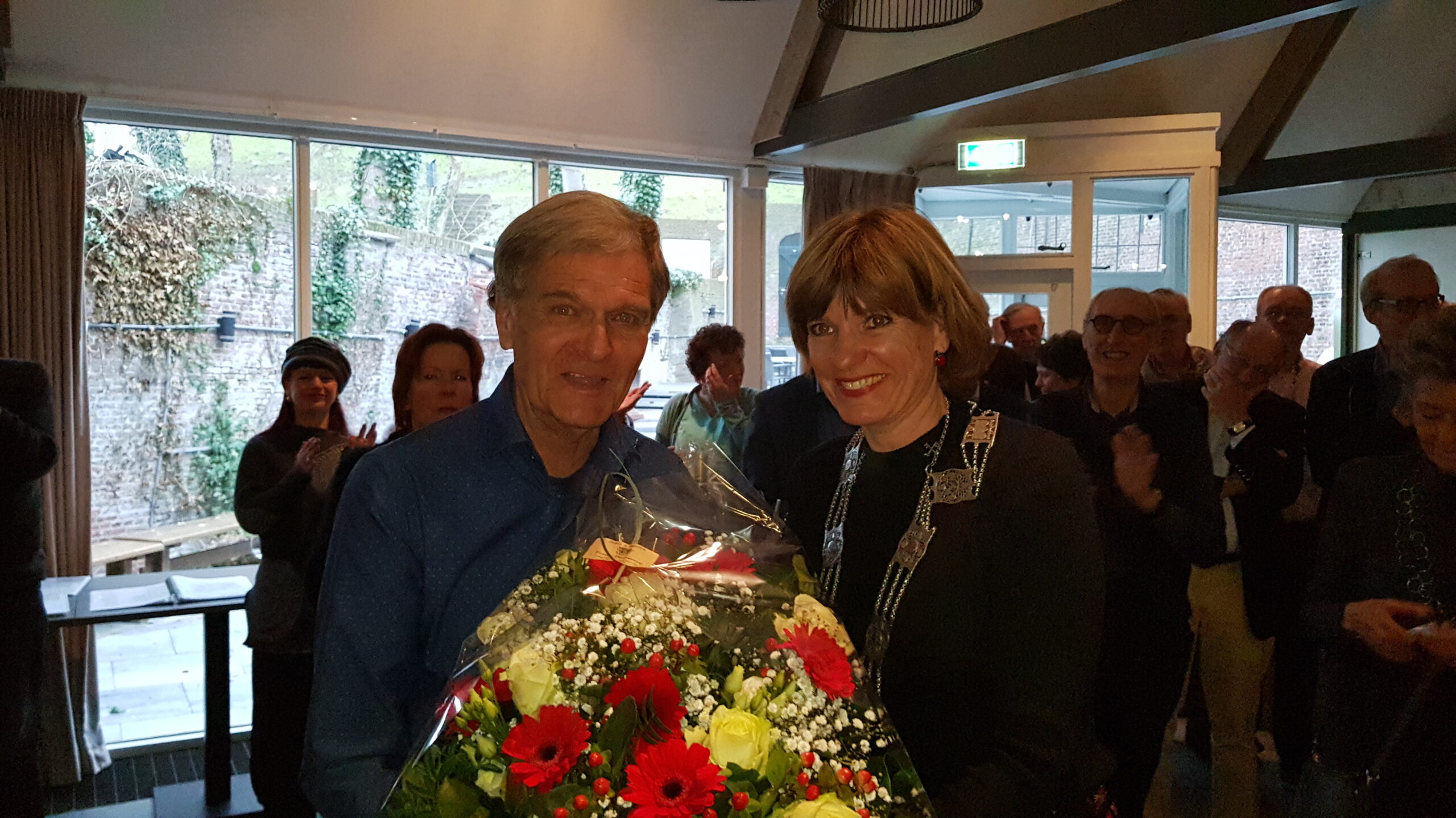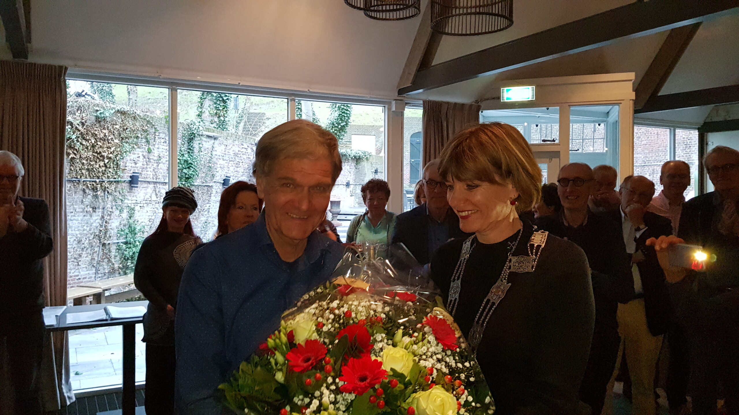 Sleutelstad was aanwezig bij het afscheid van Jaap van Meijgaarden als voorzitter van wijkvereniging Pancras West. Na 30 jaar. Uit handen van locoburgemeester Marleen Damen ontving hij daarbij de Gouden Speld van de gemneente Leiden. Ook drie andere bestuursleden traden met hem af. Zij kregen een Leids boeket van de wijkwethouder en een origineel cadeau van hun opvolgers. Een afbeelding van hun woning.