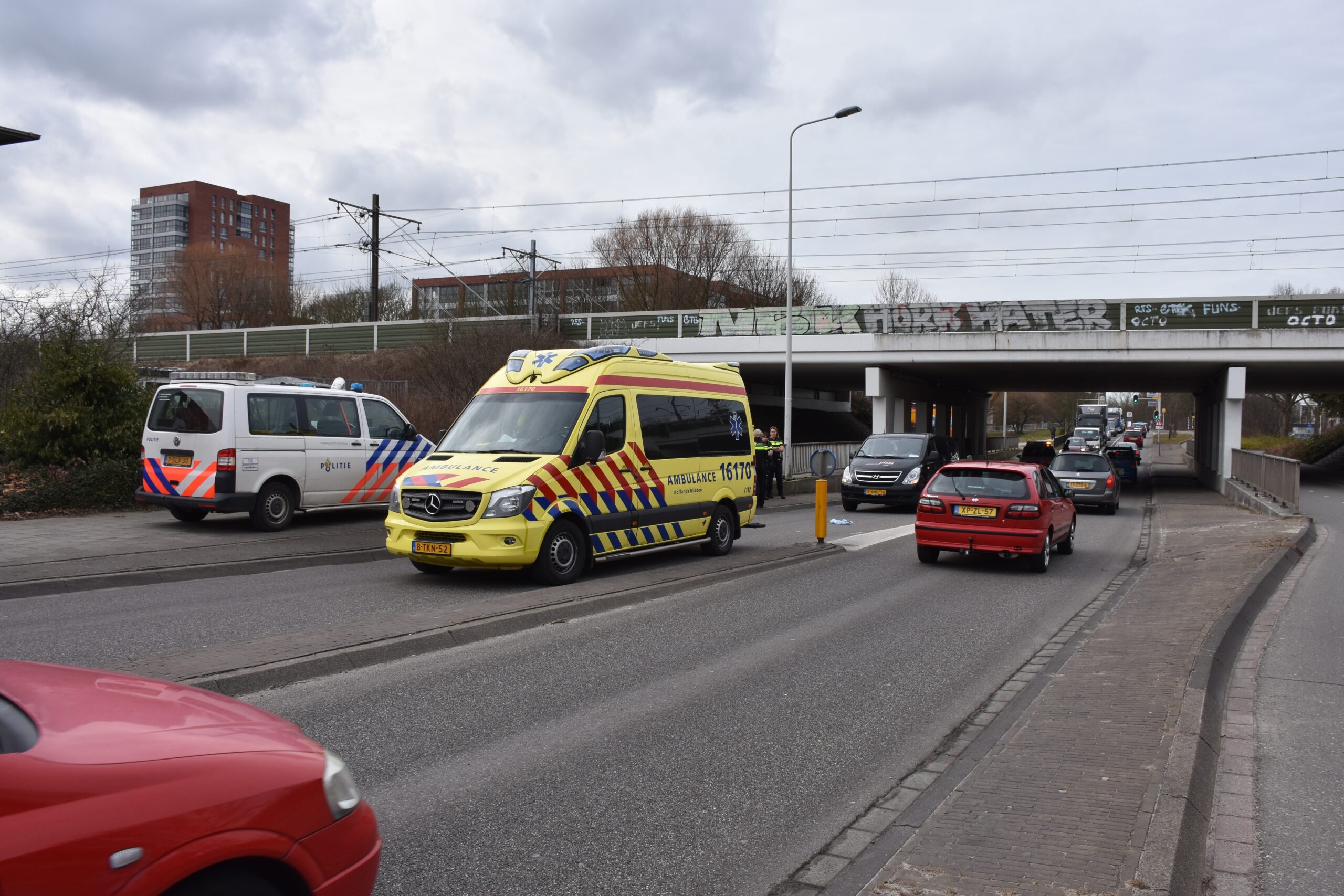 Vrijdagmiddag is een oudere vrouw met haar rollator ten val gekomen tijdens het oversteken van de Doctor Lelylaan (N206) in Leiden. Het verkeer kon op tijd stoppen, maar door de valpartij raakte de vrouw wel gewond. Ze is met onbekende verwondingen naar het ziekenhuis vervoerd.