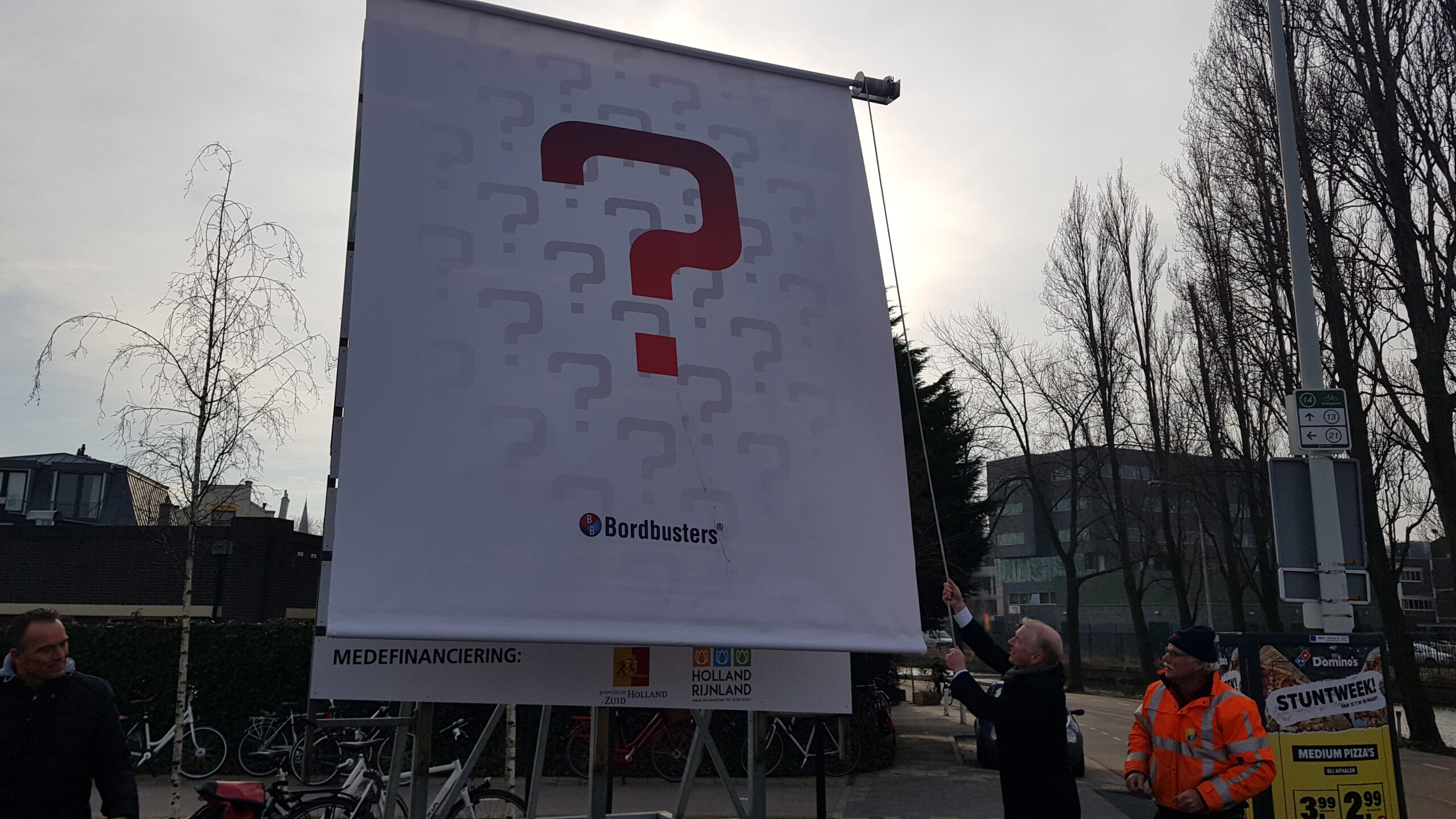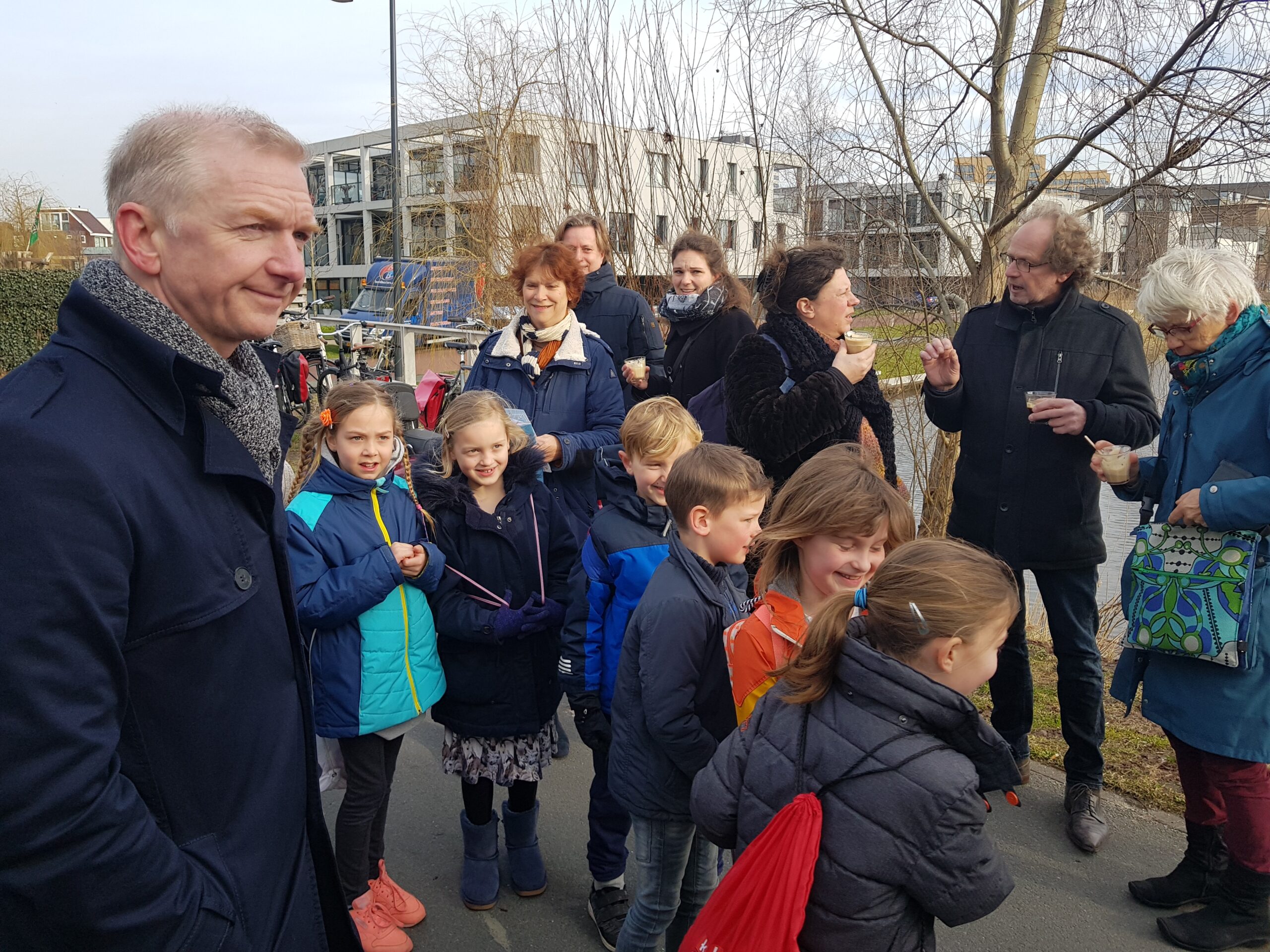 Wethouder Strijk onthulde vanmorgen het bouwbord.
