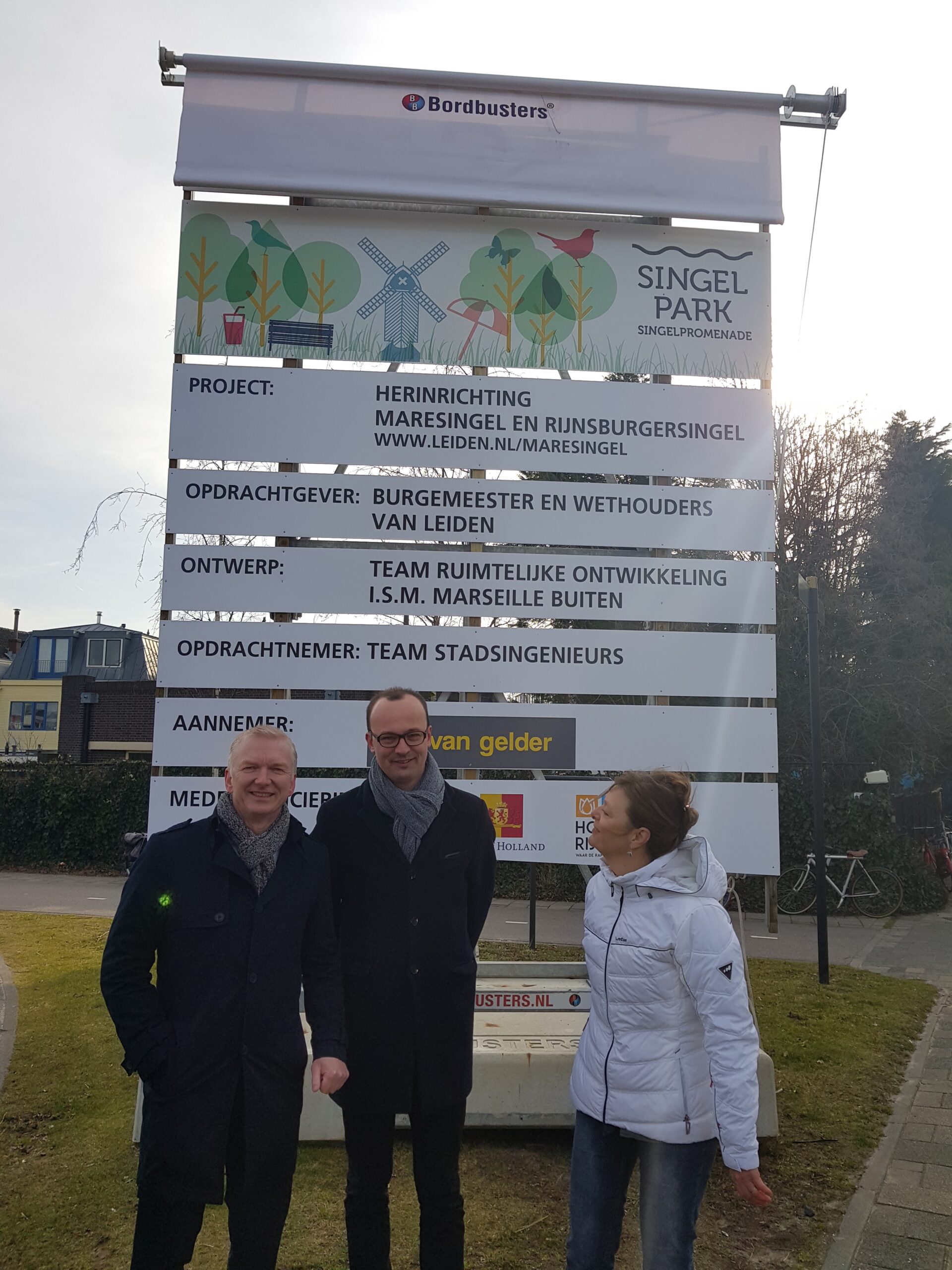 De onthulling van het bouwbord op de hoek van de Maresingel en de Driemanschapskade markeerde vanmorgen de start van de herinrichting van het stuk singel tussen de Valkbrug en de Oude Herengracht. Het gaat om een deel van de Rijnsburgersingel en de hele Maresingel.