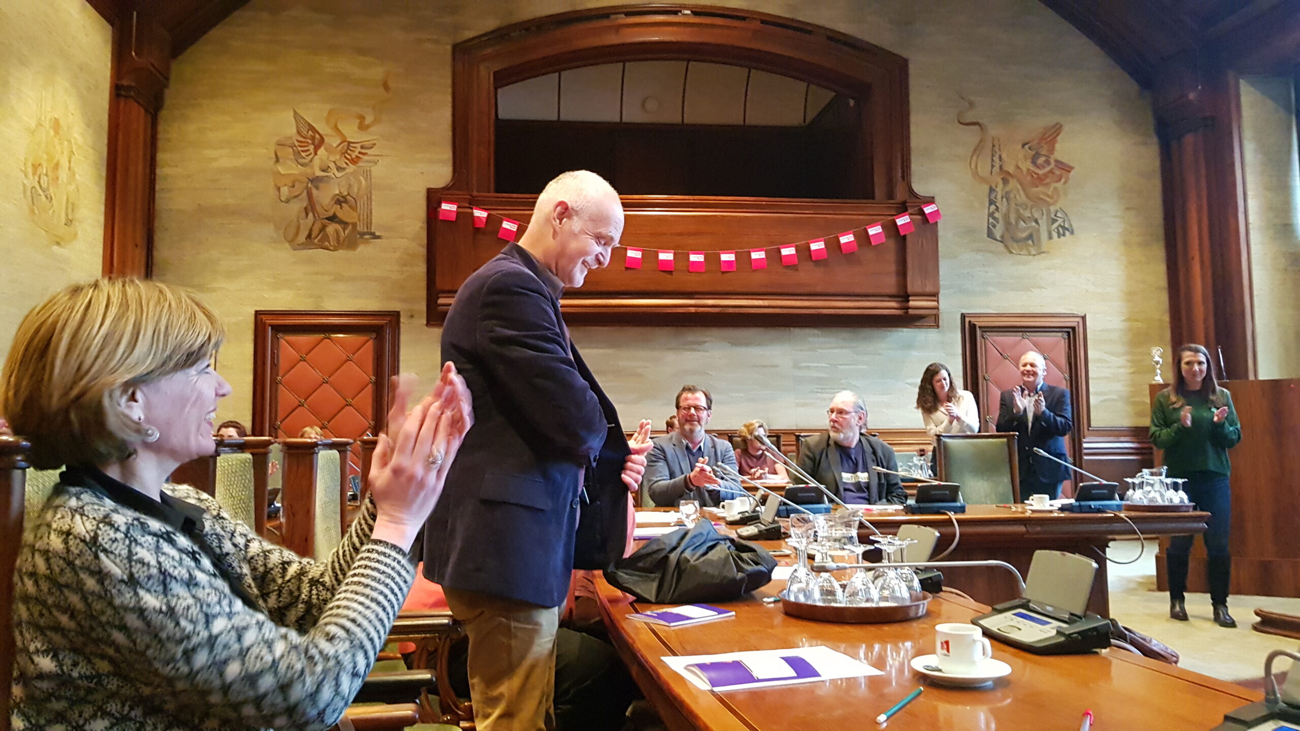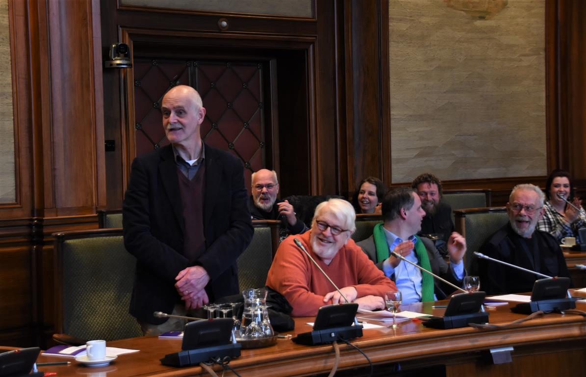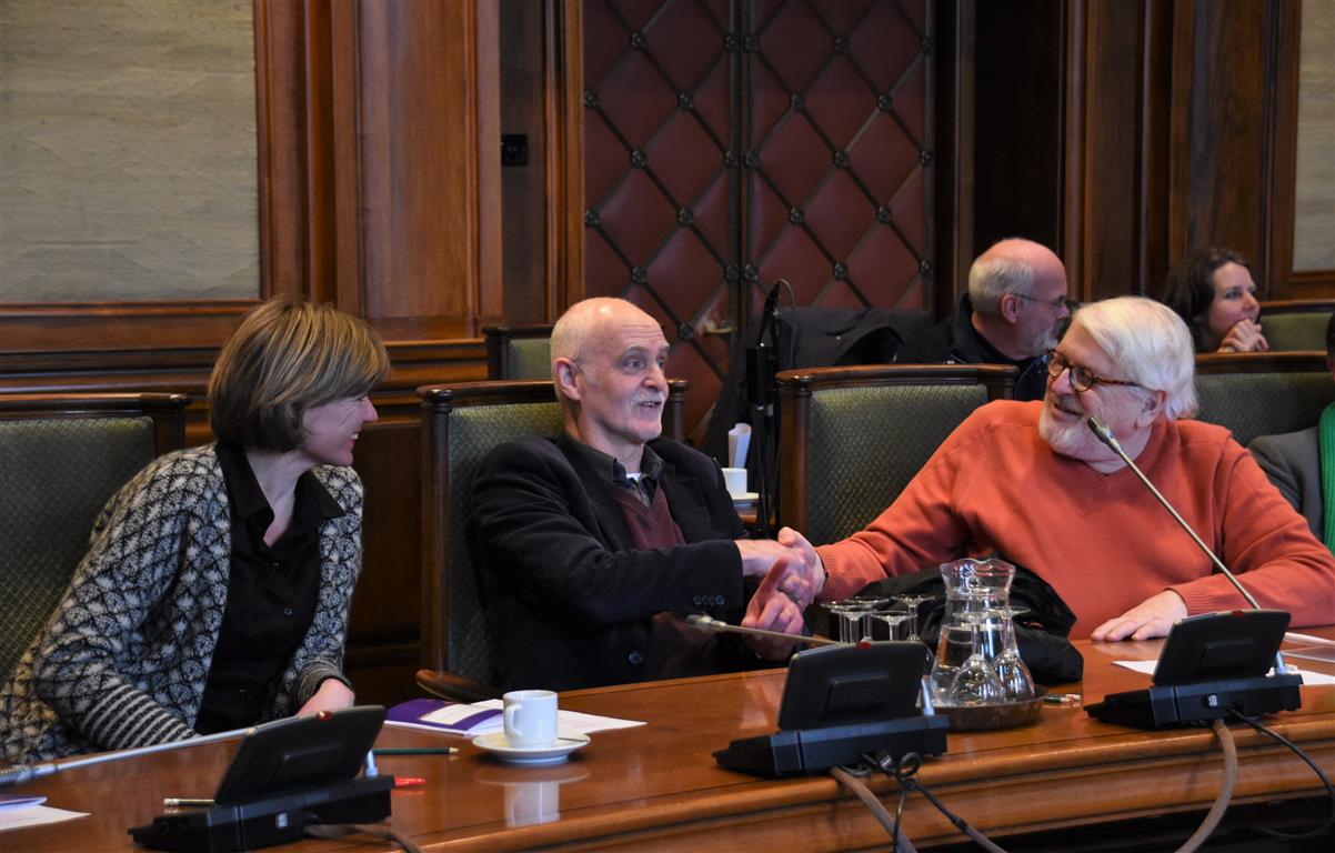 Het idee voor het dictee ontstond pas kort gelegen tijdens een informeel samenzijn van de kandidaat-raadsleden van D66 Leiden. Initiatiefnemer Cor Arnoldus kreeg al snel een hele serie enthousiaste reacties van collega’s van andere Leidse politieke partijen en dus was de Leidse raadzaal zaterdagmiddag flink gevuld met (aankomende) politici, pers en andere belangstellenden.