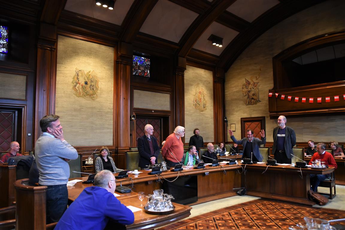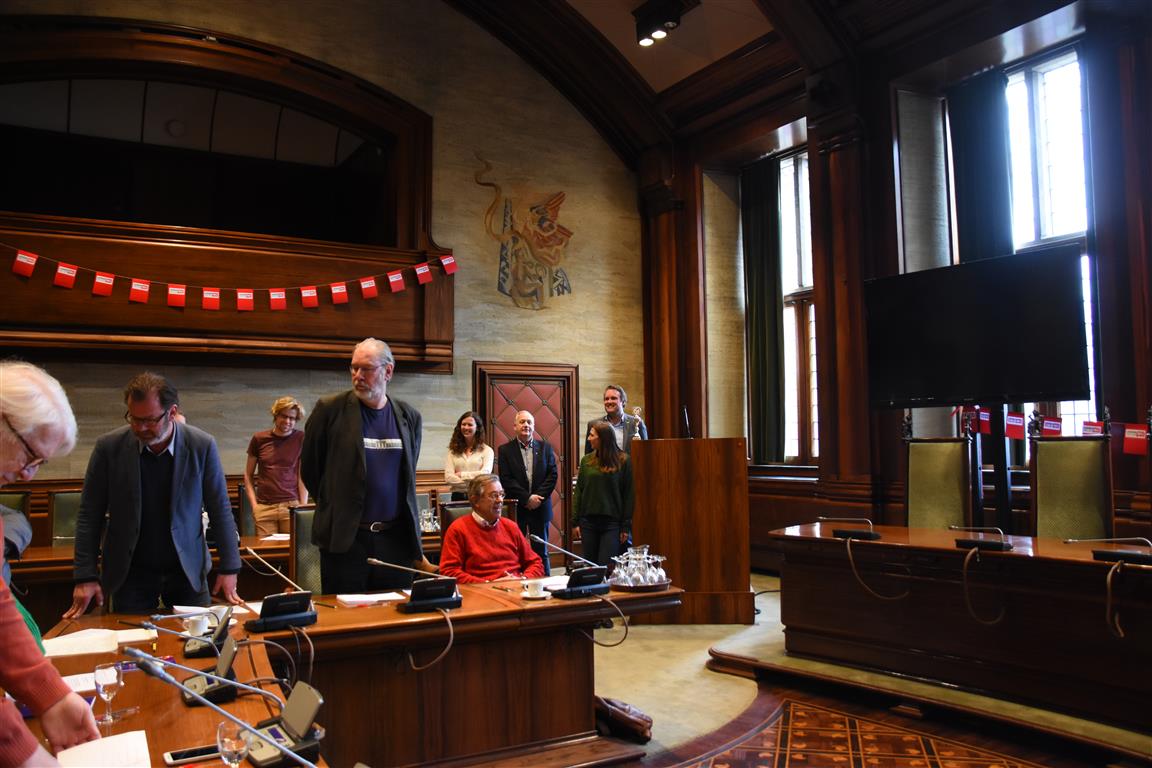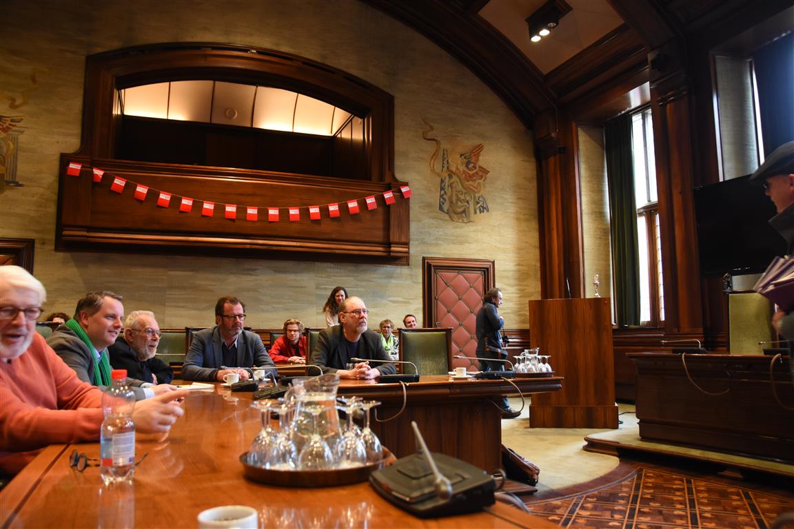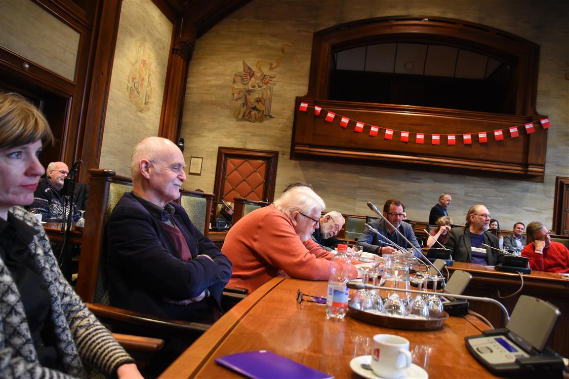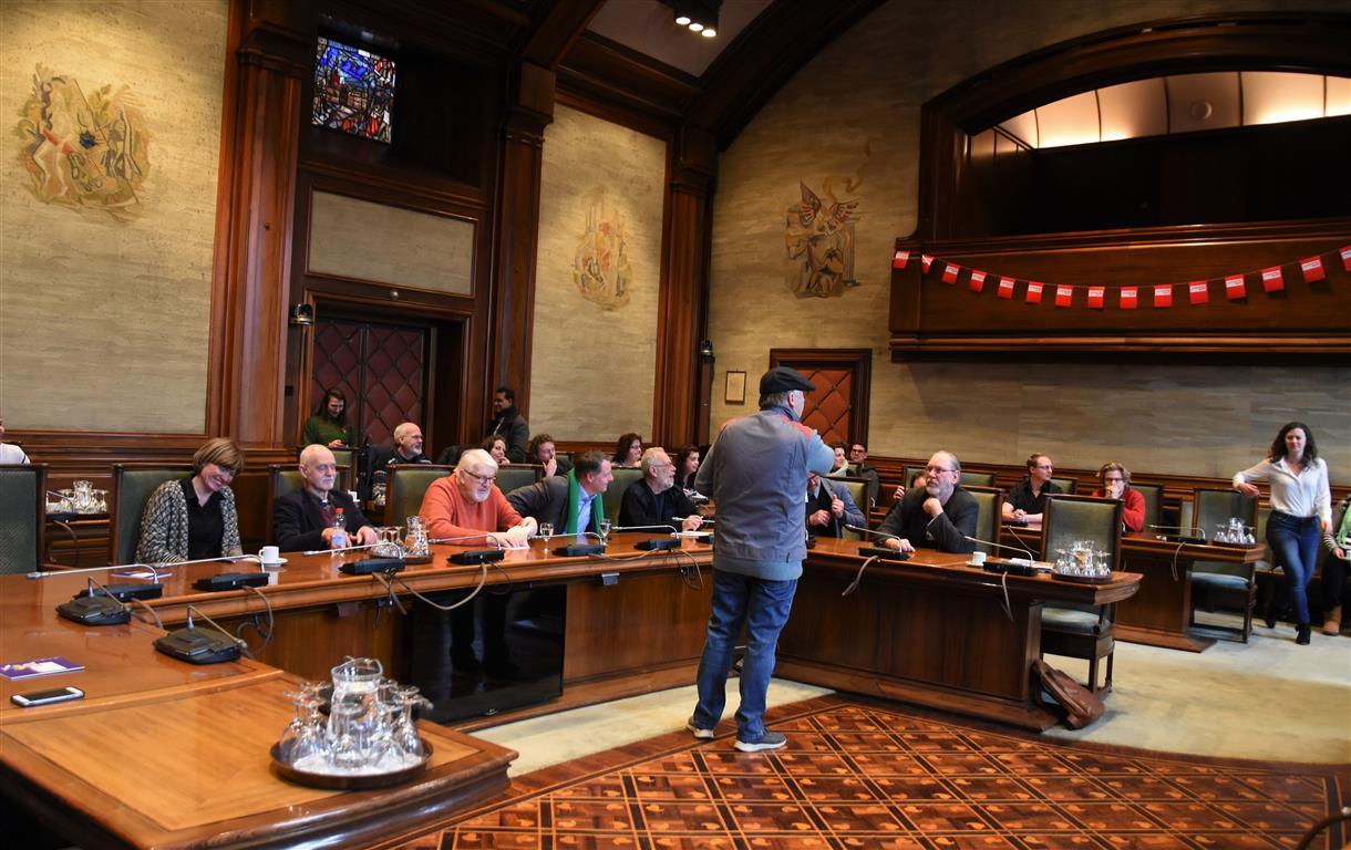 Registratie van het Leids Dictee dat afgelopen zaterdag de eerste editie beleefde in de raadzaal van het stadhuis.