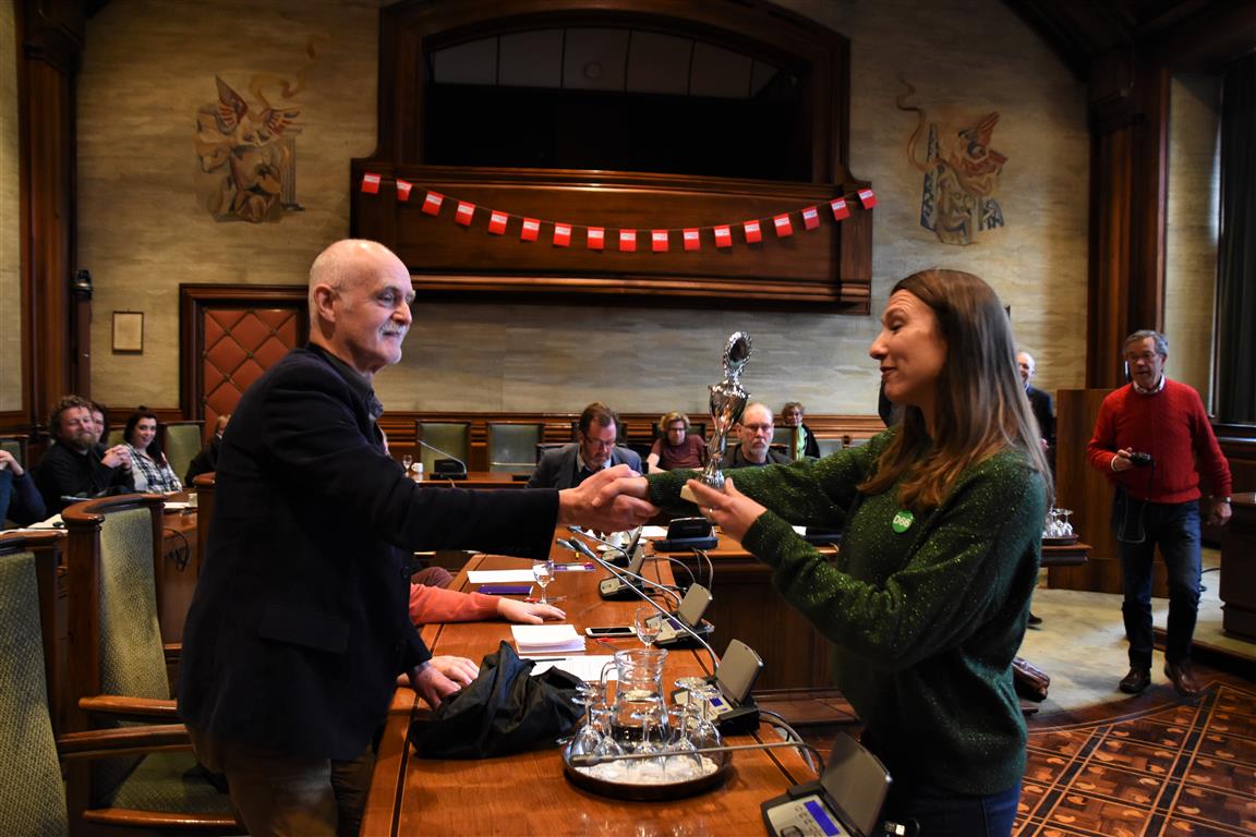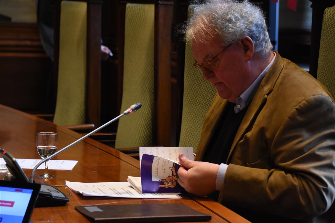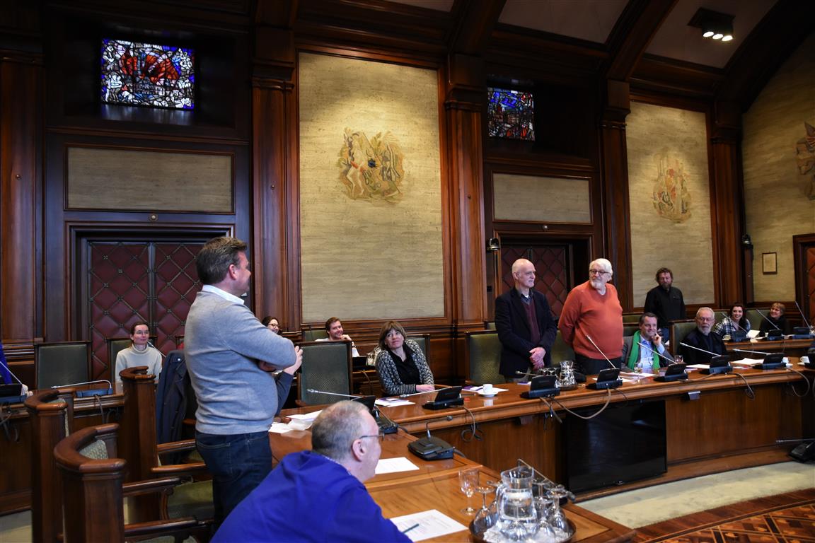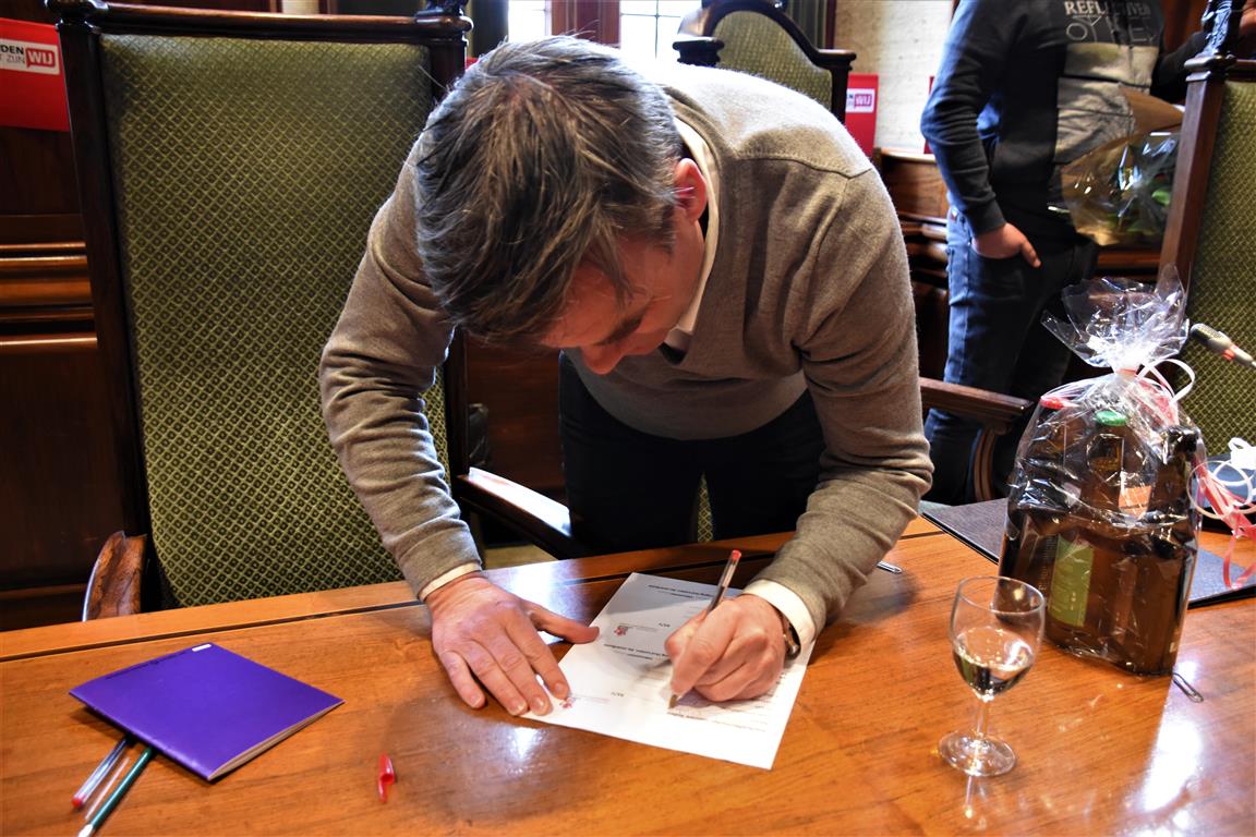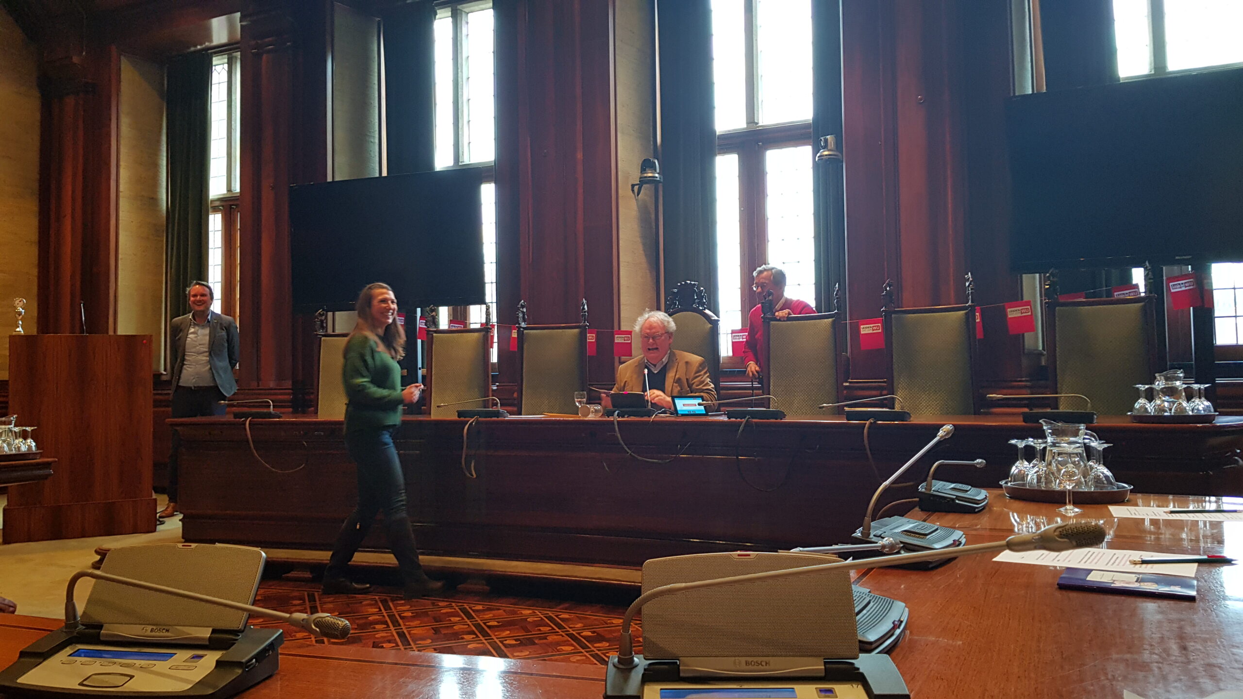 Registratie van het Leids Dictee dat afgelopen zaterdag de eerste editie beleefde in de raadzaal van het stadhuis.