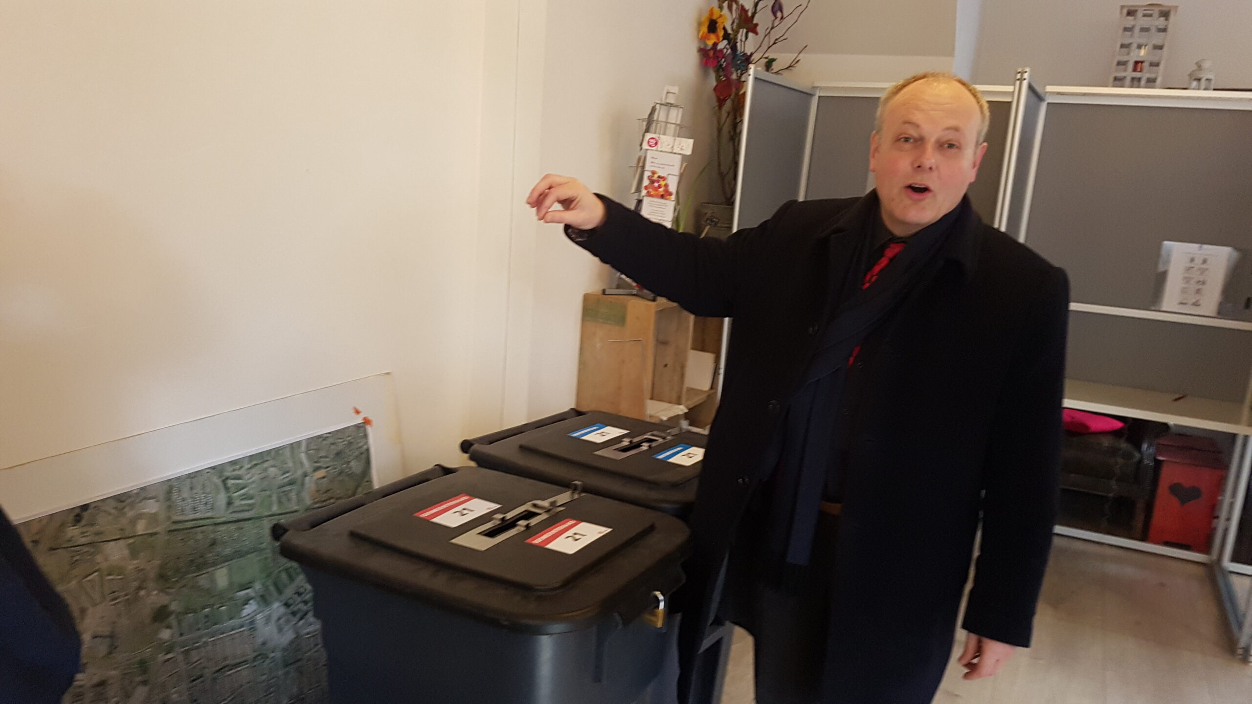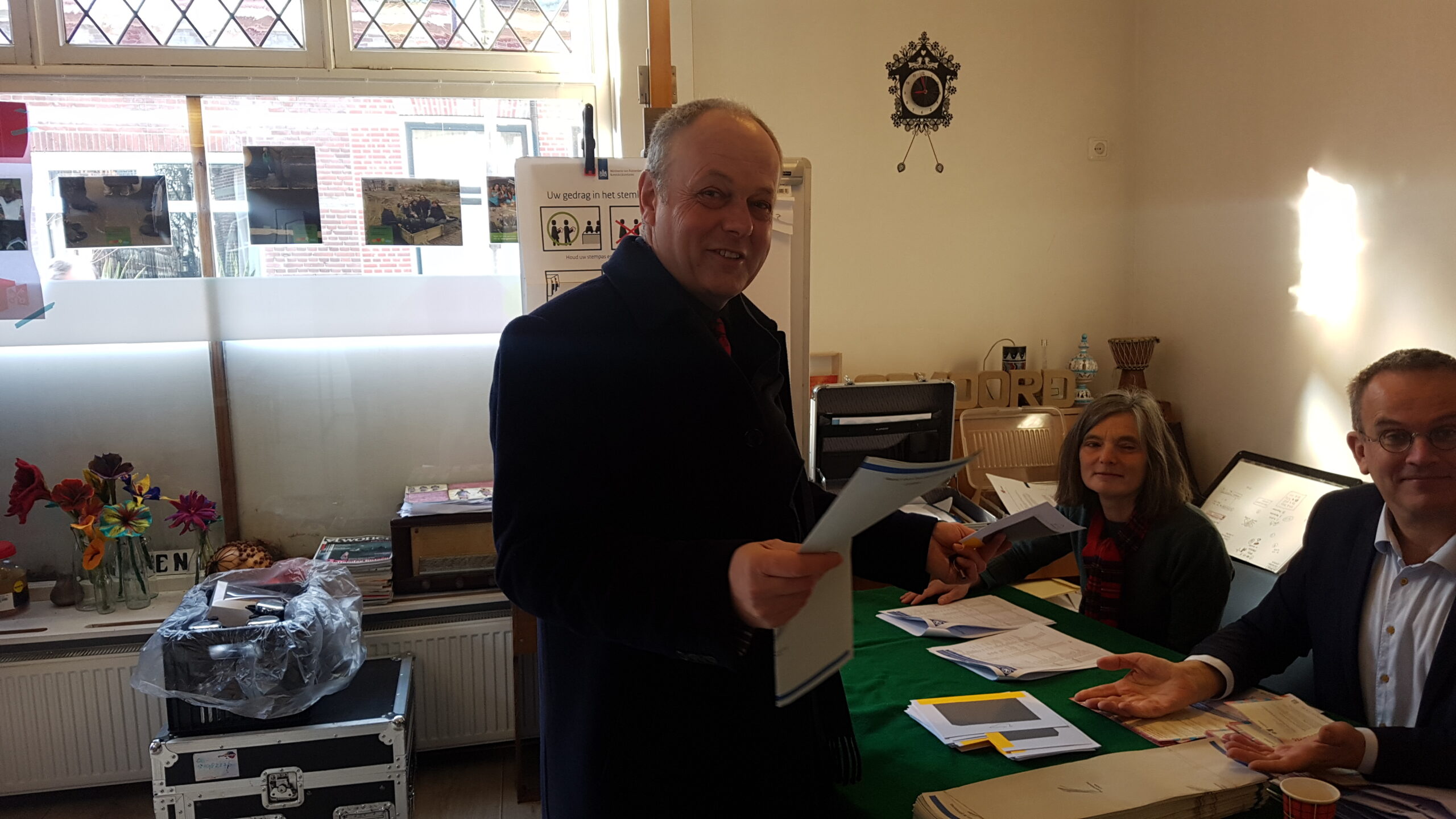 Meet&greet is een voormalige buurtwinkel waar tegenwoordig op initiatief van de wijkbewoners activiteiten voor de buurt worden georganiseerd. Dat was de reden voor de burgemeester om juist daar zijn stem uit te brengen. “Ik vind dit een erg leuk initiatief en wilde ze zo ook wat extra aandacht geven.” Samen met de gemeentesecretaris en griffier maakte hij vanmorgen een tocht langs een aantal van 47 stemlokalen.