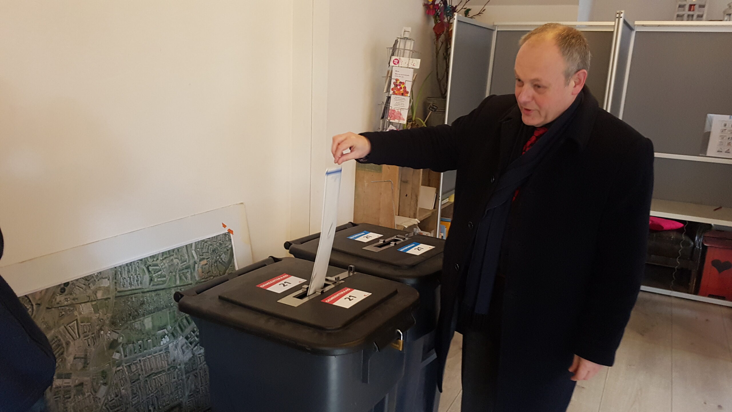 20.25 uur: Onze enige echte Leidse Glibber, Emile van Aelst, maakte al een rondje langs verschillende stembureaus. In dit filmpje (boven) geeft hij ons een sfeerimpressie. Daaronder vindt u nog wat losse sfeerfoto’s.