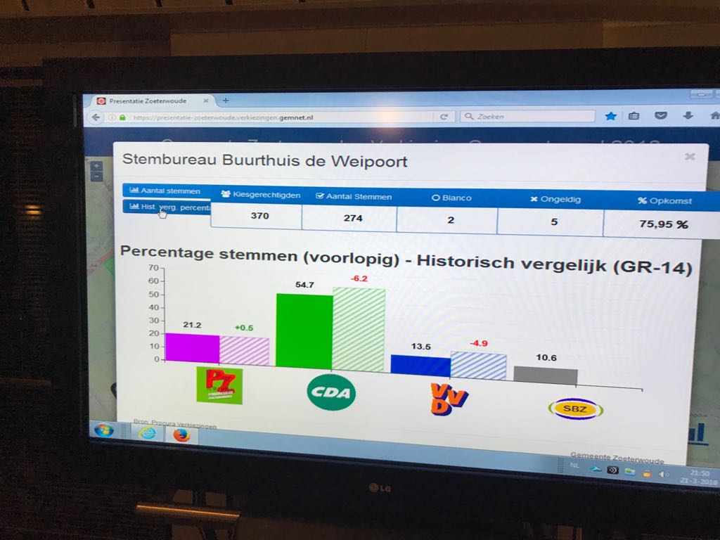 23:34 uur: Tussentijdse uitslag Zoeterwoude