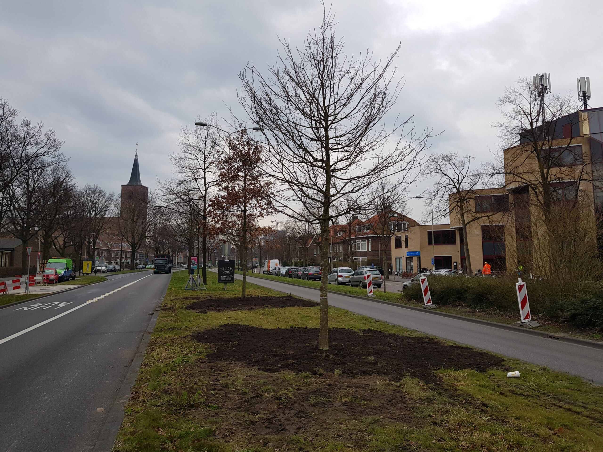 Nadat de werkzaamheden aan de rijbanen van de Lammenschansweg al enige tijd geleden werden afgerond, is de gemeente inmiddels druk bezig met het aanplanten van bomen. Het was even wachten op het aanbreken van het voorjaar voordat de bomen de grond in konden. Op de middenberm is inmiddels een hele rij wat grotere bomen neergezet.