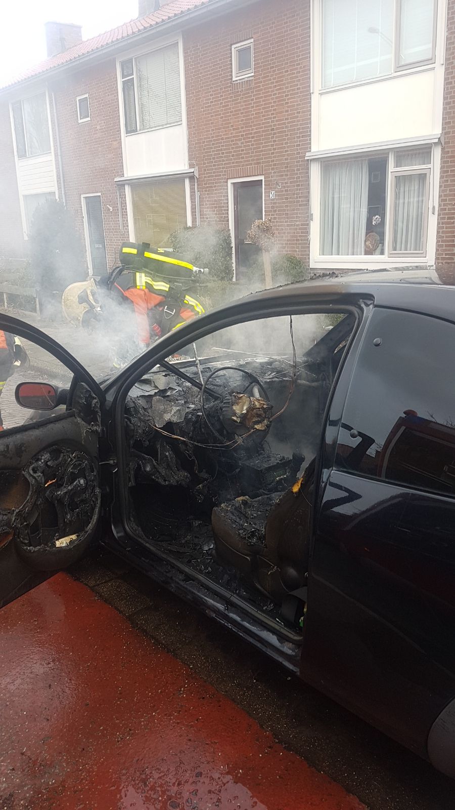 Het raadslid zelf kwam met de schrik vrij. Toen ze tijdens het rijden een vreemde lucht rook, parkeerde ze haar auto langs de Raadhuislaan. Vlak daarna vloog de auto in brand en was er ook voor de toegesnelde brandweer geen redden meer aan.