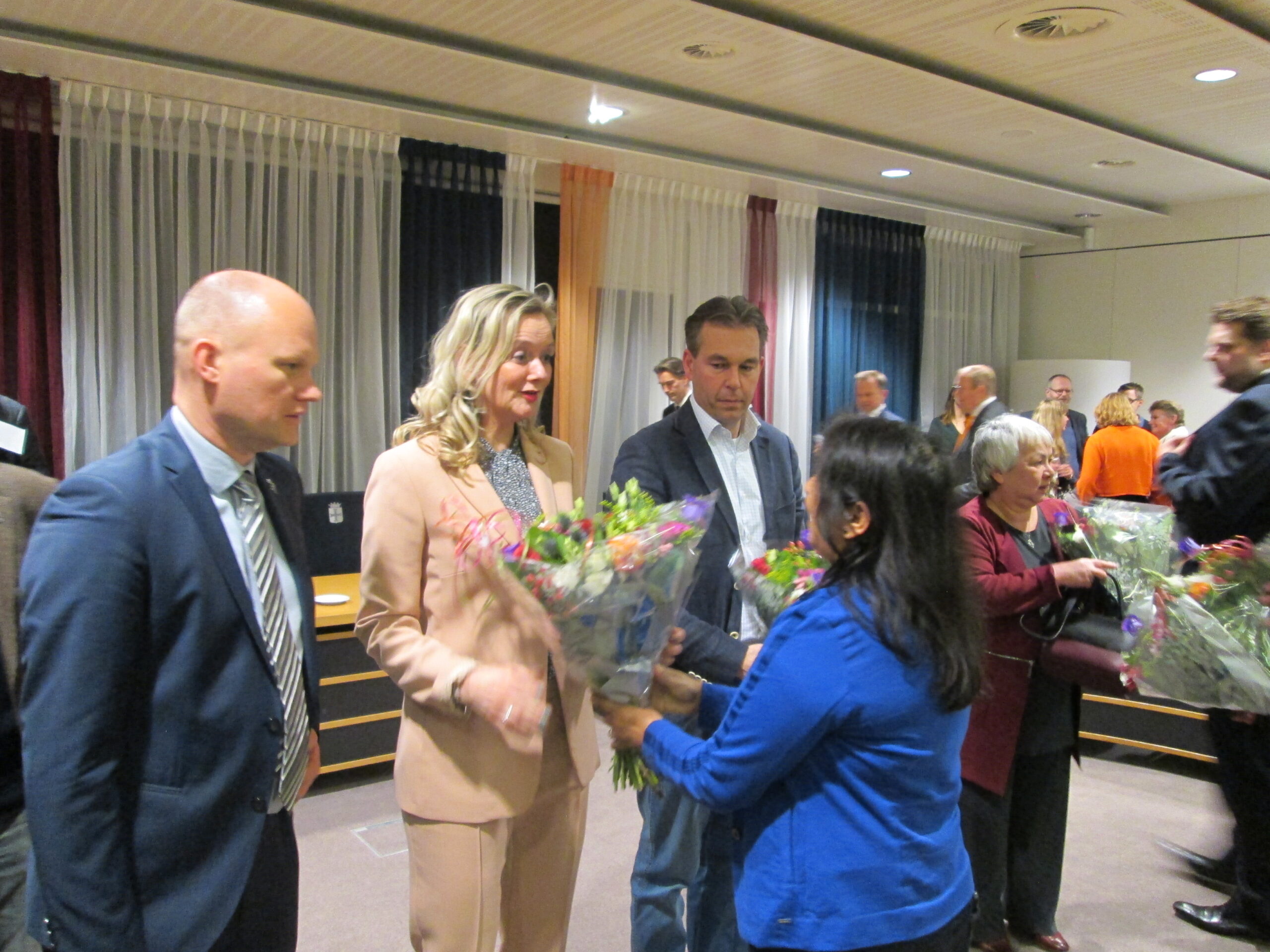 De andere tien plekken in de raad worden ingenomen door raadsleden die al in de raad zaten: Eibertjan van Blitterswijk (fractievoorzitter CDA), Elfred Bus (fractievoorzitter D66), Ingrid van Dillen (CDA), Frits van Dissel (fractievoorzitter HvO), Watze Mandema (CDA), Eelke van den Ouweelen (fractievoorzitter Lokaal Oegstgeest), Ria Pasterkamp (PrO), Marcus Rolloos (VVD), Karin Rosdorff (HvO) en Sven Spaargaren (fractievoorzitter VVD). Voor hen was het een mooi moment om aan vrienden en familie te laten zien waar ze hun raadswerk doen.