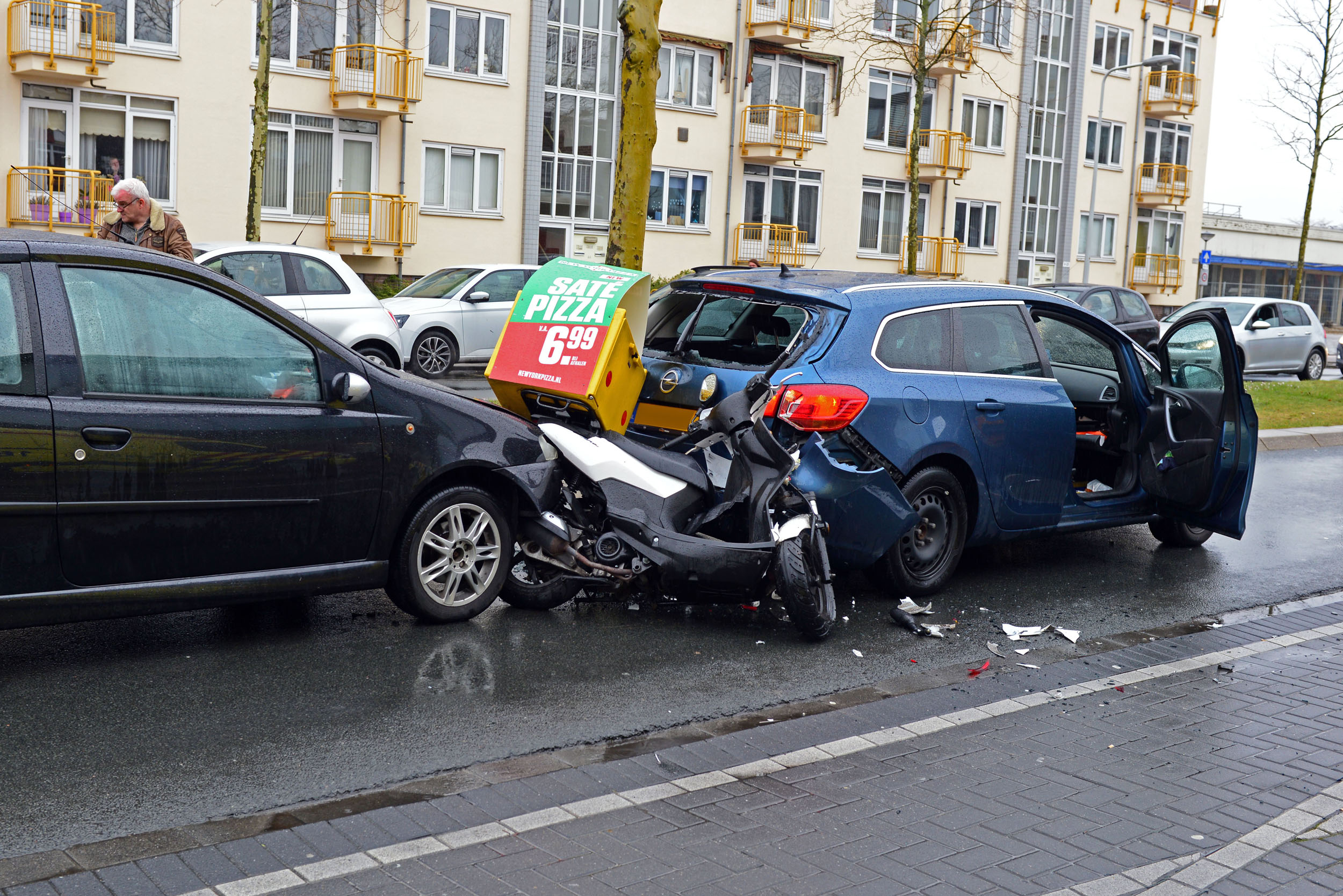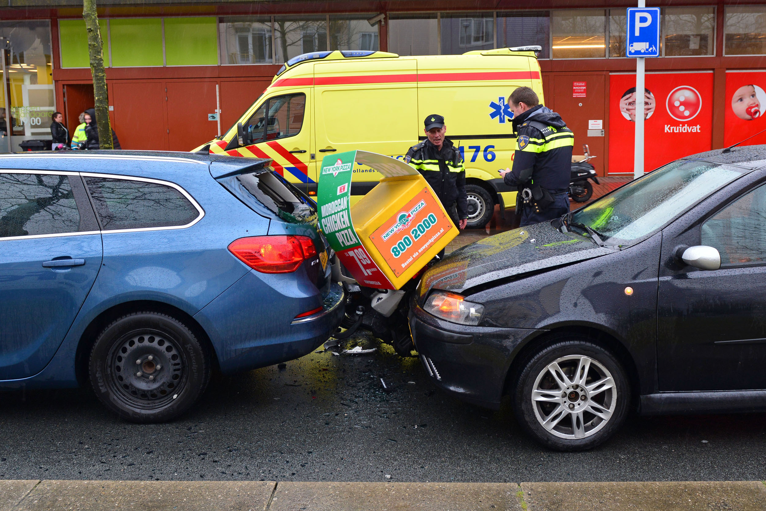 Een maaltijdbezorger is woensdag aan het einde van de middag gesandwiched tussen twee auto’s en door de achterruit van een van de auto’s gevlogen. Het ongeluk gebeurde op de Vijf Meilaan in Leiden, die daardoor enige tijd moest worden afgesloten. Het slachtoffer kwam zonder grote verwondingen vanaf.