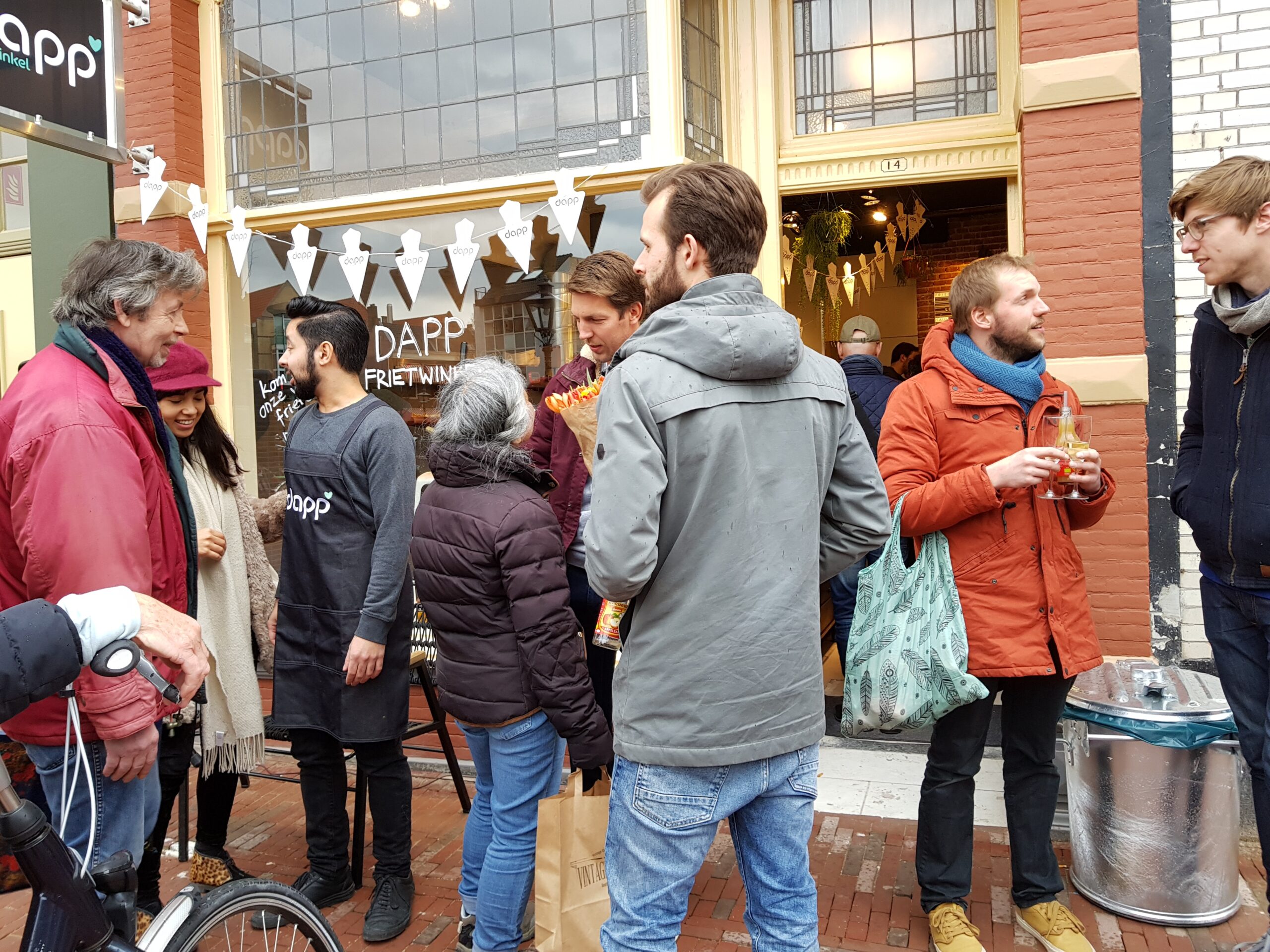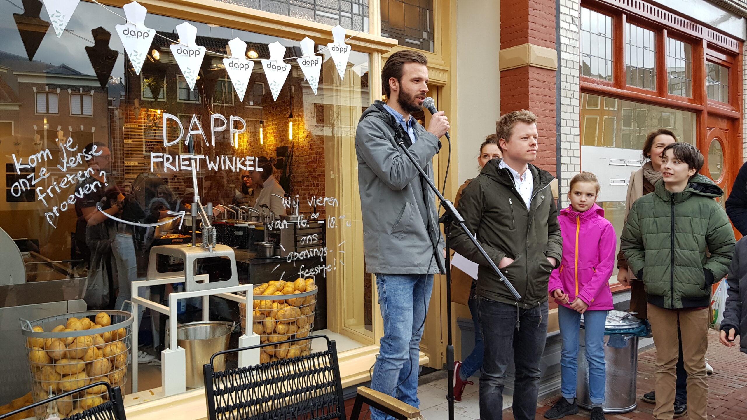 Zaterdagmiddag vond de officiële opening plaats van DAPP Frietwinkel aan de Aalmarkt. DAPP heeft inmiddels vier frietwinkels verspreid over ons land. Breda, Utrecht en Zwolle gingen Leiden voor.