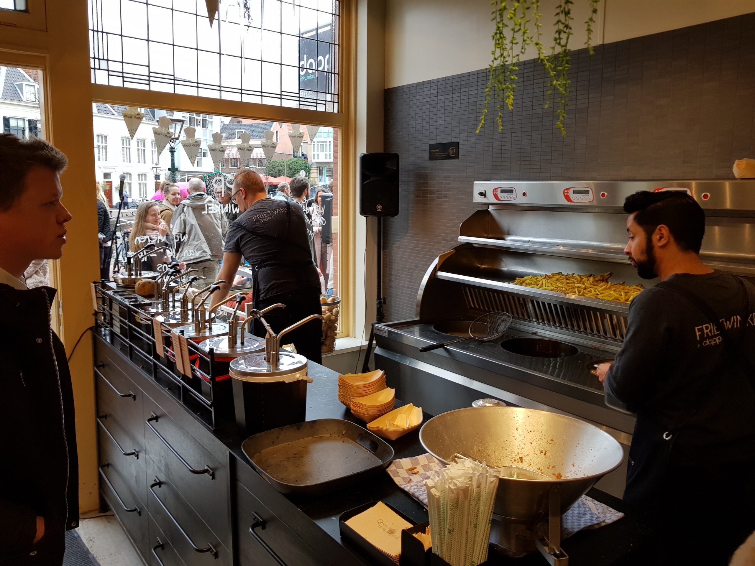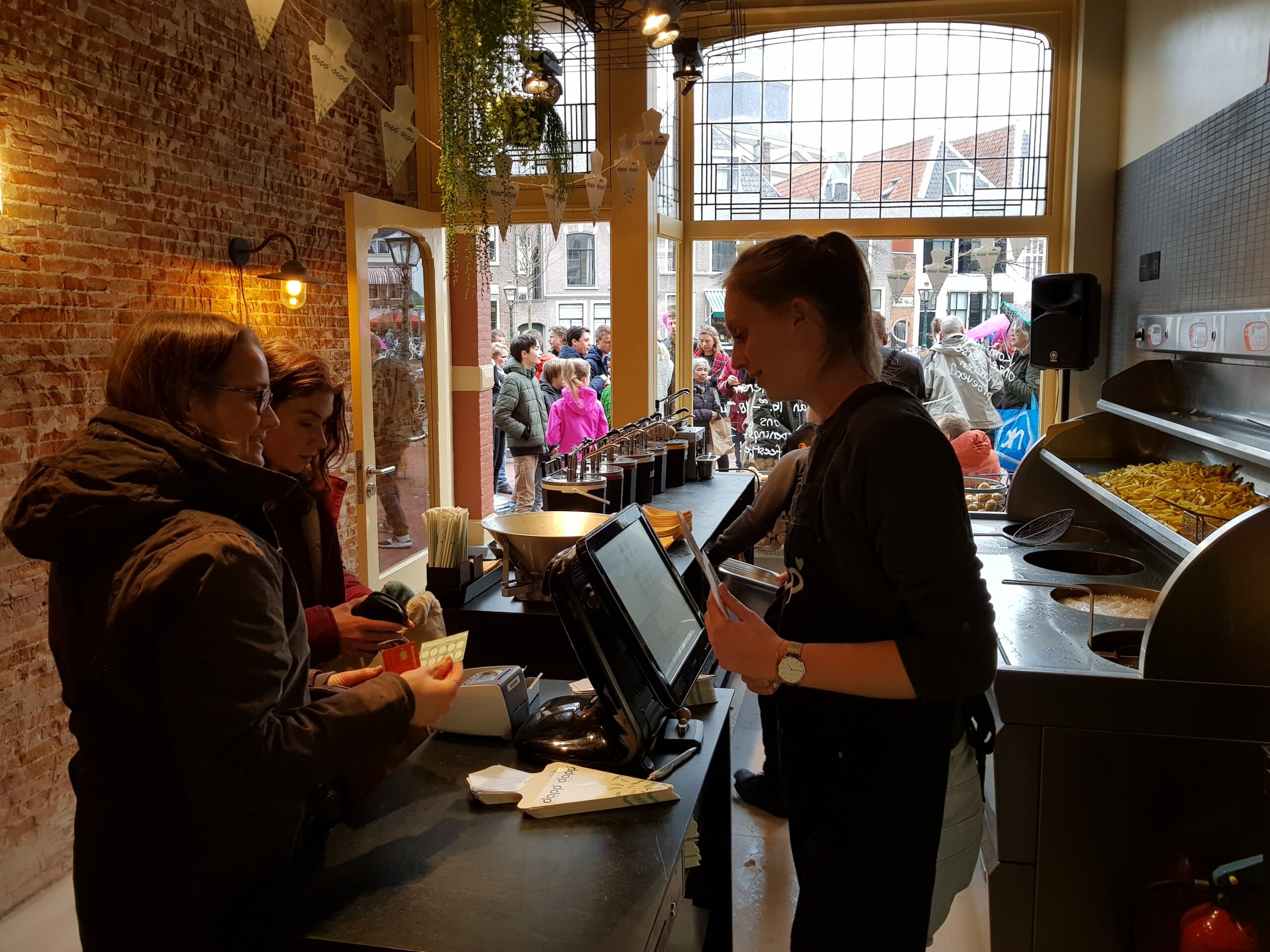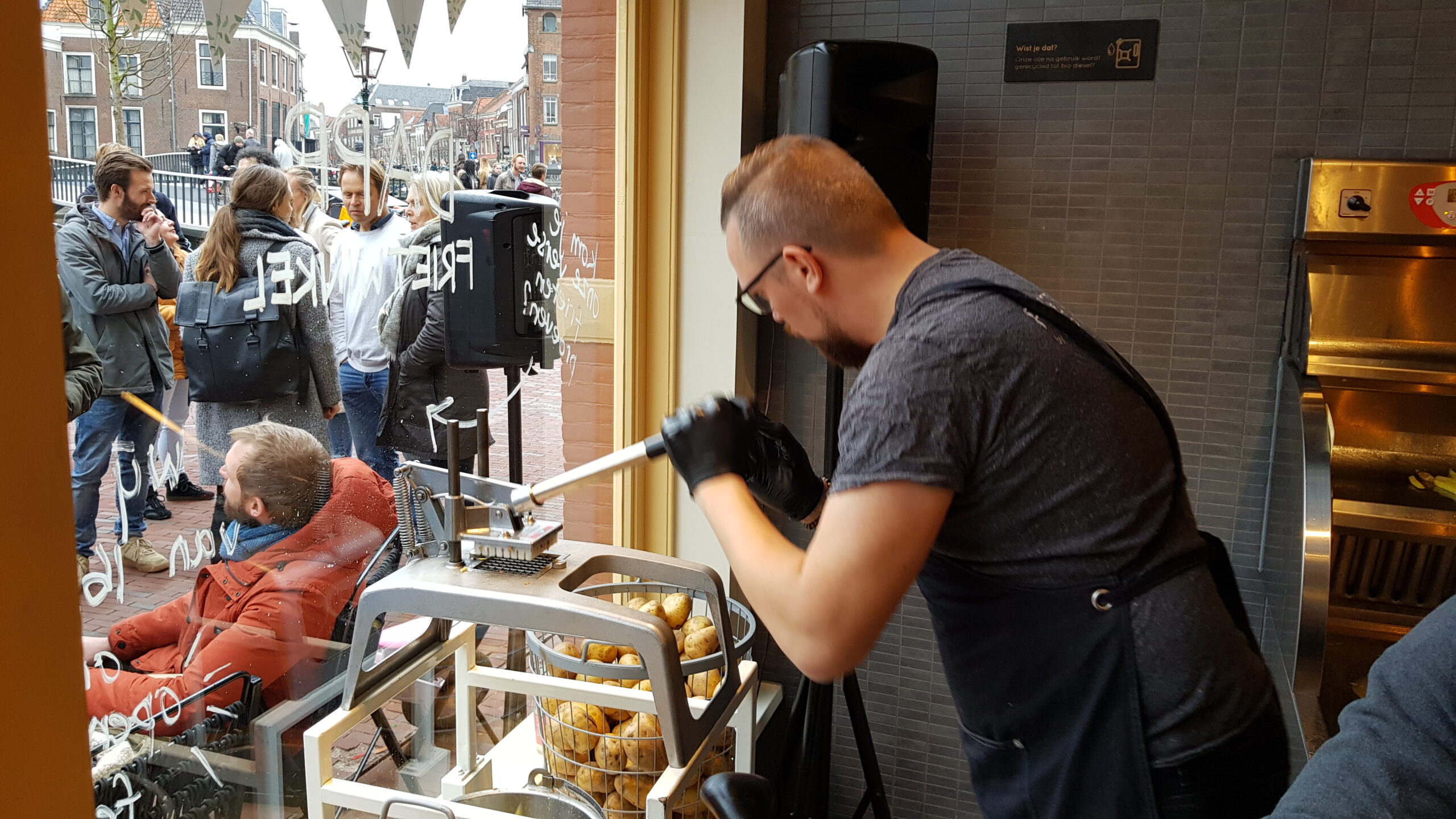 Naast biofriet bieden de eigenaren Siem van Bruggen en Roderick Heijning in hun nieuwste zaak ook ruimte aan culturele uitingen. Muzikanten, maar bijvoorbeeld ook dichters. Daarom heeft het duo er inmiddels een traditie van gemaakt om hun nieuwe vestigingen te laten openen door de plaatselijke stadsdichter. In Leiden is dat Marianne van Velzen die eind januari het stokje overnam van Wouter Ydema.