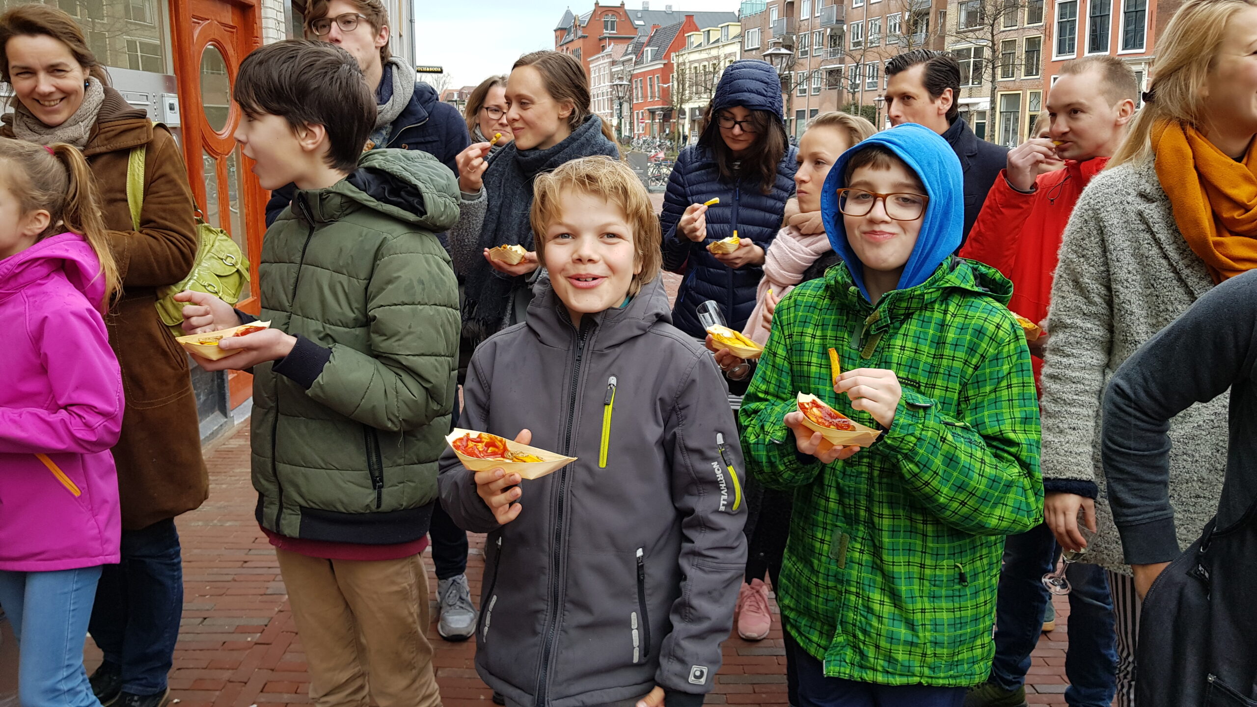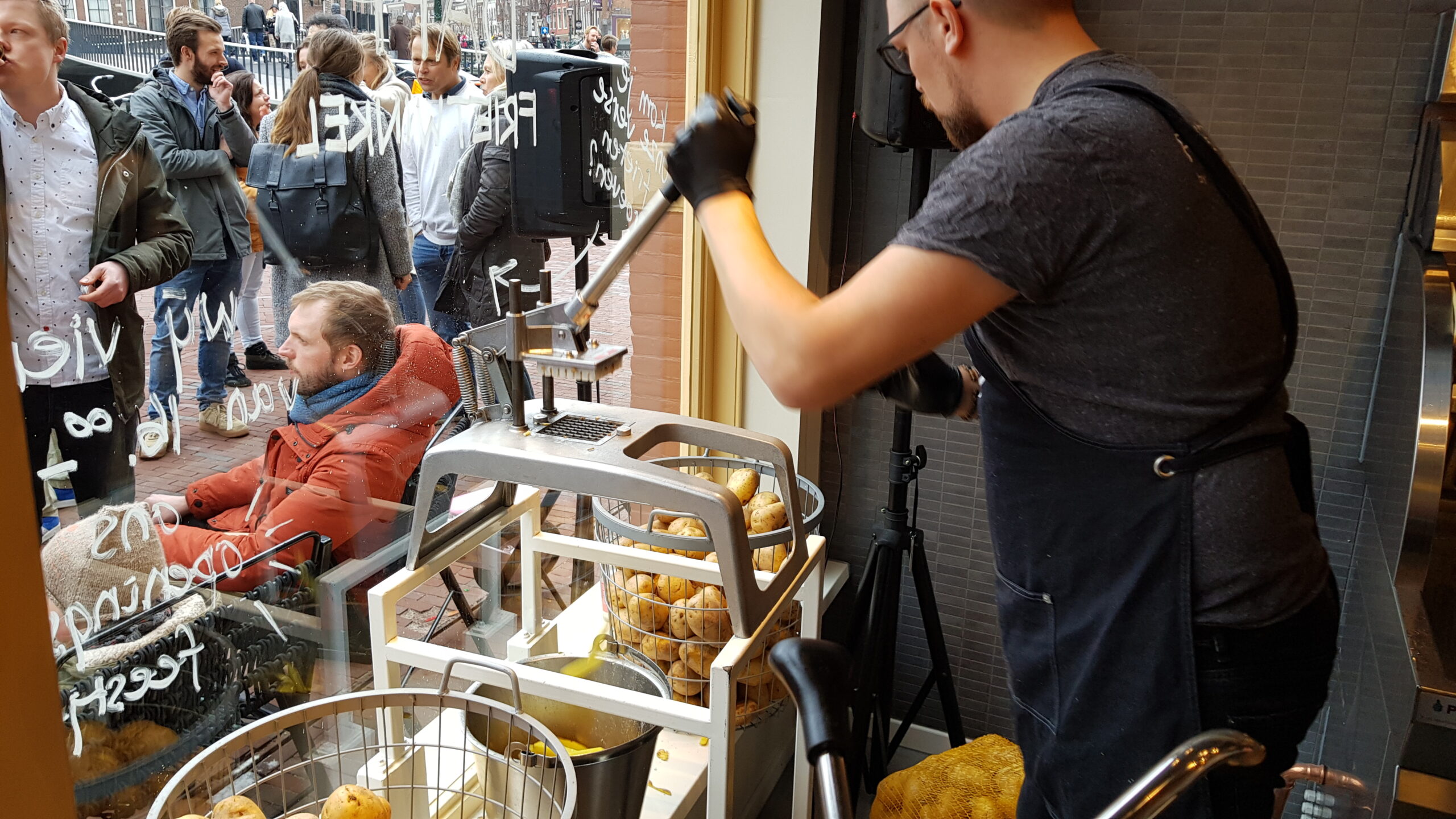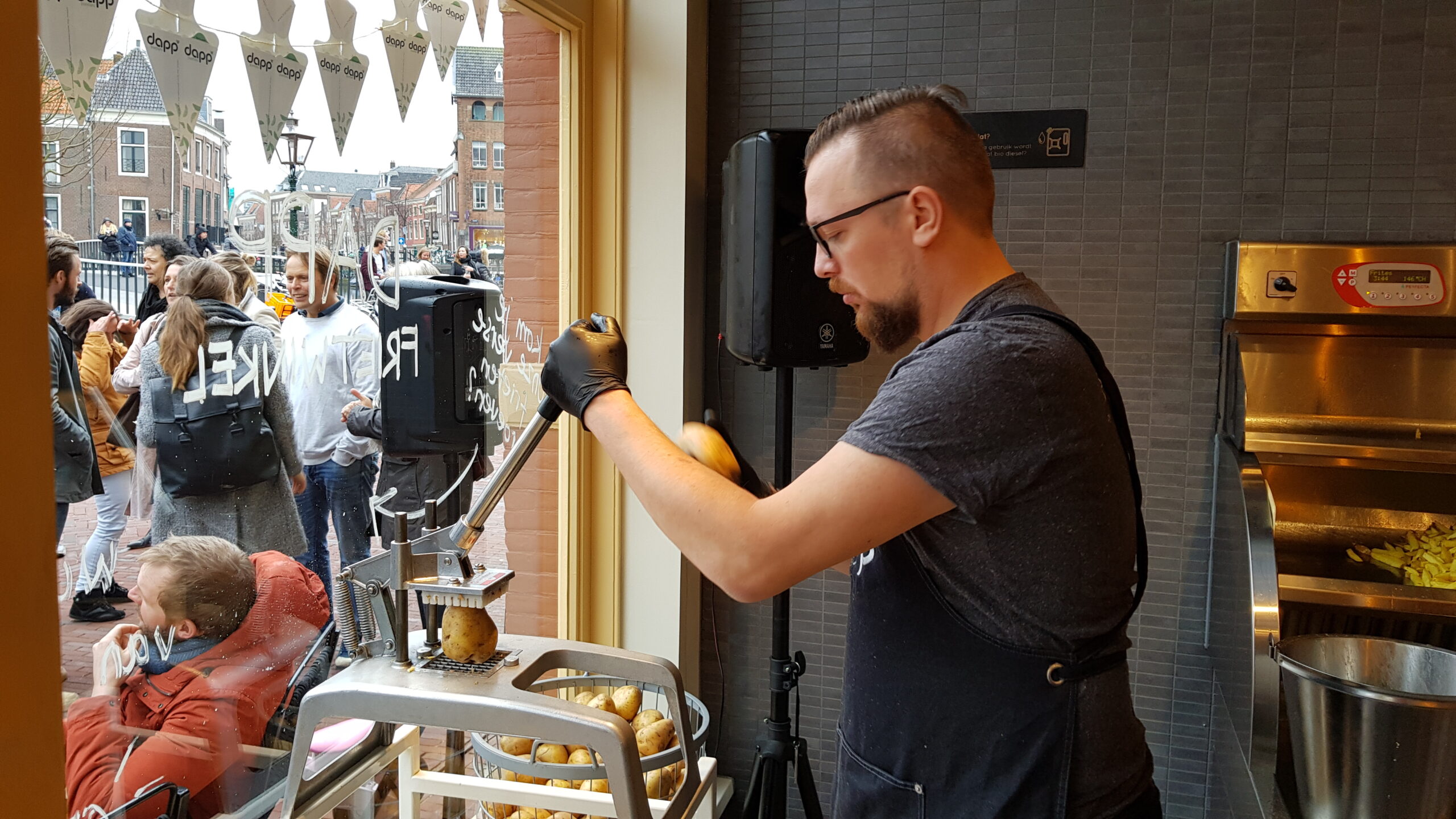 Naast biofriet bieden de eigenaren Siem van Bruggen en Roderick Heijning in hun nieuwste zaak ook ruimte aan culturele uitingen. Muzikanten, maar bijvoorbeeld ook dichters. Daarom heeft het duo er inmiddels een traditie van gemaakt om hun nieuwe vestigingen te laten openen door de plaatselijke stadsdichter. In Leiden is dat Marianne van Velzen die eind januari het stokje overnam van Wouter Ydema.