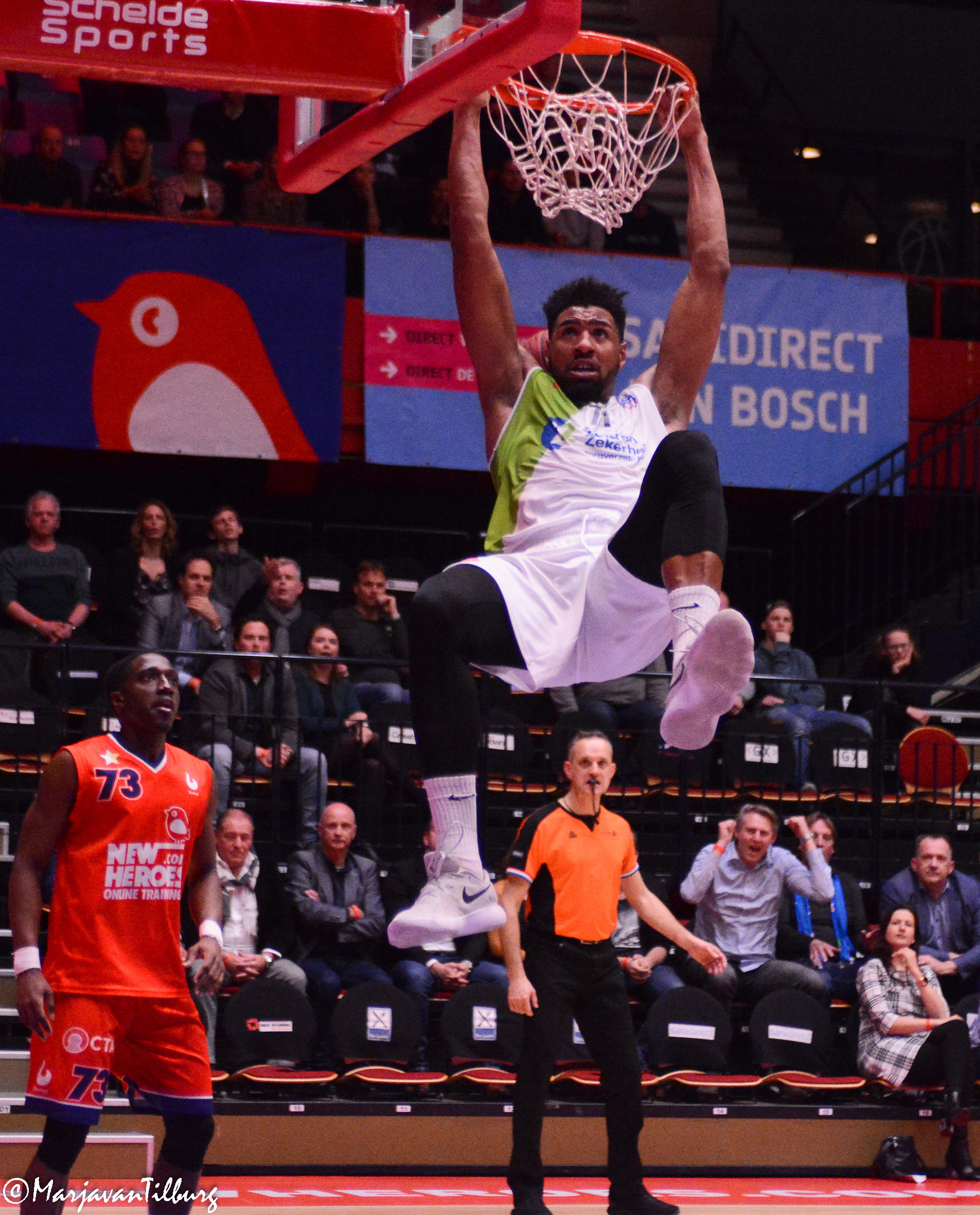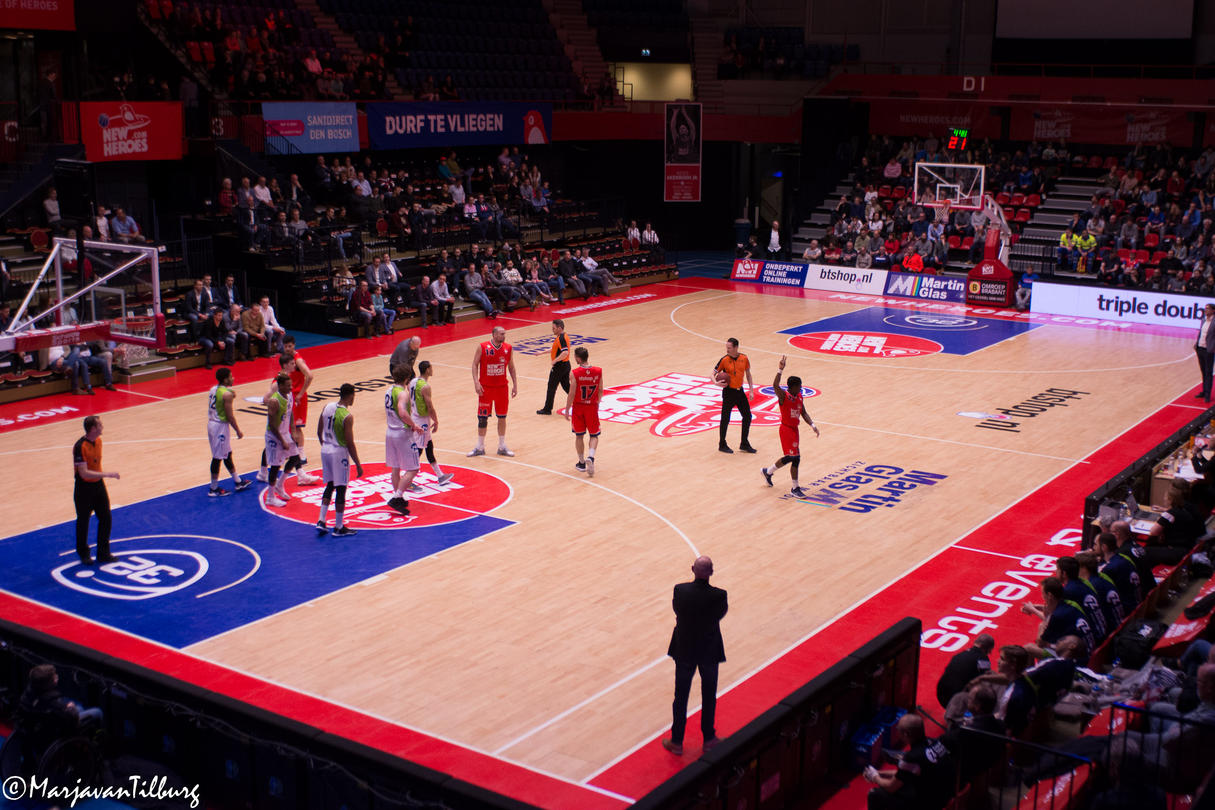 Twaalf was een belangrijk getal, want daarmee was het verschil in onderlinge resultaten totaal gelijk gekomen. Als New Heroes met meer dan twaalf punten verschil zou winnen, dan was de tiebreaker bij gelijk eindigen voor de Bosschenaren. Reden voor Paul Vervaeck om met nog twee minuten te gaan een time-out te nemen. Met succes, want Clayton Vette benutte een vrije worp en Mohamed Kherrazi (goed voor een season-high van 22 punten) dunkte ook nog even flink hard raak voor 83-74. Vervolgens kwam Clayton Vette door met eerst een rake vrije worp en daarna nog een and-1, waardoor het met nog 35 seconden te gaan 83-78 was geworden. Dat Keshun Sherrill er in de laatste aanval nog 86-78 van maakte, was voer voor de statistici, maar had geen gevolgen meer voor de tiebreaker.
