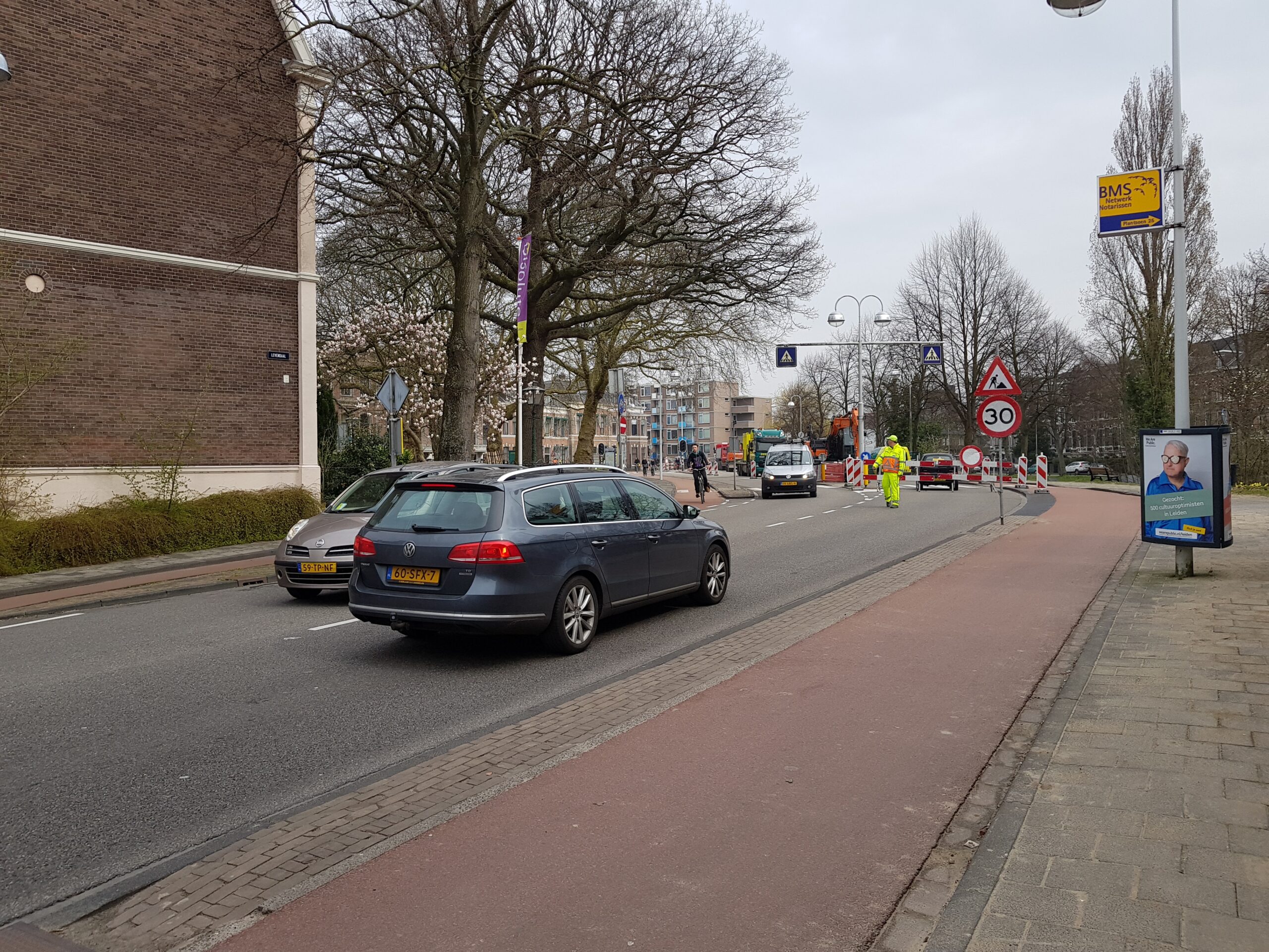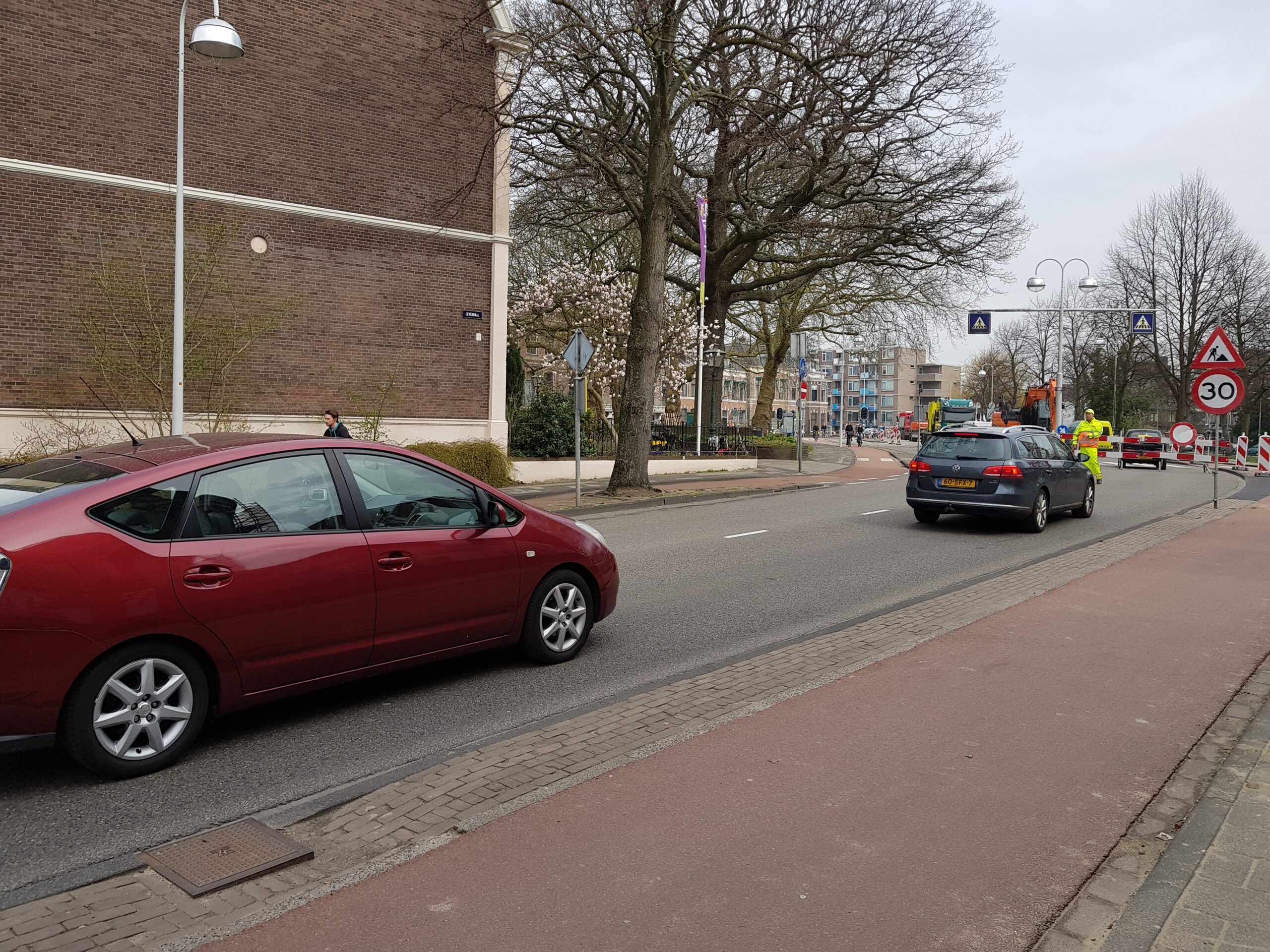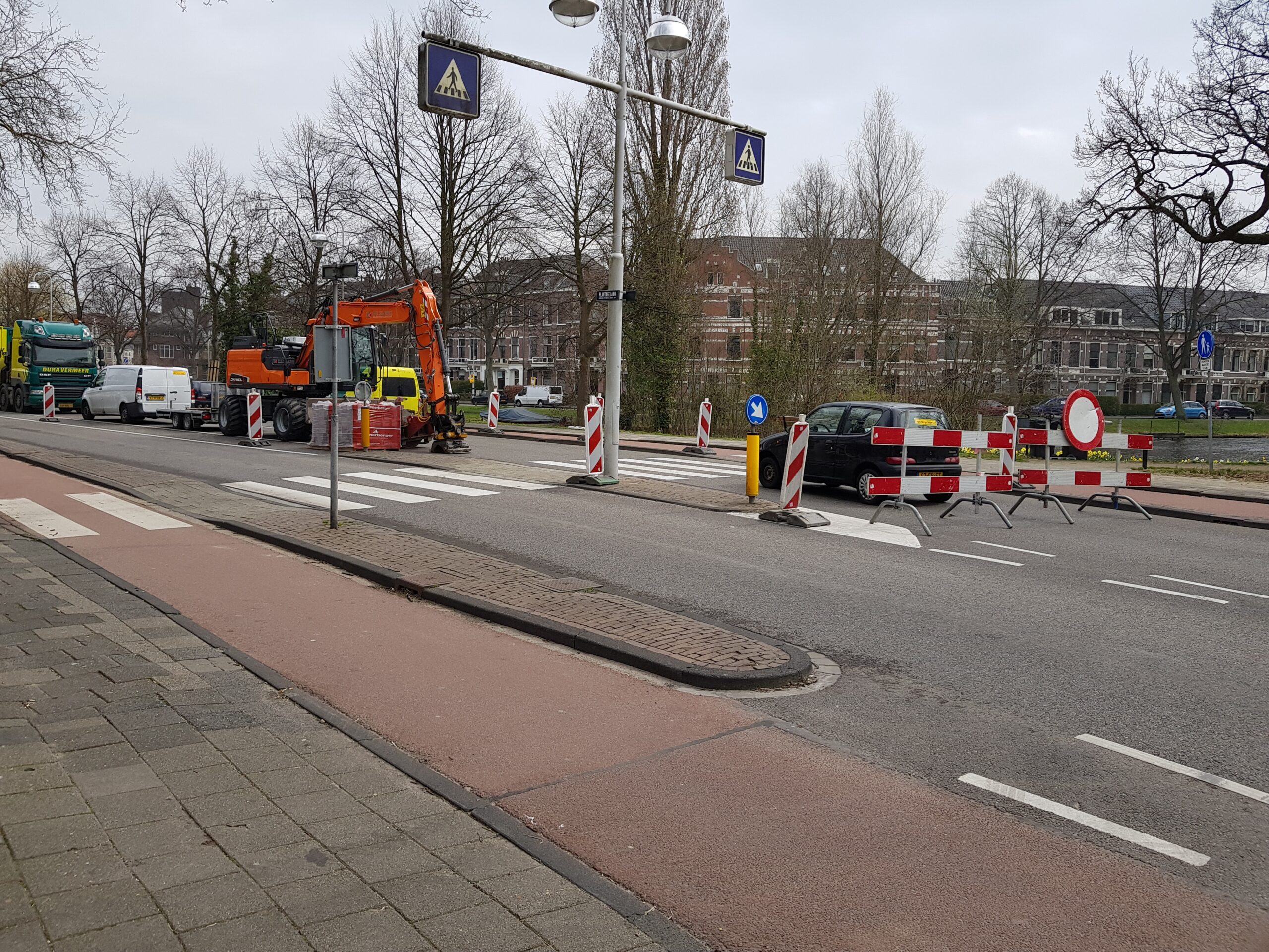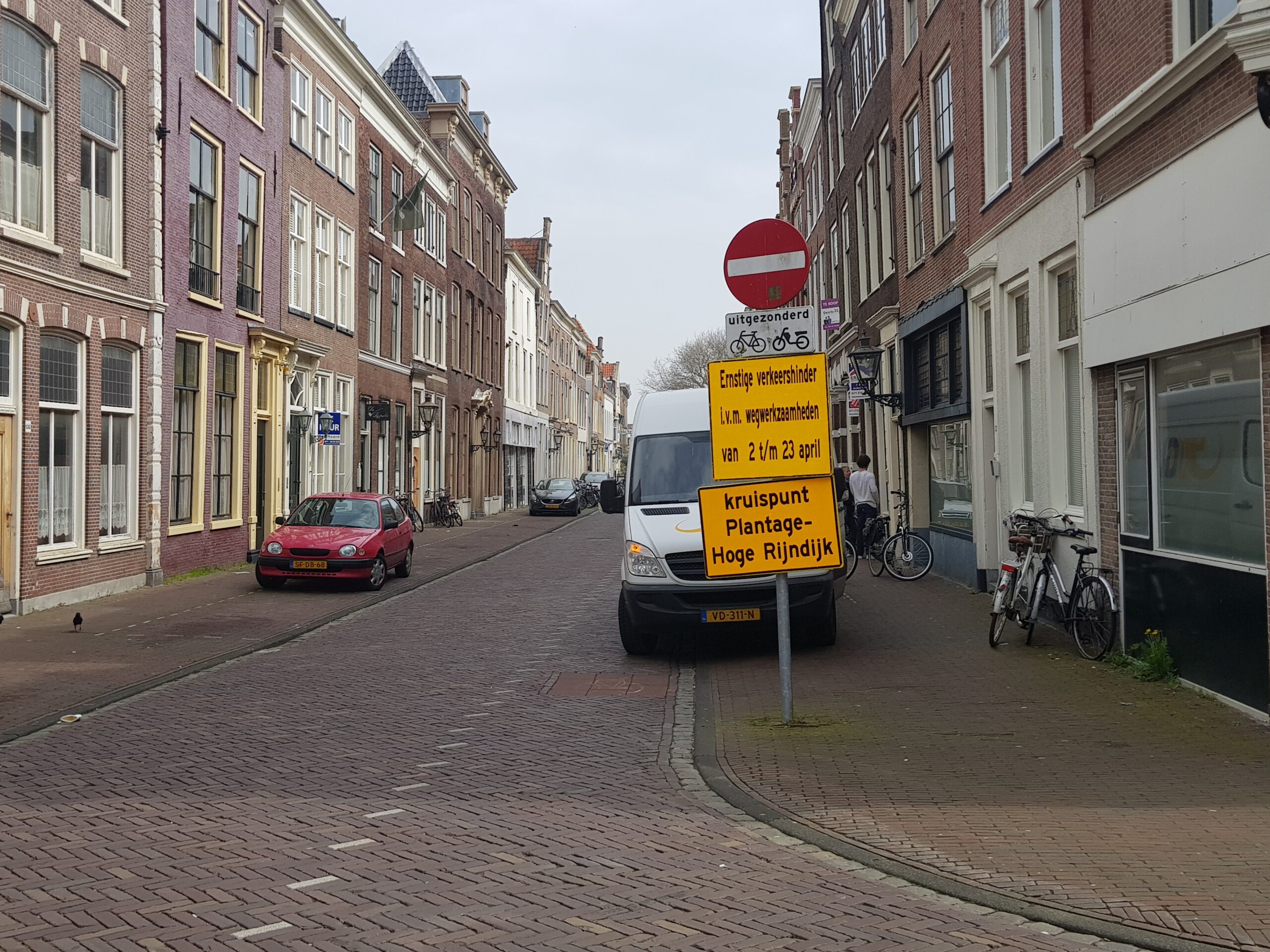Dat de werkzaamheden tot overlast zouden leiden, was wel voorzien, maar het ging vandaag aan het einde van de middag wel erg mis op de weg. Het verkeer aan de oostkant van het centrum liep compleet vast. Verkeer dat vanaf de Sint Jorissteeg linksaf het Levendaal oprijdt, komt er pas ter hoogte van het Plantsoen achter dat de weg daar is afgesloten. Rechtdoor de Hoge Rijndijk op kan niet en ook via het Utrechtse Veer de Zijlsingel nemen, is tijdelijk geen optie. Ook daar is de weg opgebroken. Het autoverkeer kan alleen keren of rechtsaf het Plantsoen op rijden.