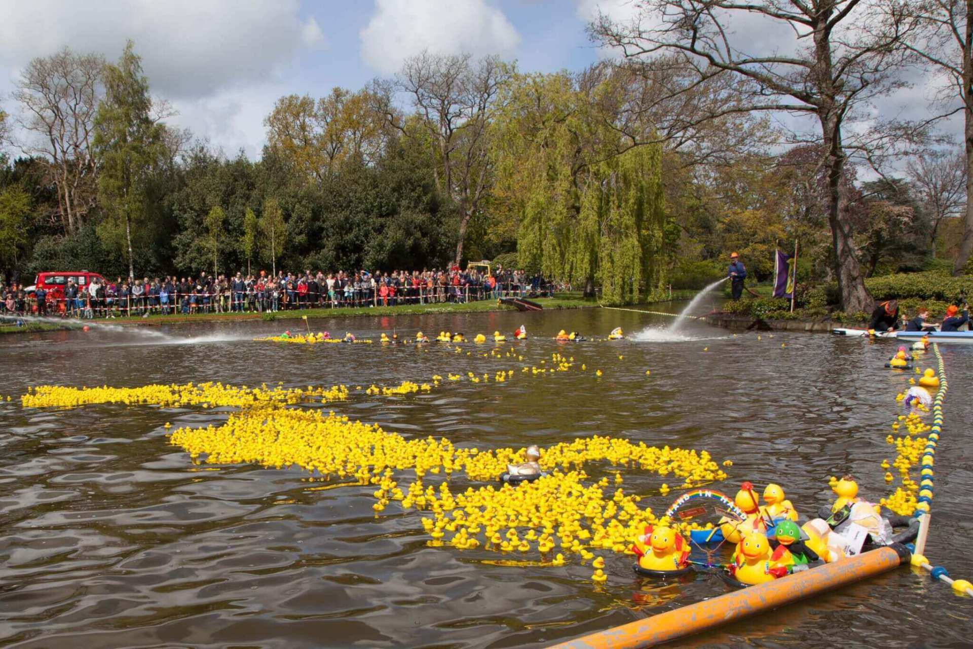 Nog tot 12.00 uur op Koningsdag kan iedereen één of meer race-eentjes kopen bij de Lions Voorschoten. Die organiseren op Koningsdag voor het derde jaar op rij een spectaculaire Eendjesrace in het Berkhoutpark in Voorschoten.