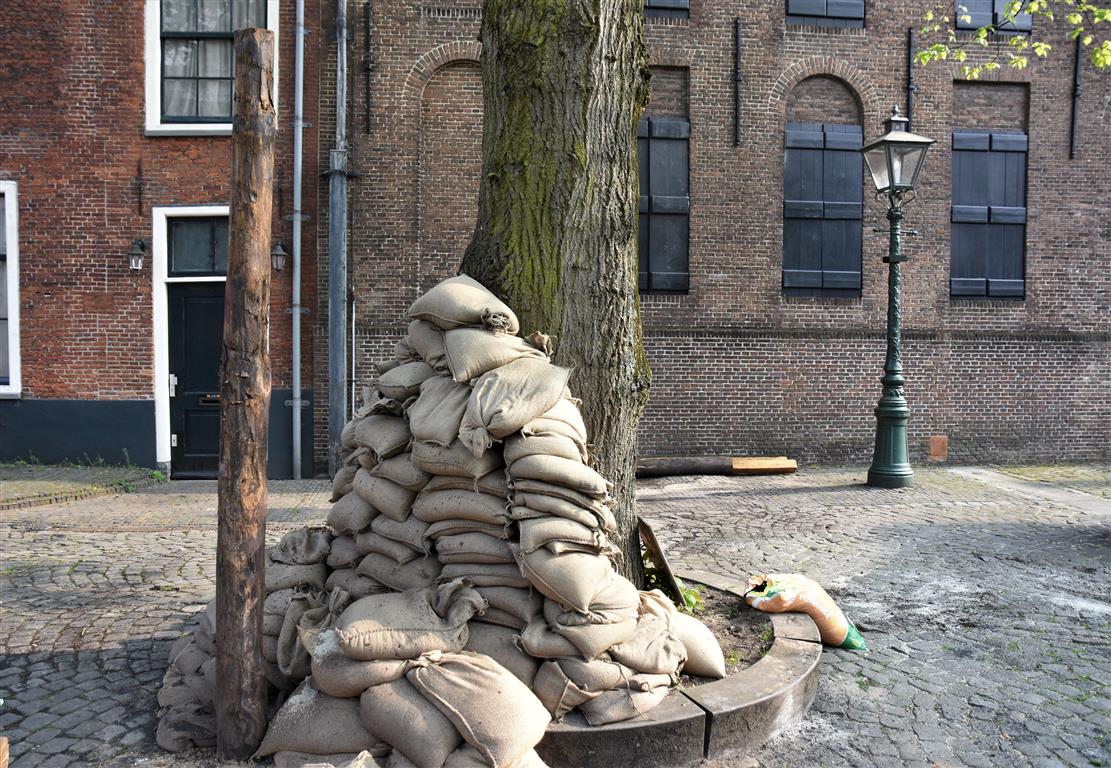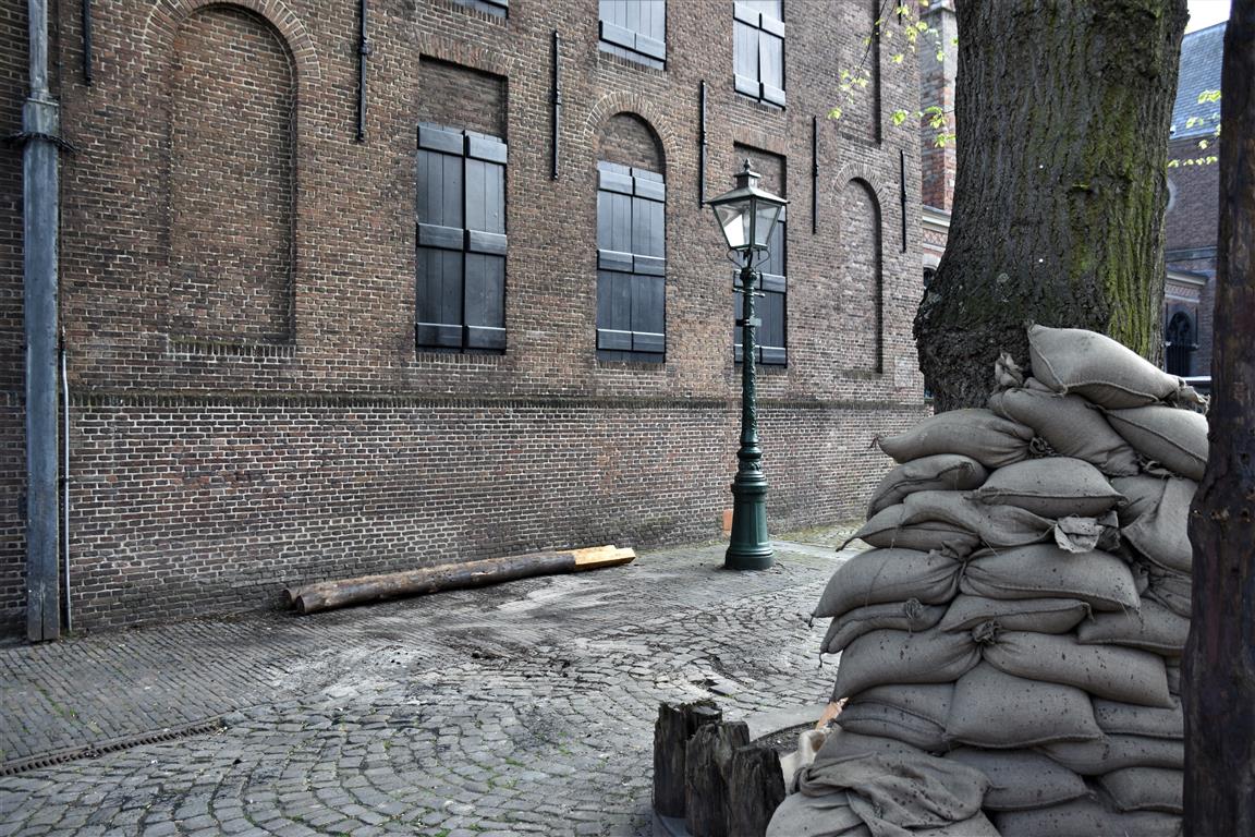 Op het Gerecht en het Pieterskerkplein waren meerdere panden teruggebracht naar de tijd van 1945. Zo werden de deuren van de Pieterskerk en de luiken van het Gravensteen aan het Gerecht zwart geschilderd en waren diverse huizen met houten schotten dichtgetimmerd. Op het Pieterskerkplein stonden vervoermiddelen zoals onder andere: een kruiwagen, handkarren, fietsen met houten banden, en een kinderwagen.