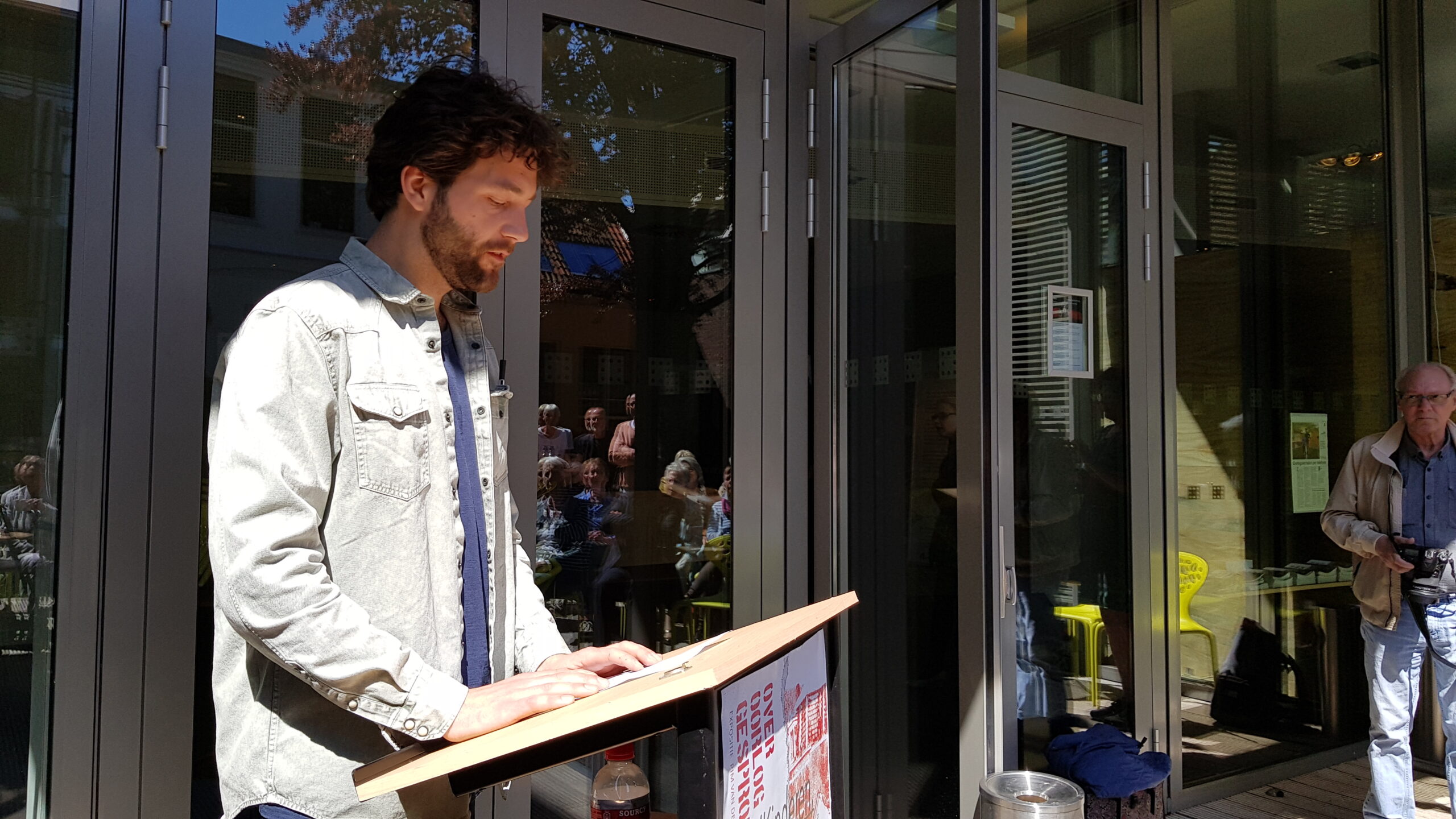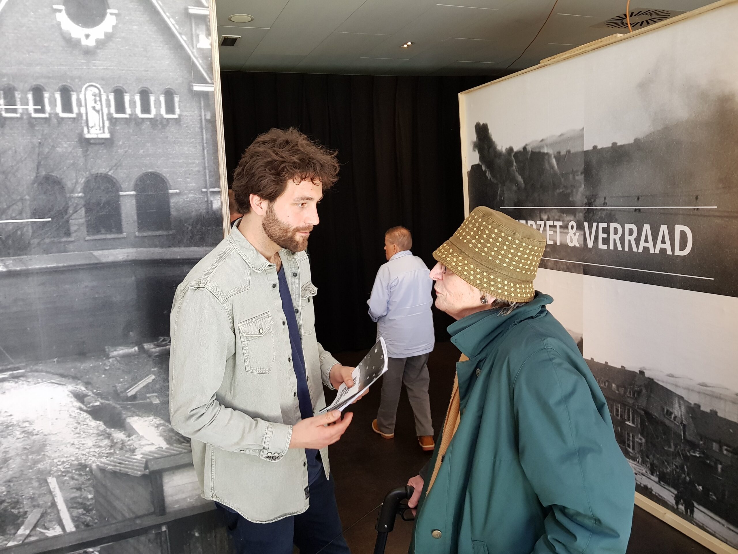 Chris de Waard in gesprek met Pim van der Heiden die de expositie ‘Over Oorlog gesproken’ samenstelde aan de hand van persoonlijke verhalen die hij opnam met Leidenaren die de Tweede Wereldoorlog hebben meegemaakt.