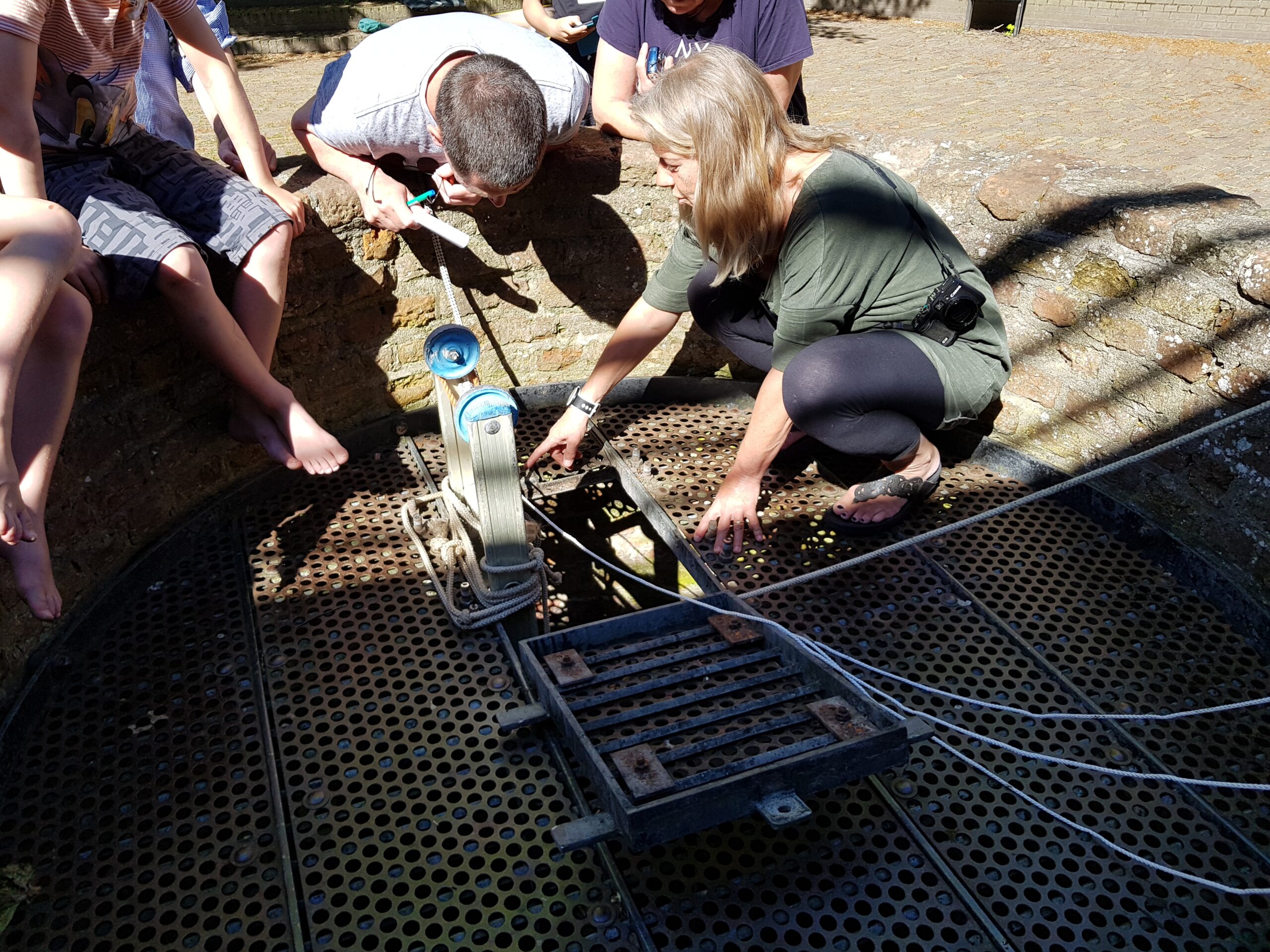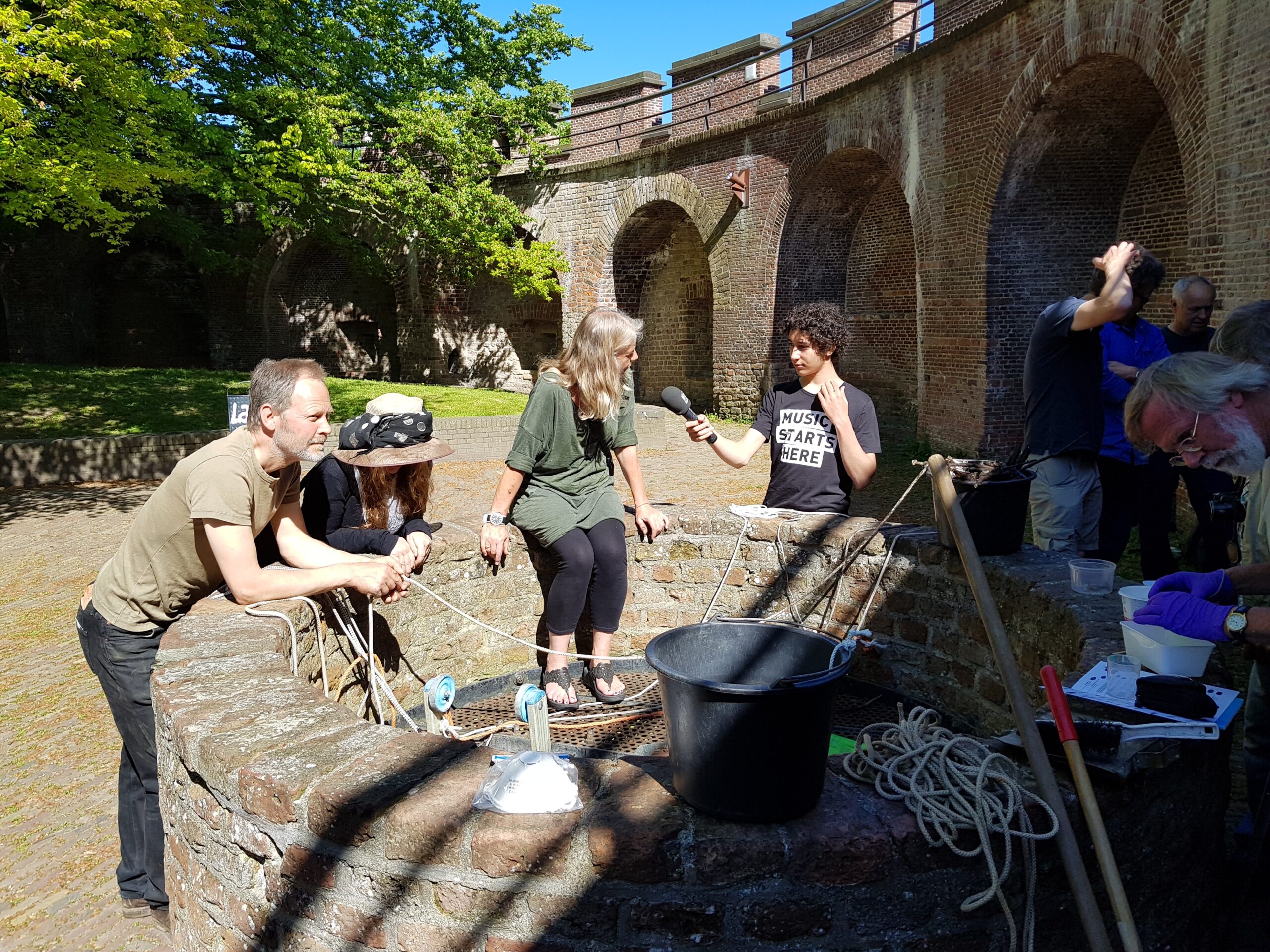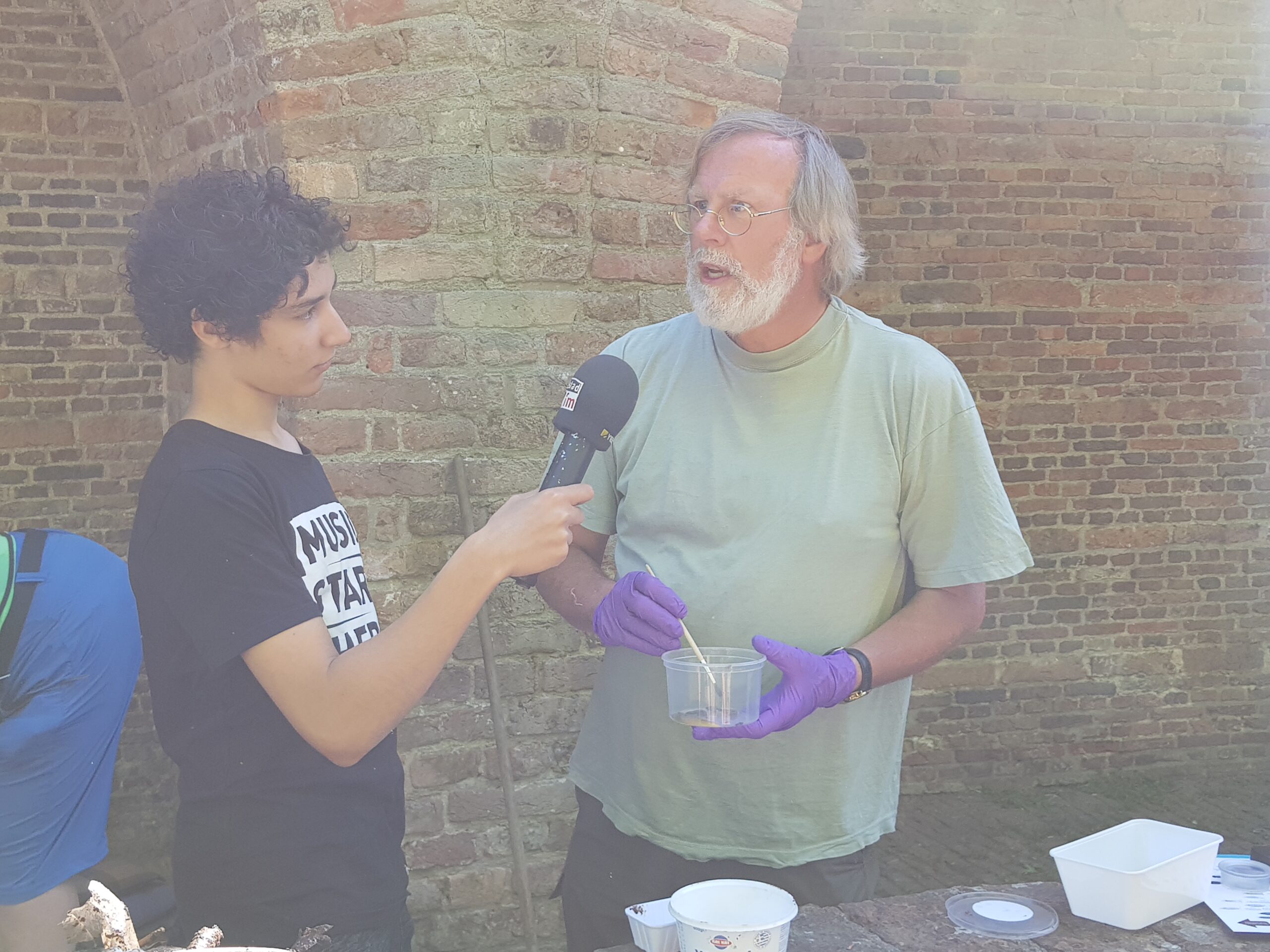 Annan Verboom in gesprek met IVN-gids Gerard van der Klucht over de gevonden beestjes onderin de waterput
