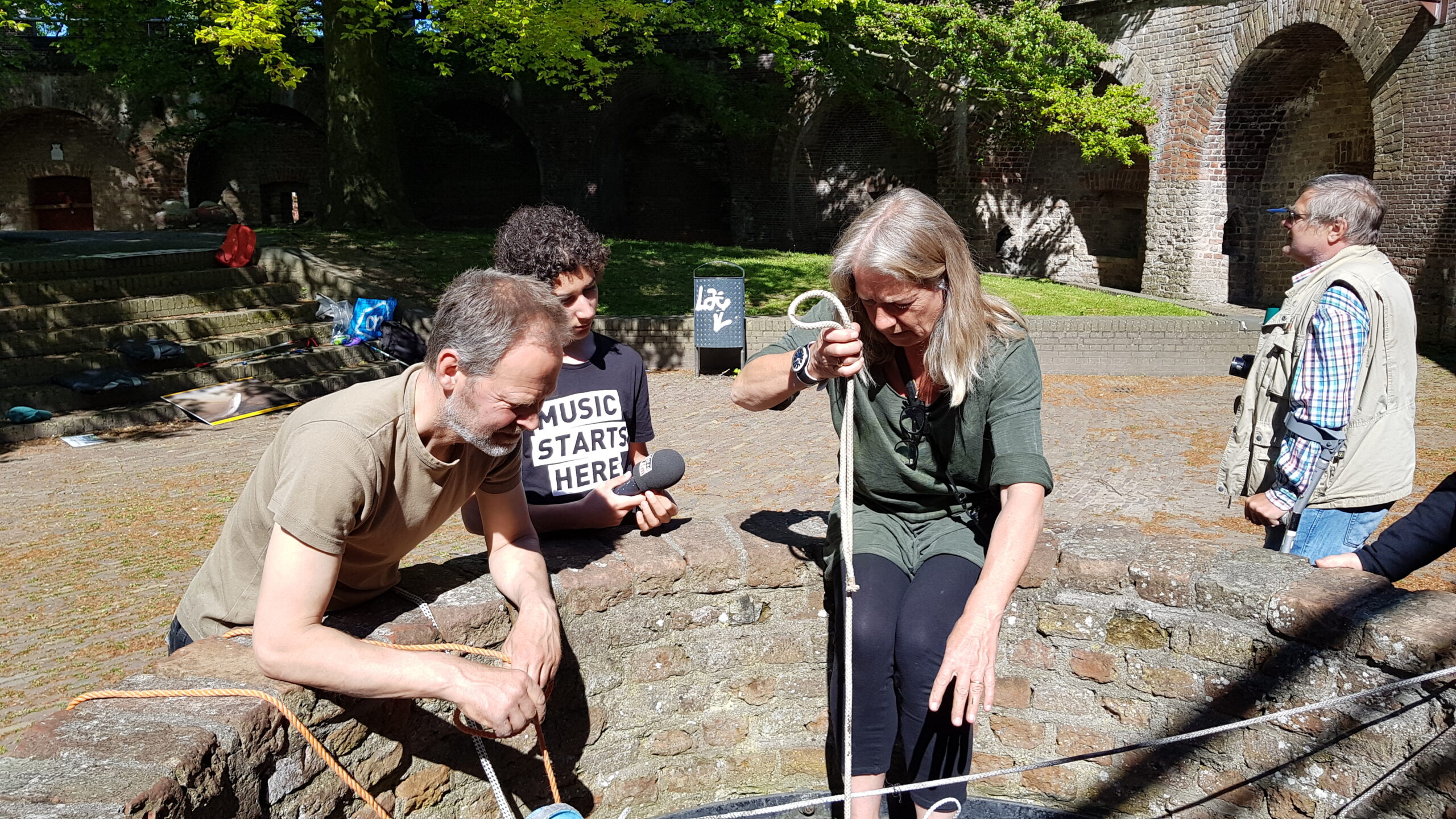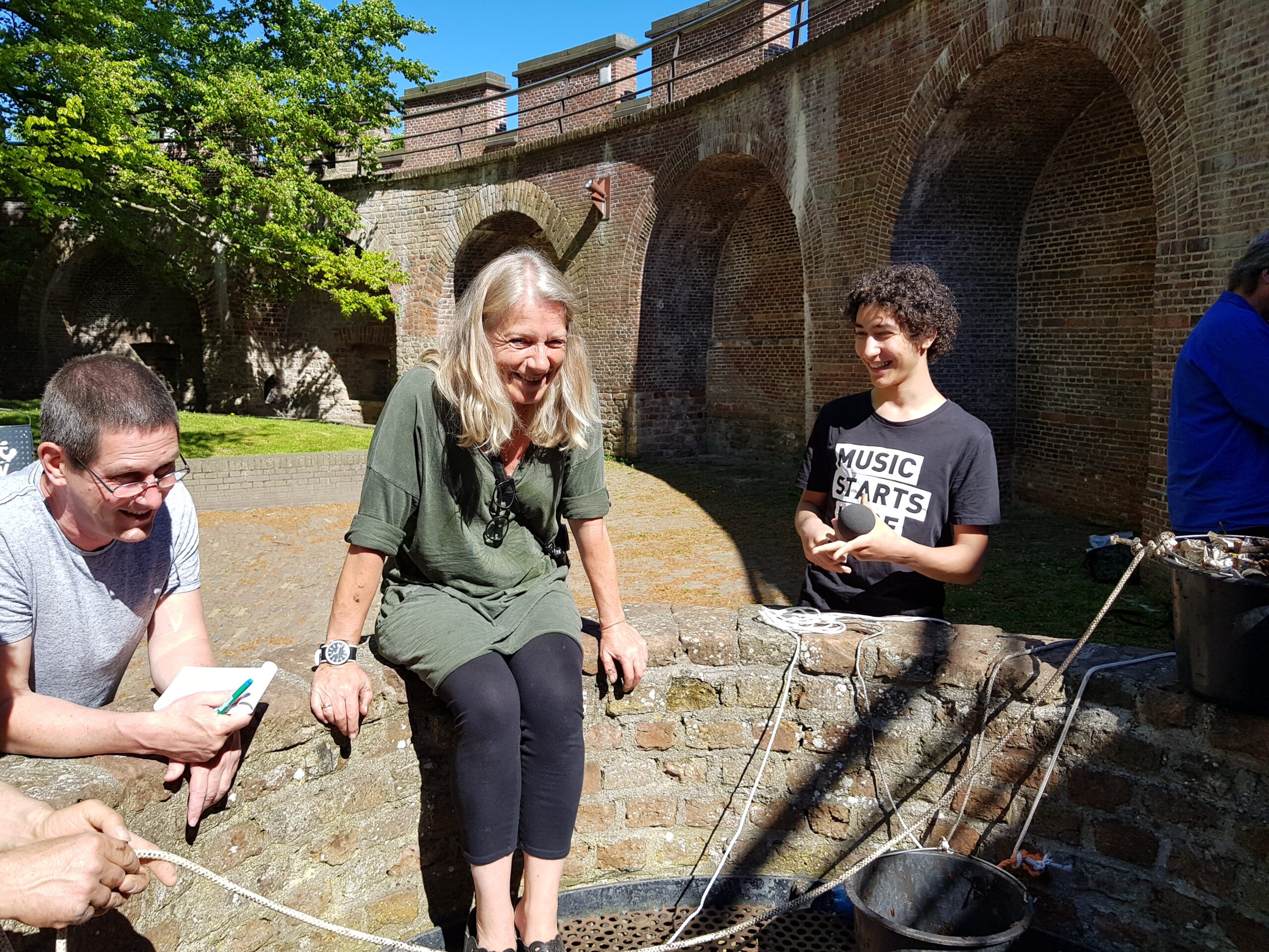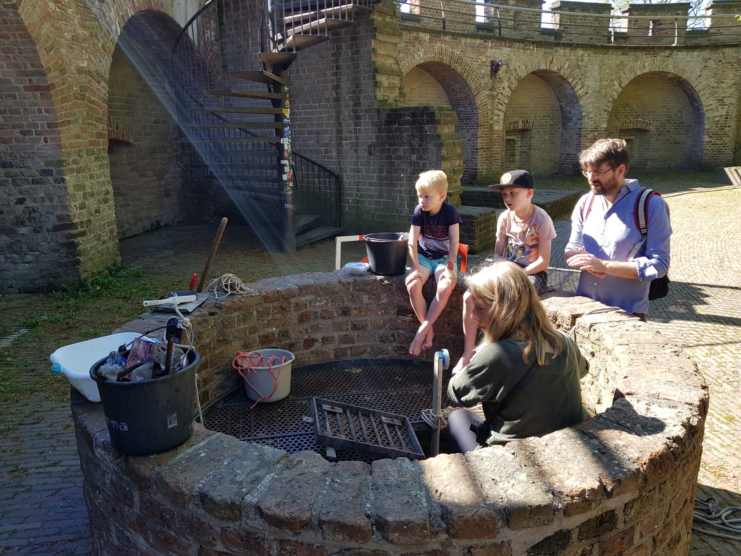 Annan Verboom in gesprek met IVN-gids Gerard van der Klucht over de gevonden beestjes onderin de waterput