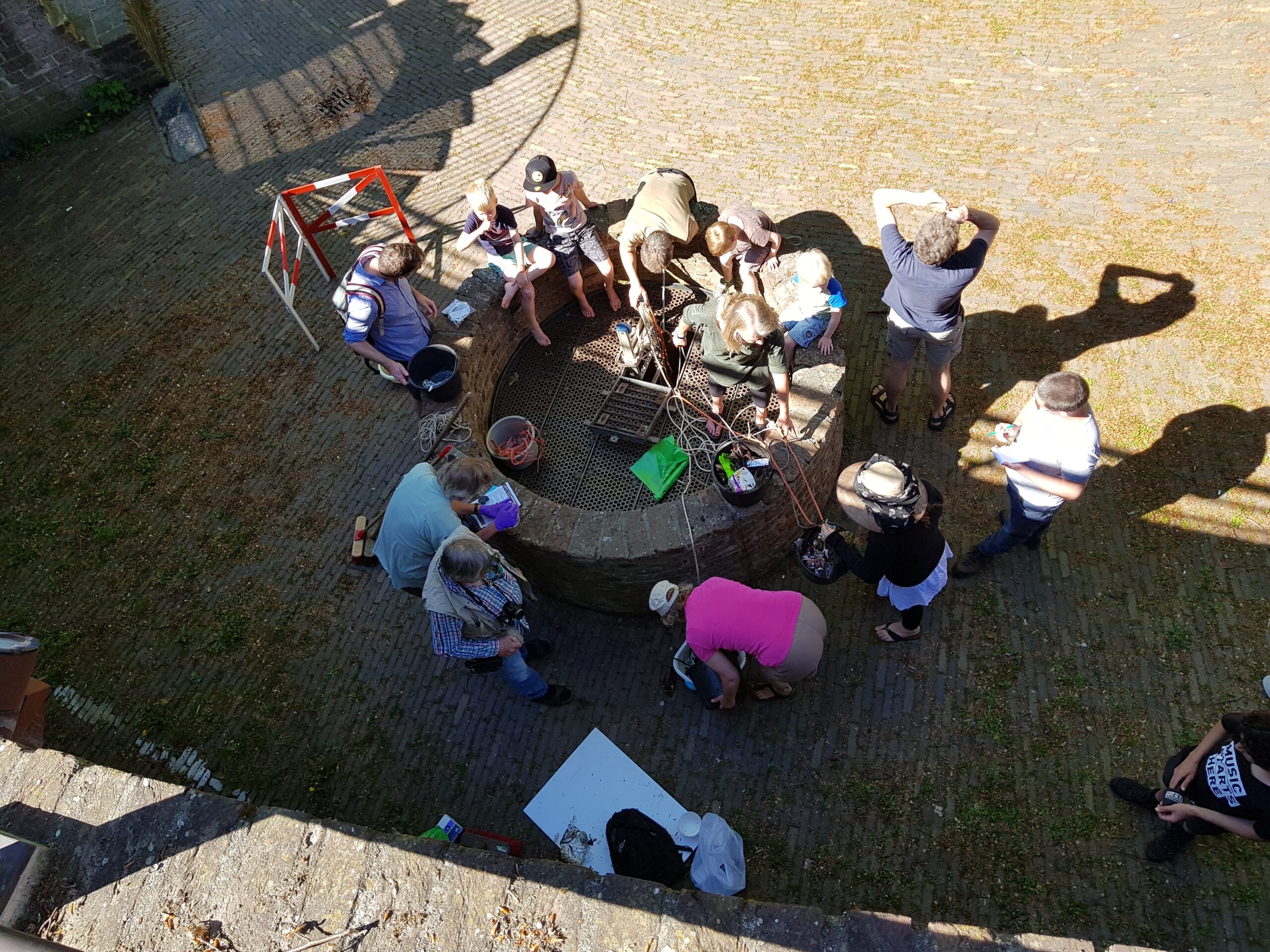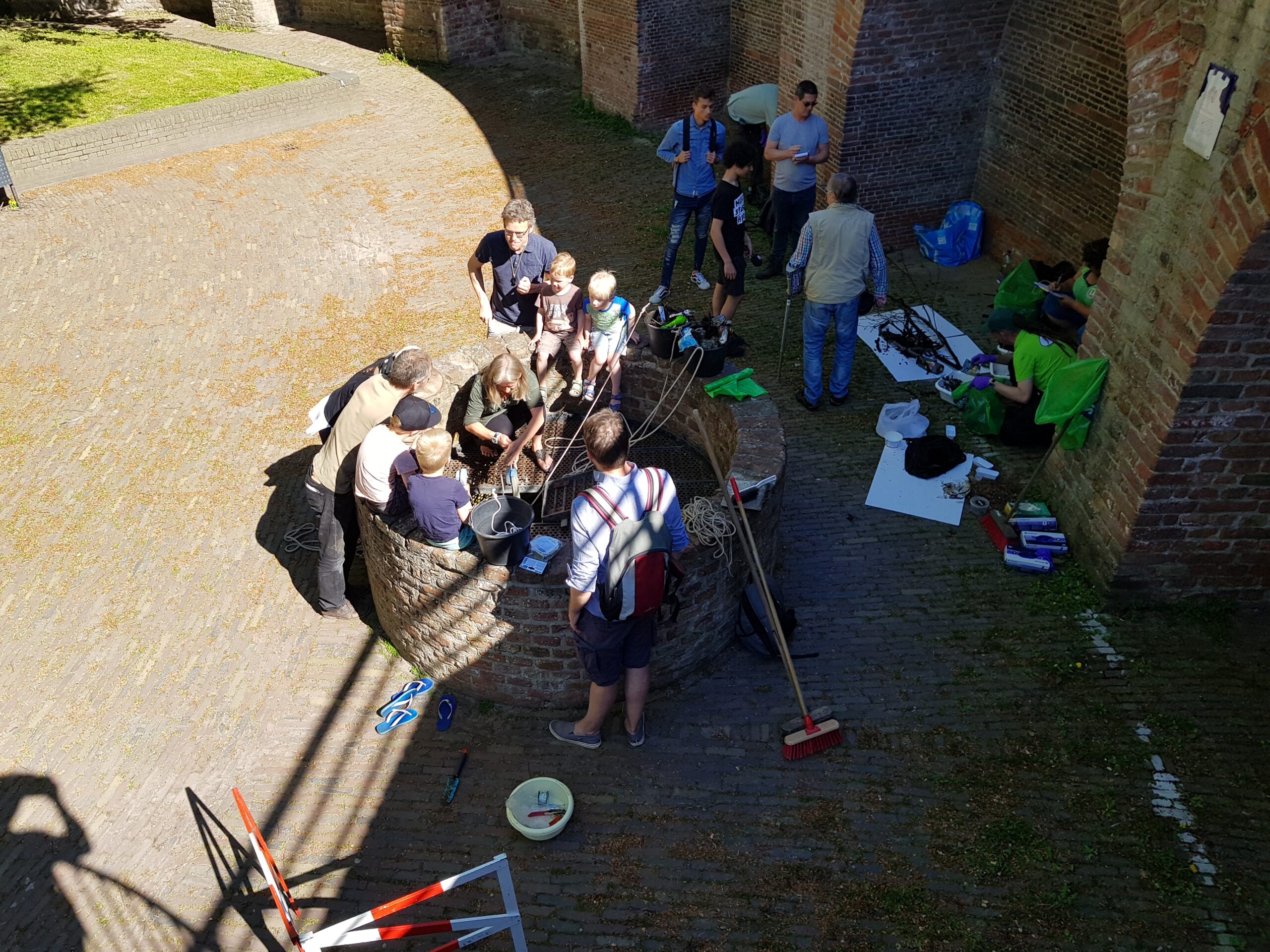 De organisatie ‘Onder water in Leiden’ onder leiding van grachtenadviseur van Aaf Verkade van de gemeente Leiden heeft vandaag een schoonmaakactie gehouden op de Burcht. Daarbij werd vooral de historische waterput grondig onderzocht. Alle rommel werd eruit gehaald en aangetroffen insecten werden gedetermineerd.