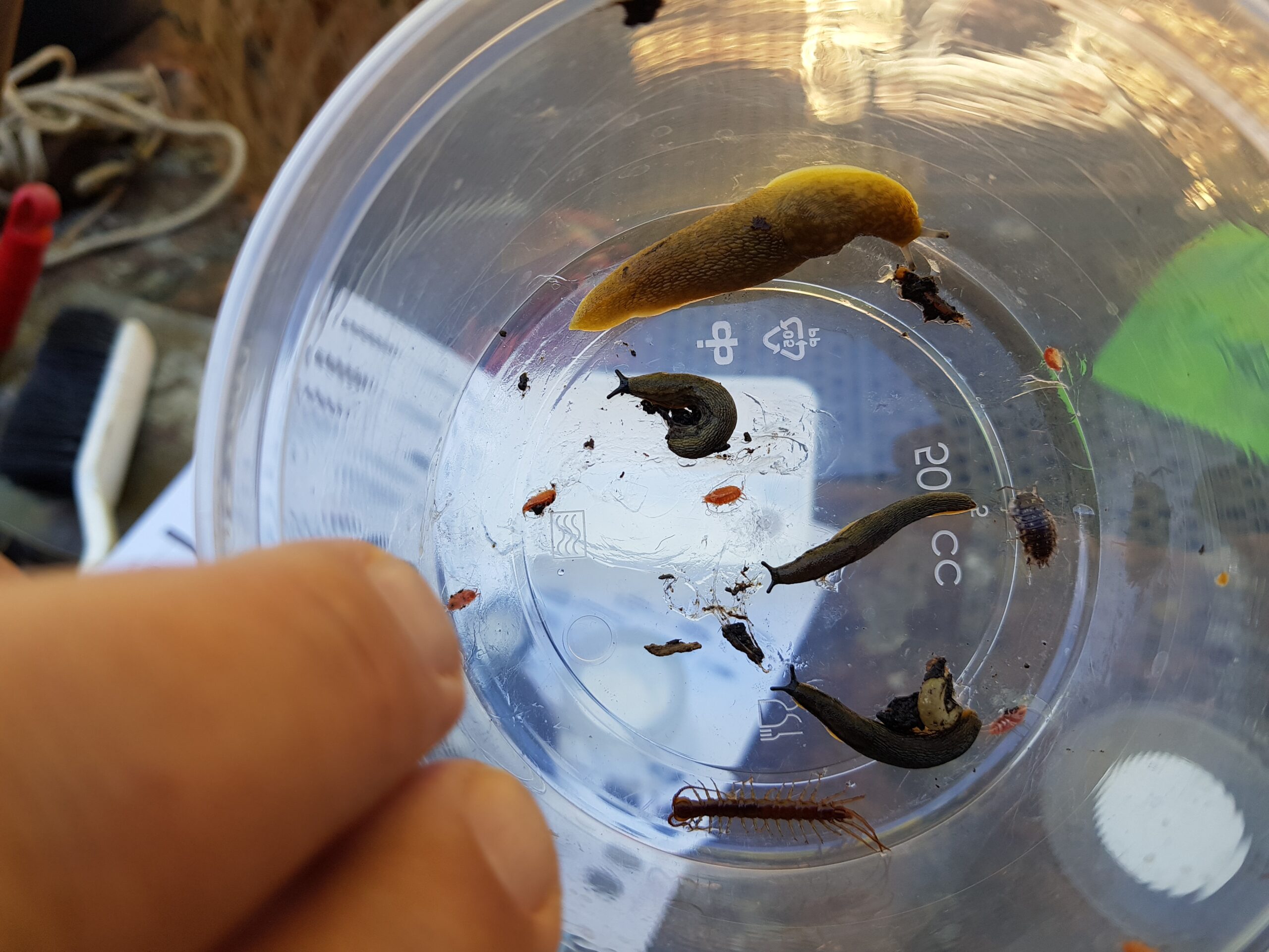 Verschillende kenners van het planten- en dierenleven kwamen kijken wat er zoal aan natuur te vinden is in en rond de Burcht. Ook het leven in de waterput kan interessante waarnemingen opleveren. IVN-gids Gerard van der Klucht noteerde secuur welke ongewervelde diertjes er vanuit de diepte omhoog kwamen en legde ze allemaal vast op de foto. Een grote steenloper, kelderpissebedden, juweeltjes, dat zijn roze pissebedjes en allerlei slakjes en wormpjes.