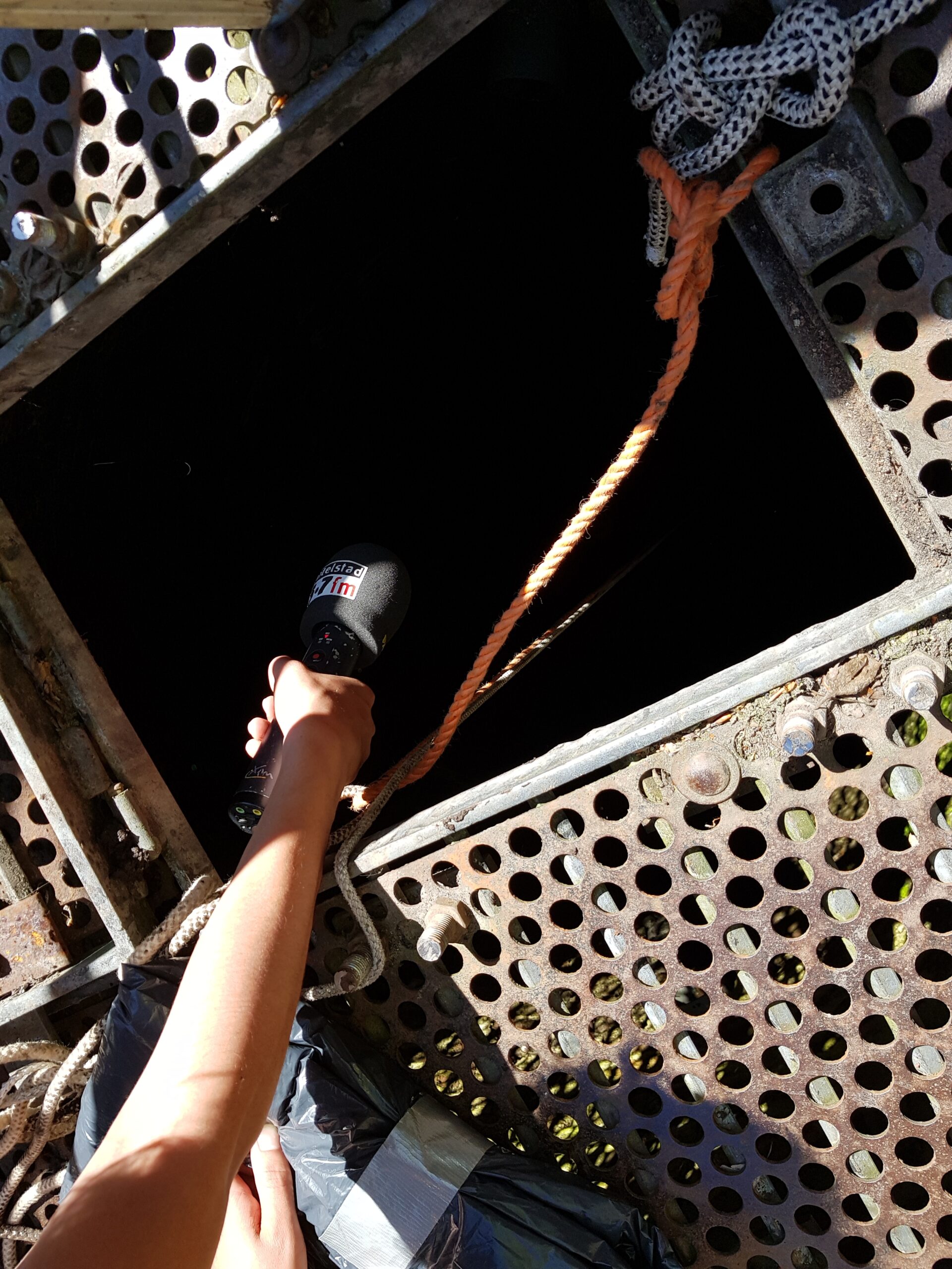 Annan Verboom in gesprek met Daniel Siepman die 6.80 meter diep op de bodem van de waterput stond.