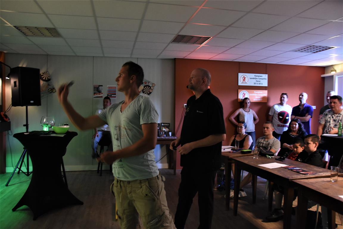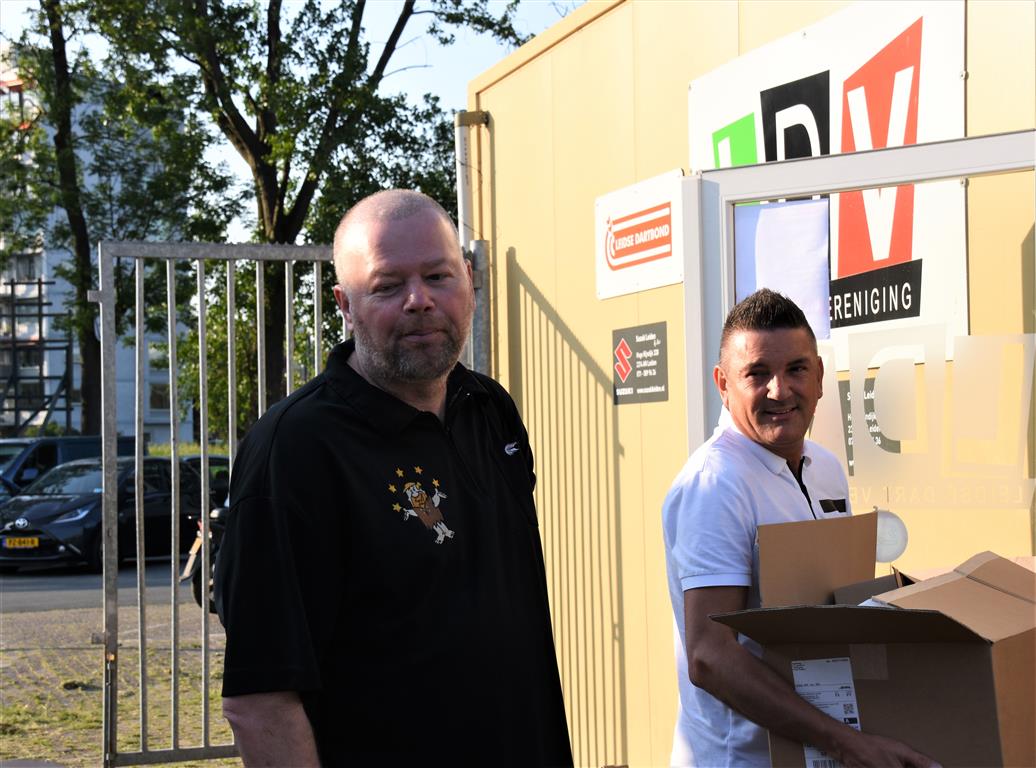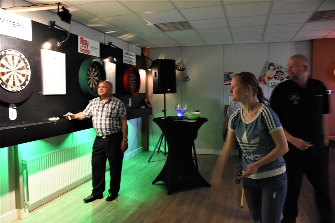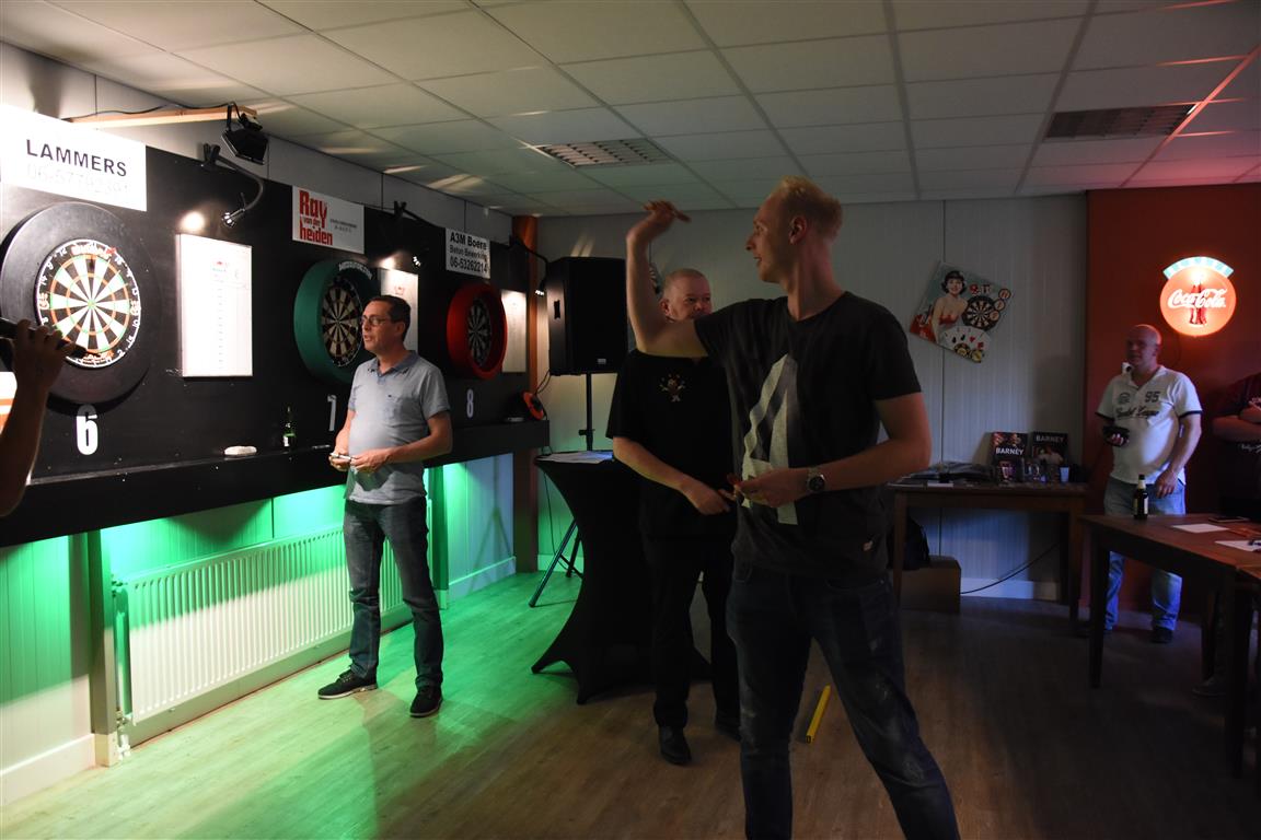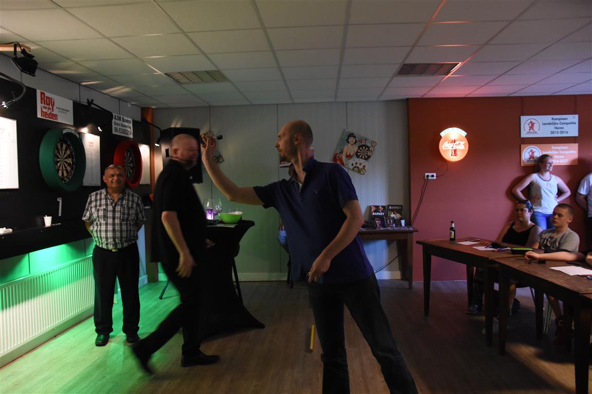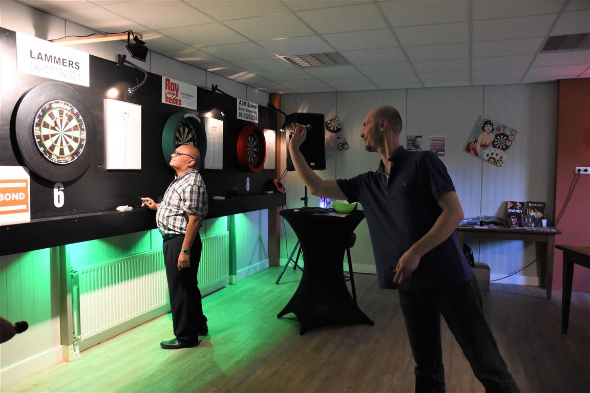 Vijfvoudig wereldkampioen Raymond van Barneveld was dinsdagavond op bezoek bij de Leidse Dart Vereniging aan de Voorschoterweg. Barney vertelde over zijn dartcarrière en speelde een quiz met de ruim 70 leden van de LDV. Een aantal leden was door loting uitgekozen om een leg tegen Barney te spelen, dat geen van hen kon winnen van de wereldkampioen verbaasde uiteraard niemand. Na afloop van de quiz en het darten beantwoordde Barney vragen vanuit het publiek en ging met met iedereen die dat wilde op de foto.