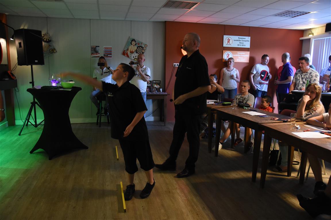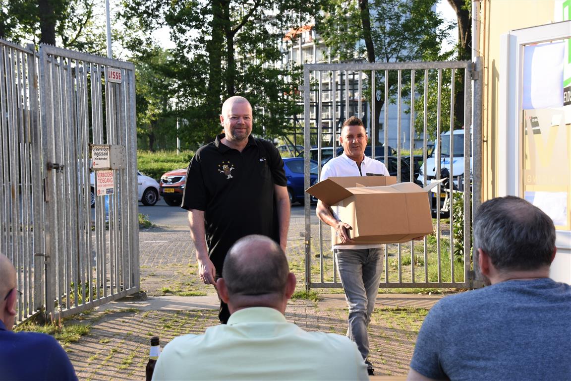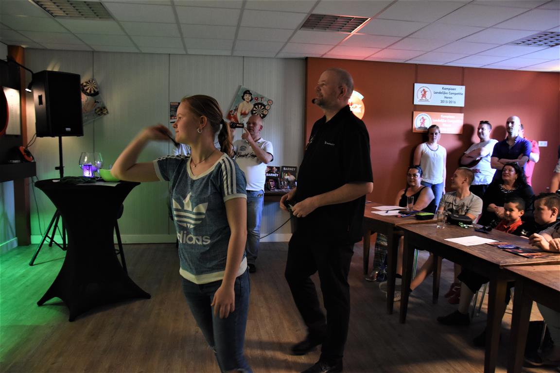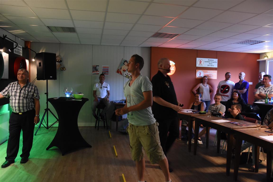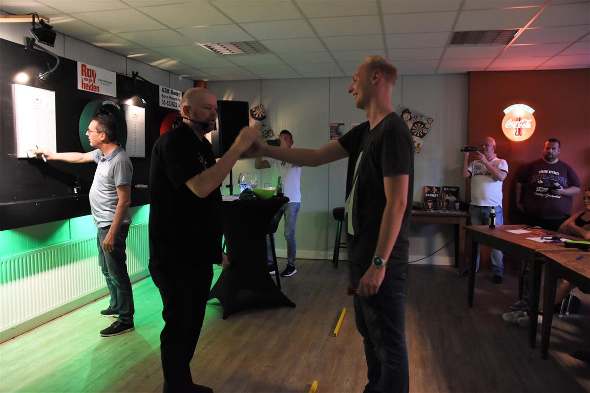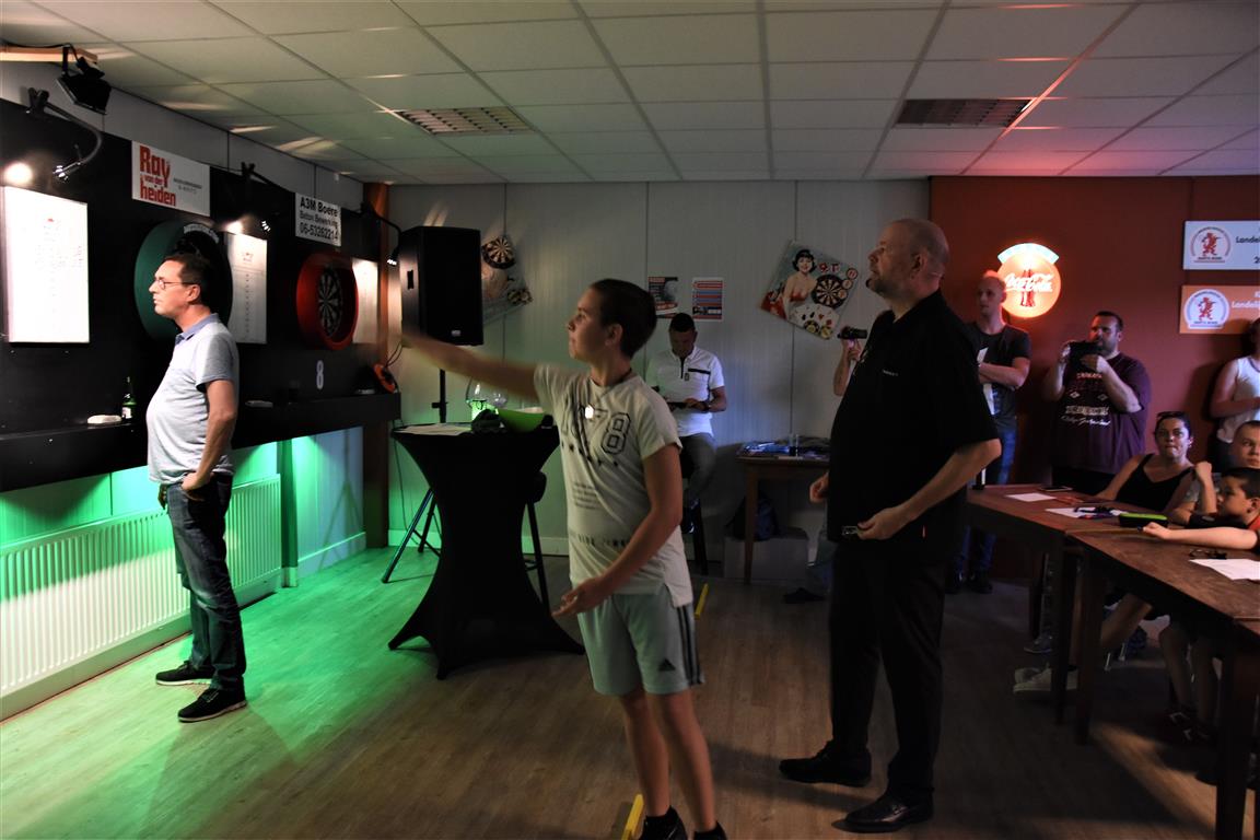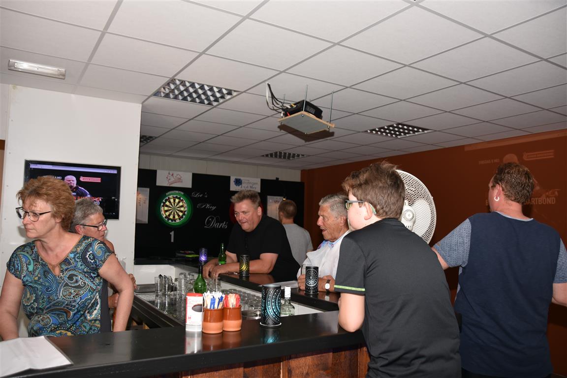 Vijfvoudig wereldkampioen Raymond van Barneveld was dinsdagavond op bezoek bij de Leidse Dart Vereniging aan de Voorschoterweg. Barney vertelde over zijn dartcarrière en speelde een quiz met de ruim 70 leden van de LDV. Een aantal leden was door loting uitgekozen om een leg tegen Barney te spelen, dat geen van hen kon winnen van de wereldkampioen verbaasde uiteraard niemand. Na afloop van de quiz en het darten beantwoordde Barney vragen vanuit het publiek en ging met met iedereen die dat wilde op de foto.