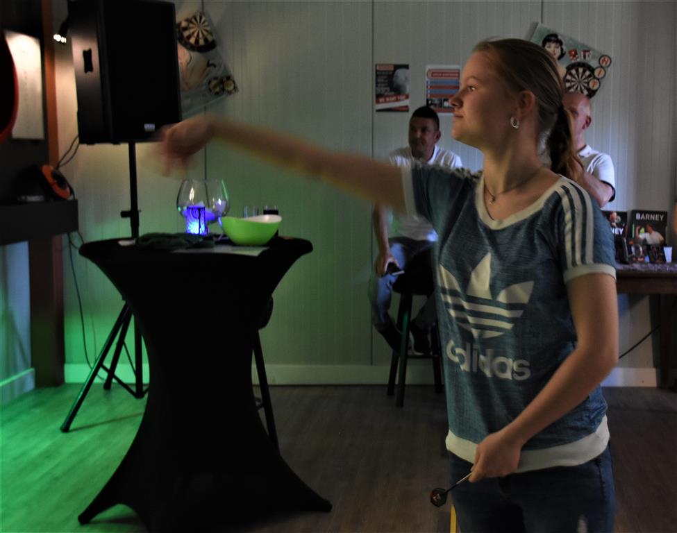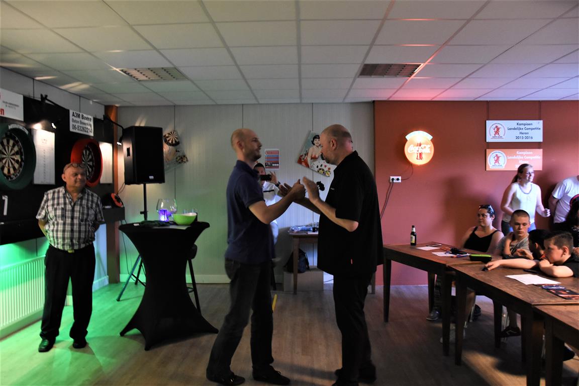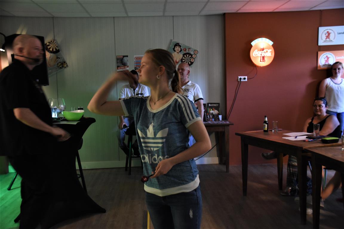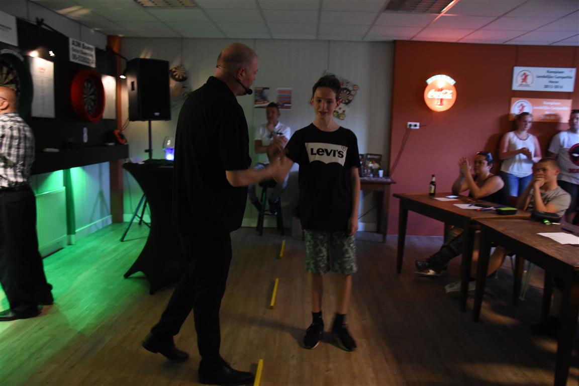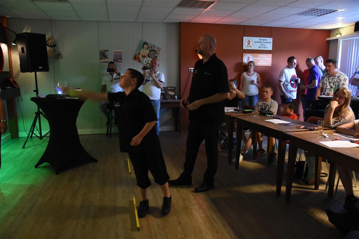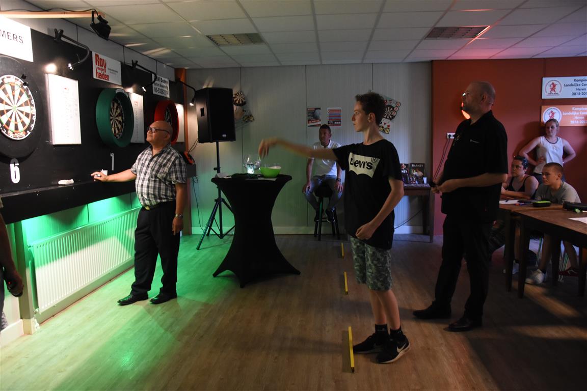 Vijfvoudig wereldkampioen Raymond van Barneveld was dinsdagavond op bezoek bij de Leidse Dart Vereniging aan de Voorschoterweg. Barney vertelde over zijn dartcarrière en speelde een quiz met de ruim 70 leden van de LDV. Een aantal leden was door loting uitgekozen om een leg tegen Barney te spelen, dat geen van hen kon winnen van de wereldkampioen verbaasde uiteraard niemand. Na afloop van de quiz en het darten beantwoordde Barney vragen vanuit het publiek en ging met met iedereen die dat wilde op de foto.