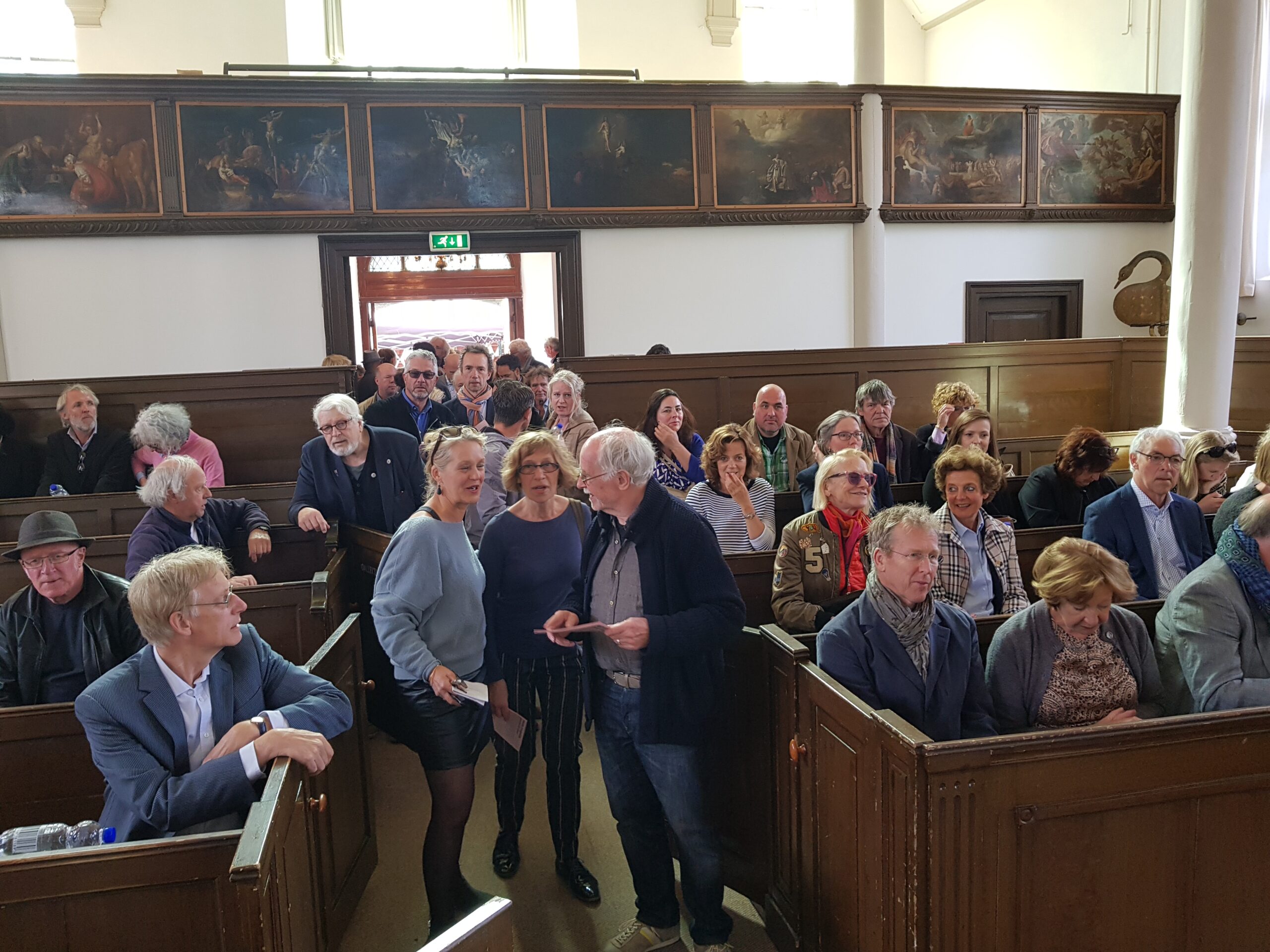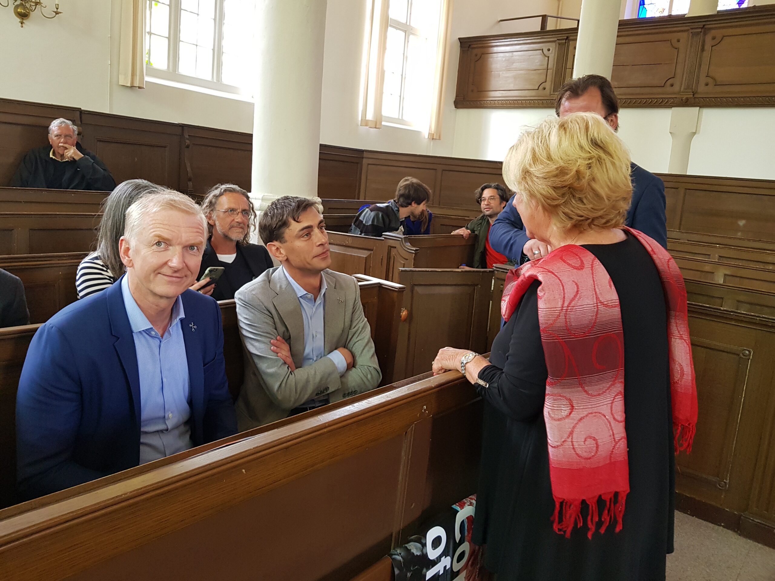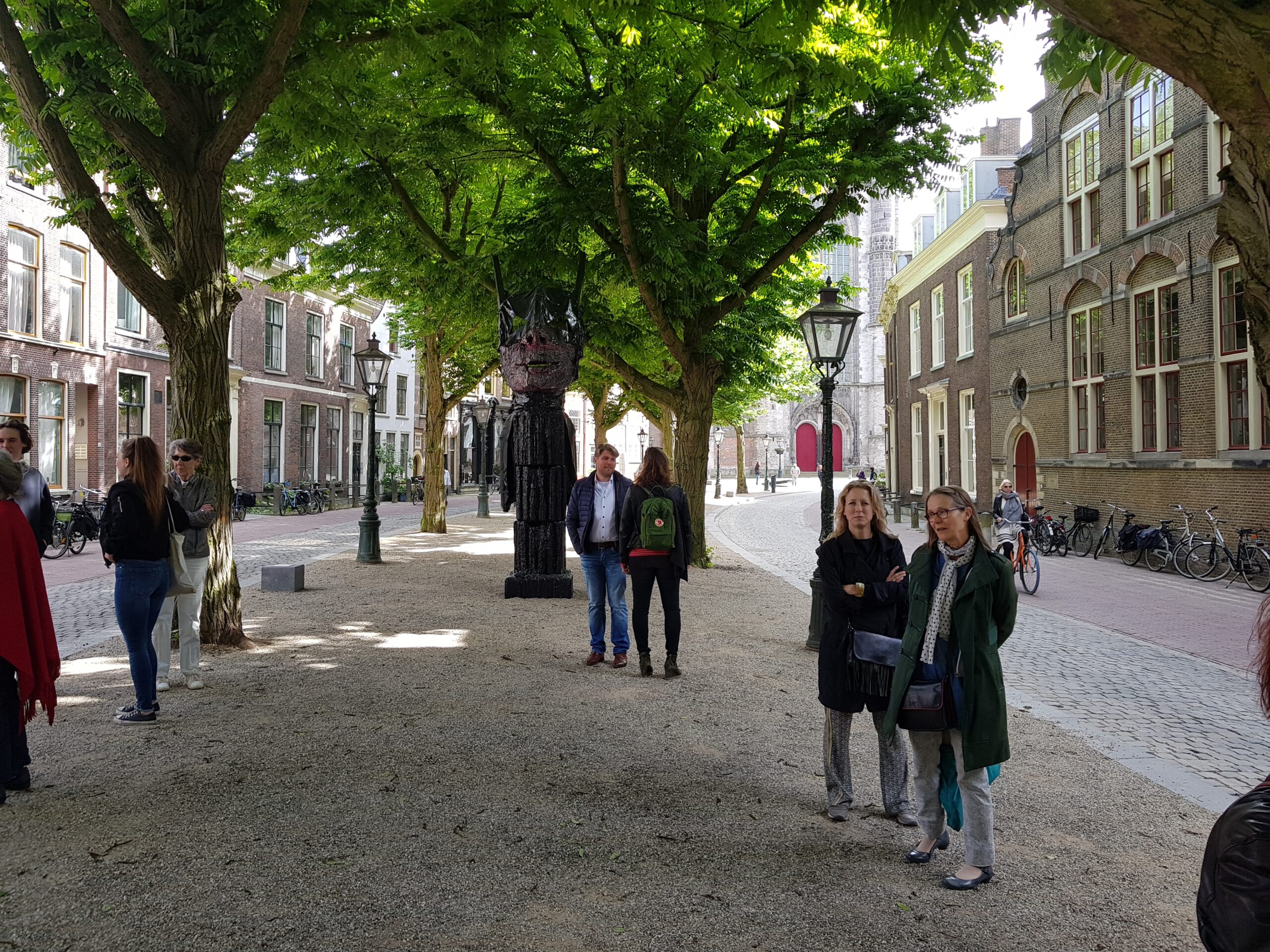 Onder grote belangstelling is donderdagmiddag de zevende editie van de openluchttentoonstelling Beelden in Leiden van start gegaan op de Hooglandse Kerk. In een goedgevulde Lutherse Kerk werd, voorafgaand aan de opening die werd verzorgd door directeur Wim Weijland van het Rijksmuseum van Oudheden, de Frans de Witprijs uitgereikt aan Damian Kapojos uit Zwolle die met zijn beeld ‘The Starship Affliction’ de hoogste ogen gooide bij de vakjury.