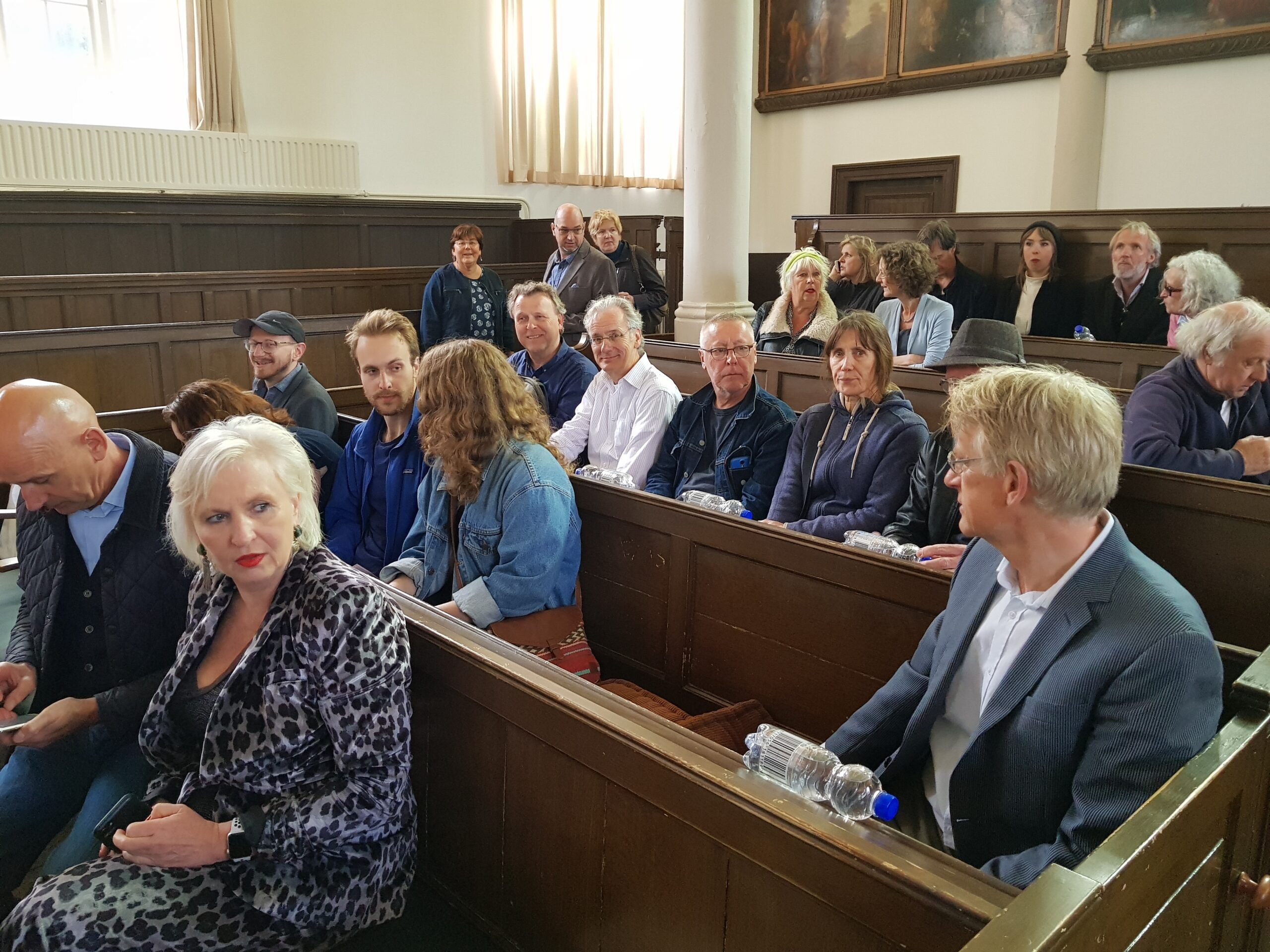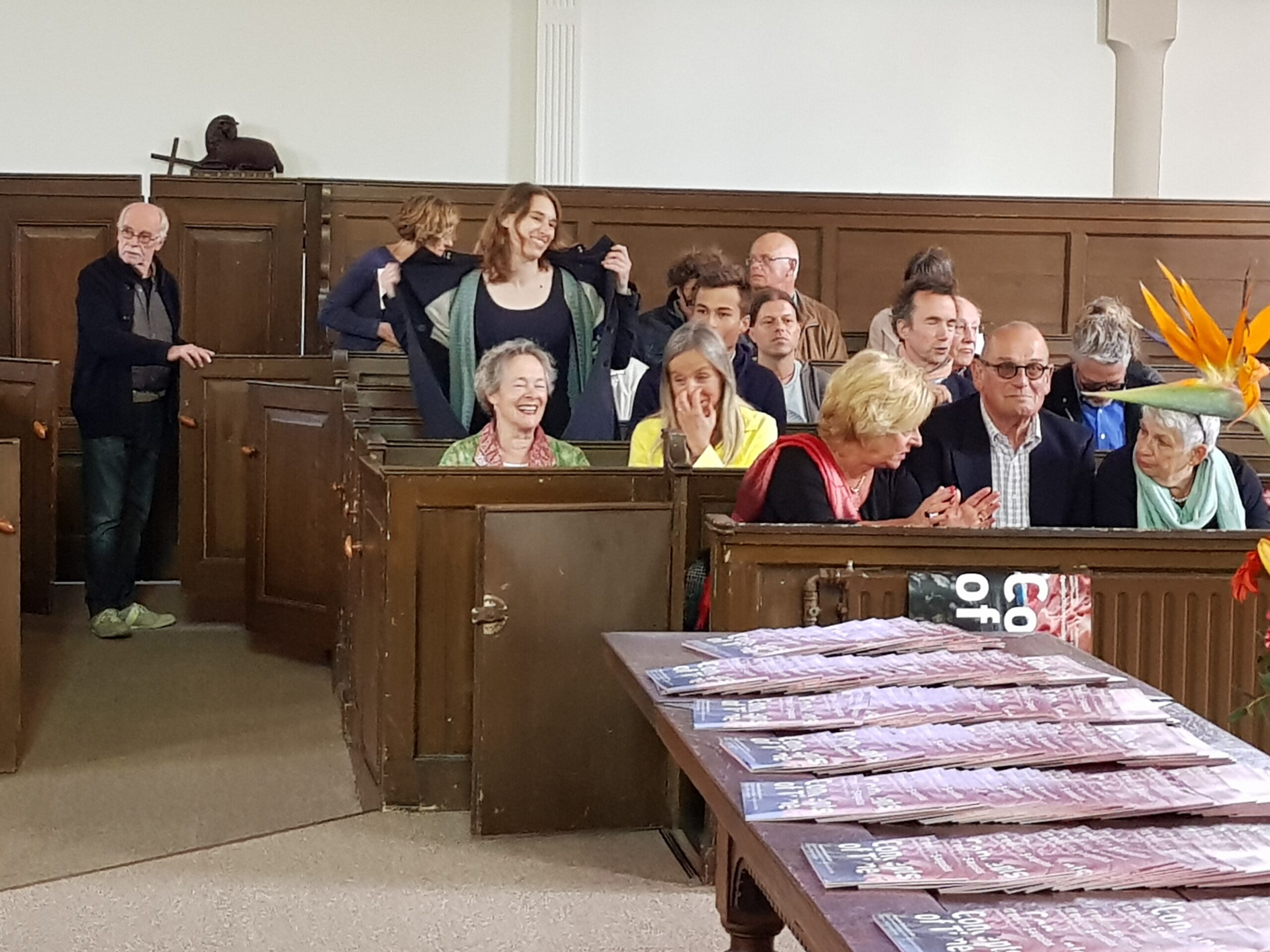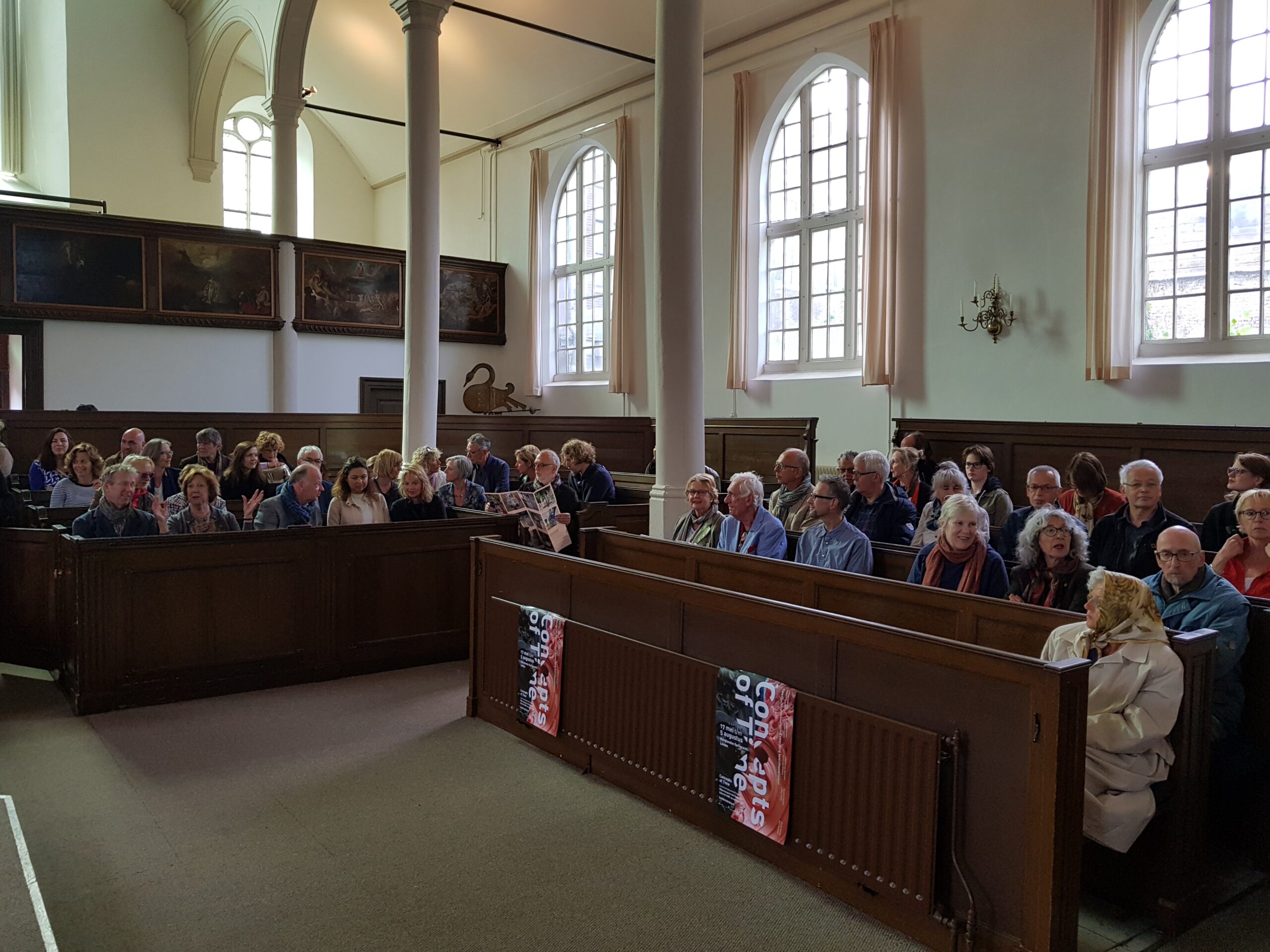 Onder grote belangstelling is donderdagmiddag de zevende editie van de openluchttentoonstelling Beelden in Leiden van start gegaan op de Hooglandse Kerk. In een goedgevulde Lutherse Kerk werd, voorafgaand aan de opening die werd verzorgd door directeur Wim Weijland van het Rijksmuseum van Oudheden, de Frans de Witprijs uitgereikt aan Damian Kapojos uit Zwolle die met zijn beeld ‘The Starship Affliction’ de hoogste ogen gooide bij de vakjury.