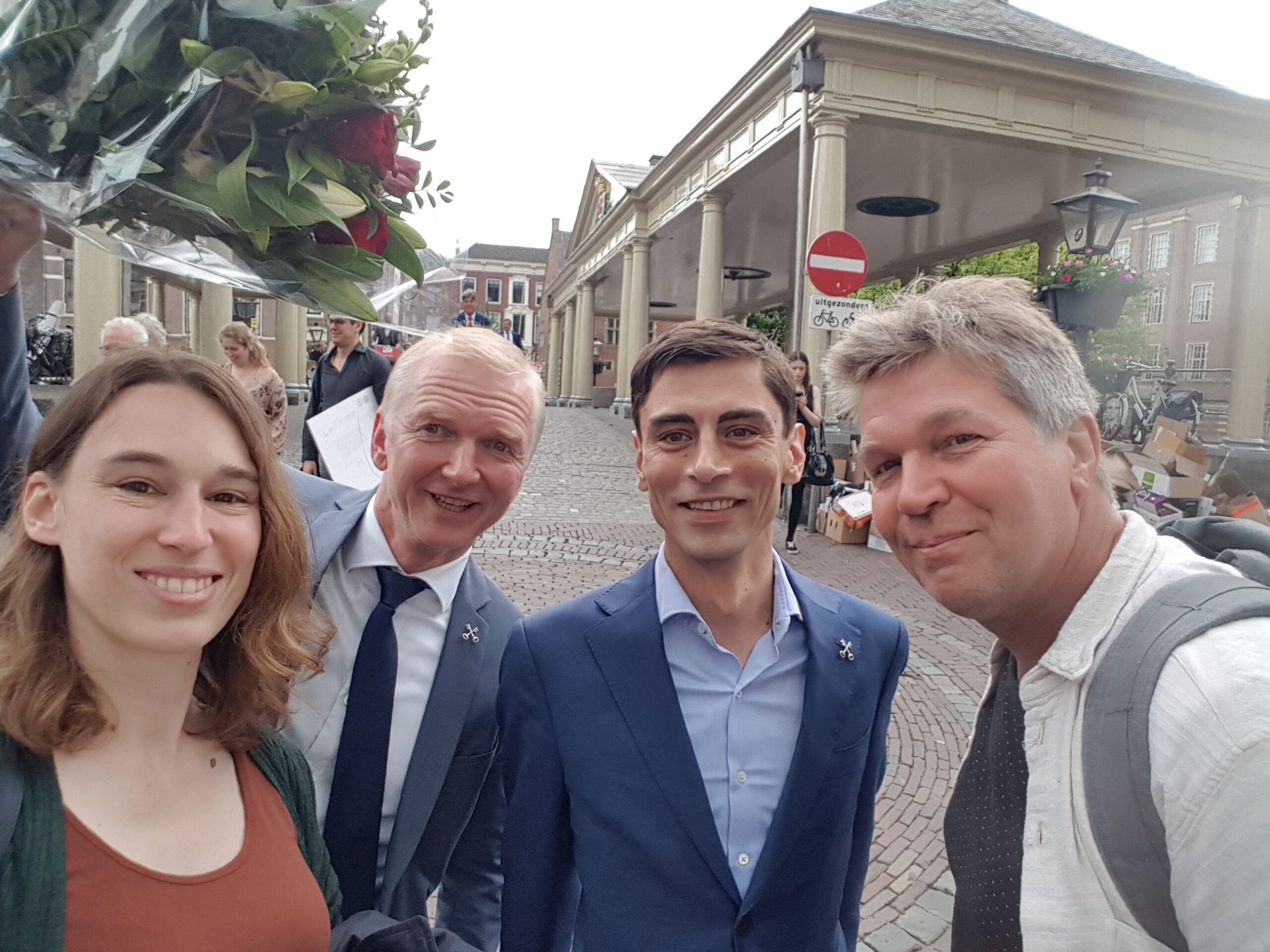 Paul Laudy nam ook afscheid. Gedwongen. De VVD-bouwwethouder was graag nog een termijn doorgegaan, maar zijn partij viel bij de coalitieonderhandelingen af nadat D66 en GroenLinks het niet eens konden worden met de VVD over met name de wijze van bekostiging van alle plannen voor de komende vier jaar. Laudy was vier jaar wethouder een bereikte in die tijd veel. Je zag de stad bijna van dag tot dag veranderen door de enorme hoeveelheid bouwprojecten die de afgelopen jaren begonnen of werden vlotgetrokken. Politiek actief was Laudy in Leiden echter al heel veel langer. In totaal maar liefst 18 jaar, waarvan vele jaren als fractievoorzitter van de VVD Leiden. Ook Laudy kreeg een verrassingstoespraak vanuit de stad. Meelfabriek-eigenaar Ab van der Wiel prees Laudy met name omdat hij als eerste het project Meelfabriek omarmde en echt geloofde in de plannen. Daarmee bevestigde hij wat Laudy zelf eerder al in zijn afscheidsspeech zei: “Het is heel belangrijk dat partijen in Leiden geloven. Dat is misschien wel belangrijker dan wat wij hier in deze zaal allemaal besluiten.”