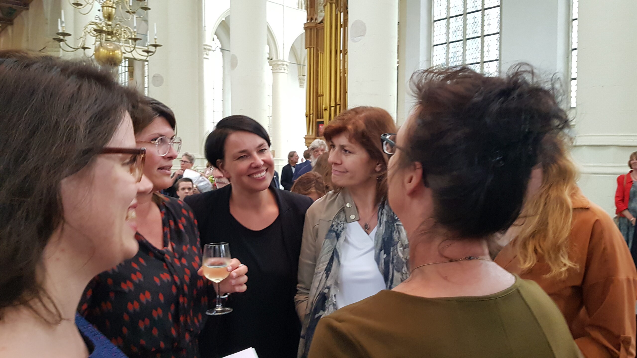 Roos van Gelderen (SP) gaf al eerder te kennen dat ze na acht jaar wethouderschap zou stoppen. Uiteindelijk maakte ze haar tweede termijn net niet vol, in het zicht van de haven strandde ze op de overschrijding op de realisatie van tijdelijke woningen voor statushouders en andere speciale doelgroepen. Maar dat was vorige week. Gisteren nam ze alsnog feestelijk afscheid en werd ze tot haar verrassing in het zonnetje gezet door directeur Nathalie Lecina van Studio Moio en door twee van de aan Studio Moio verbonden jongeren. “Ik ga nu al bijna huilen”, hoorde de oplettende luisteraar Roos van Gelderen murmelen terwijl ze naar het spreekgestoelte liep om voor de laatste keer vanaf die plek het woord tot de zaal te richten.